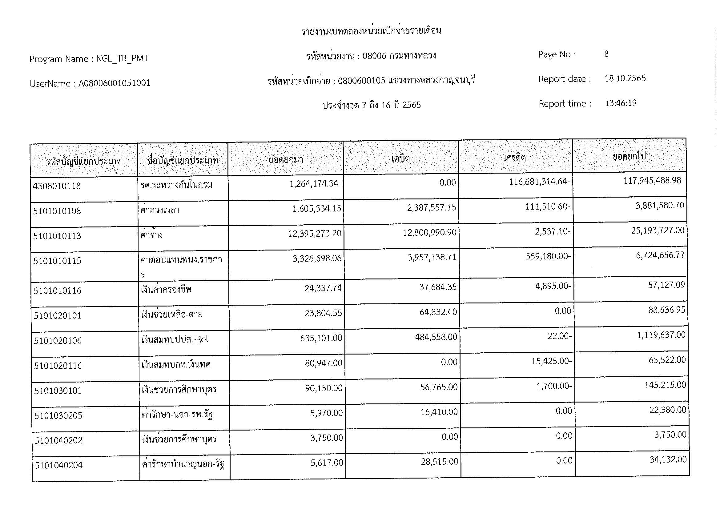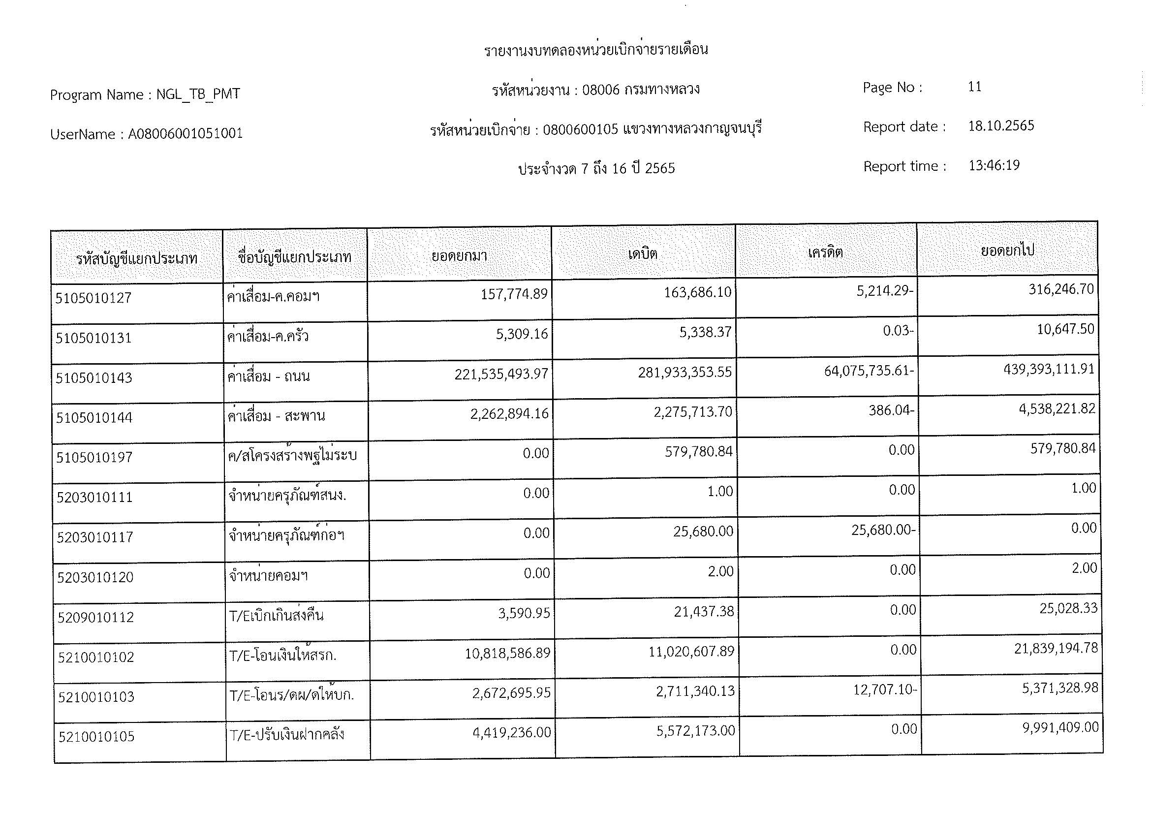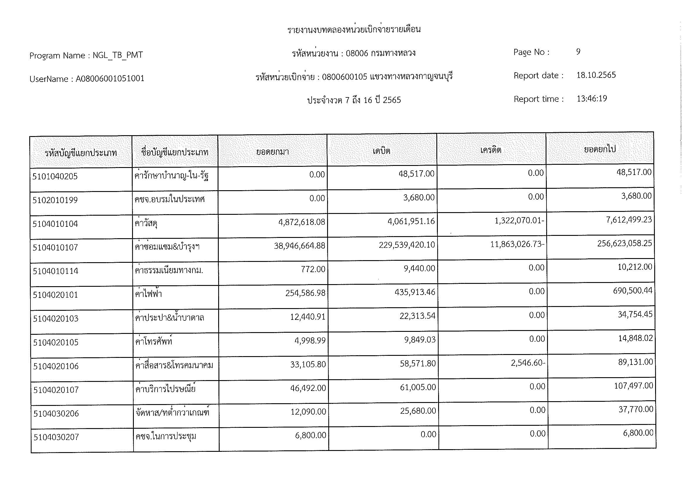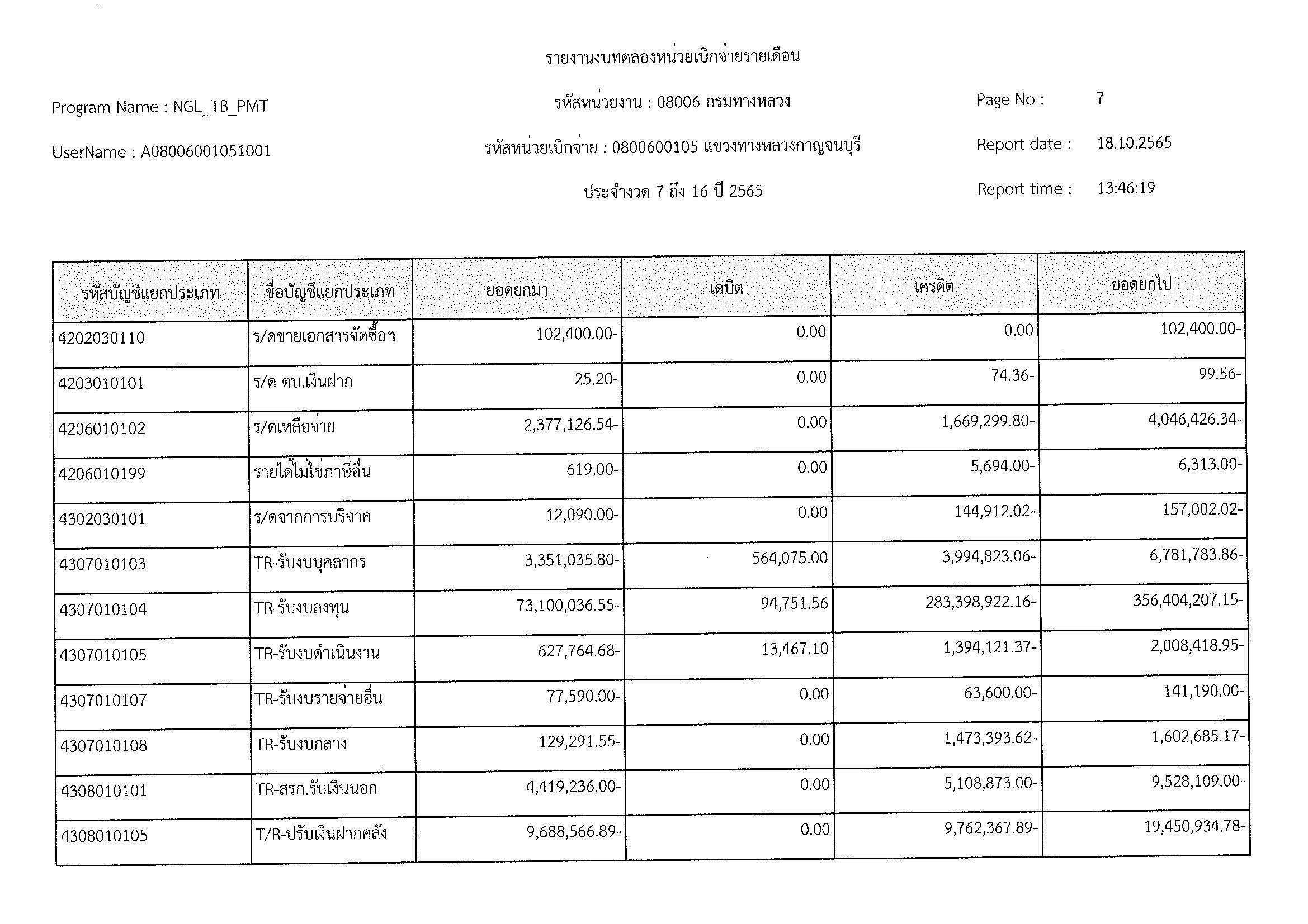 รายงานงบทดลองหน่วยเบิกจ่ายรายเดือน ประจำงวด 12 ประจำปีที่ 2565