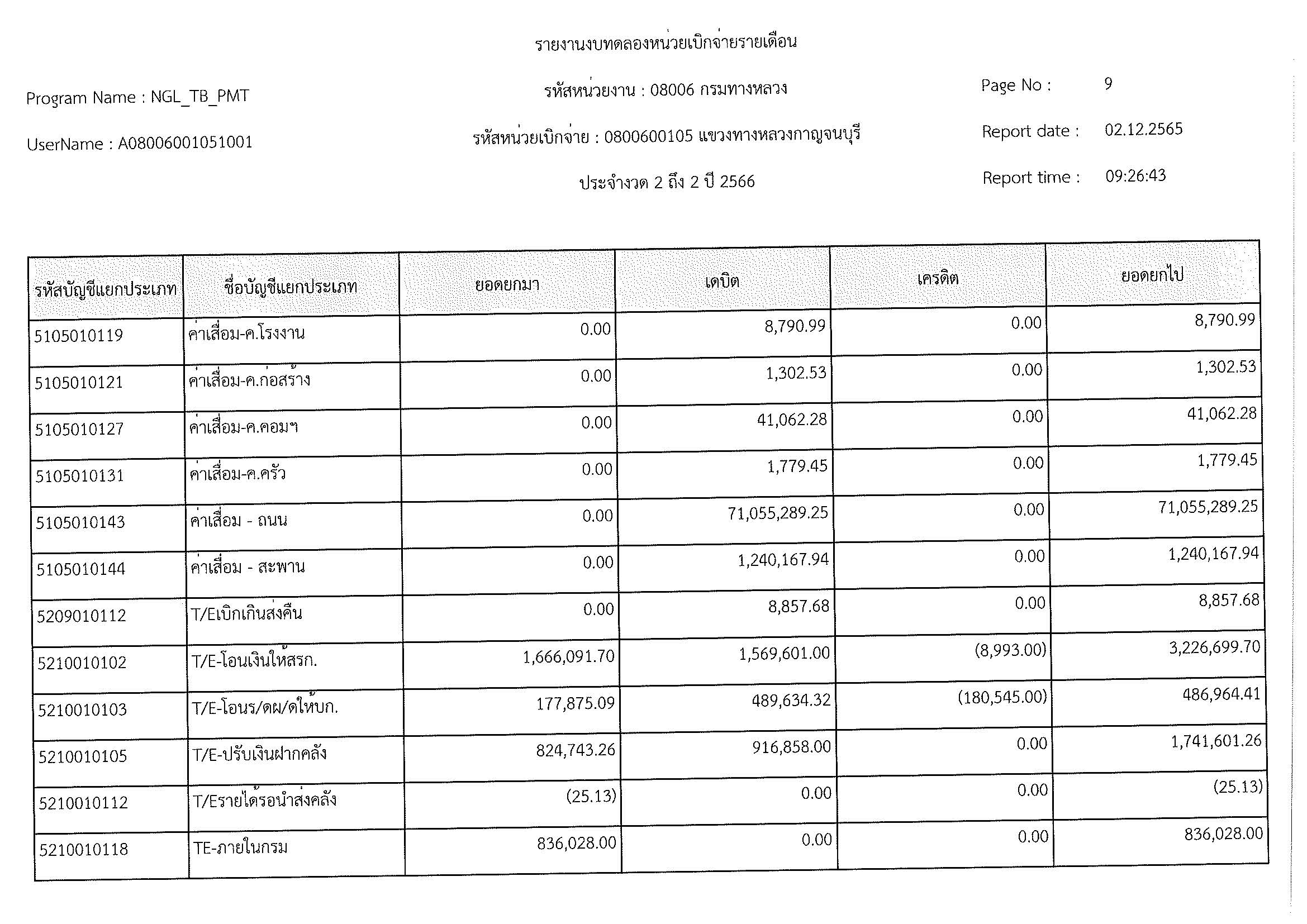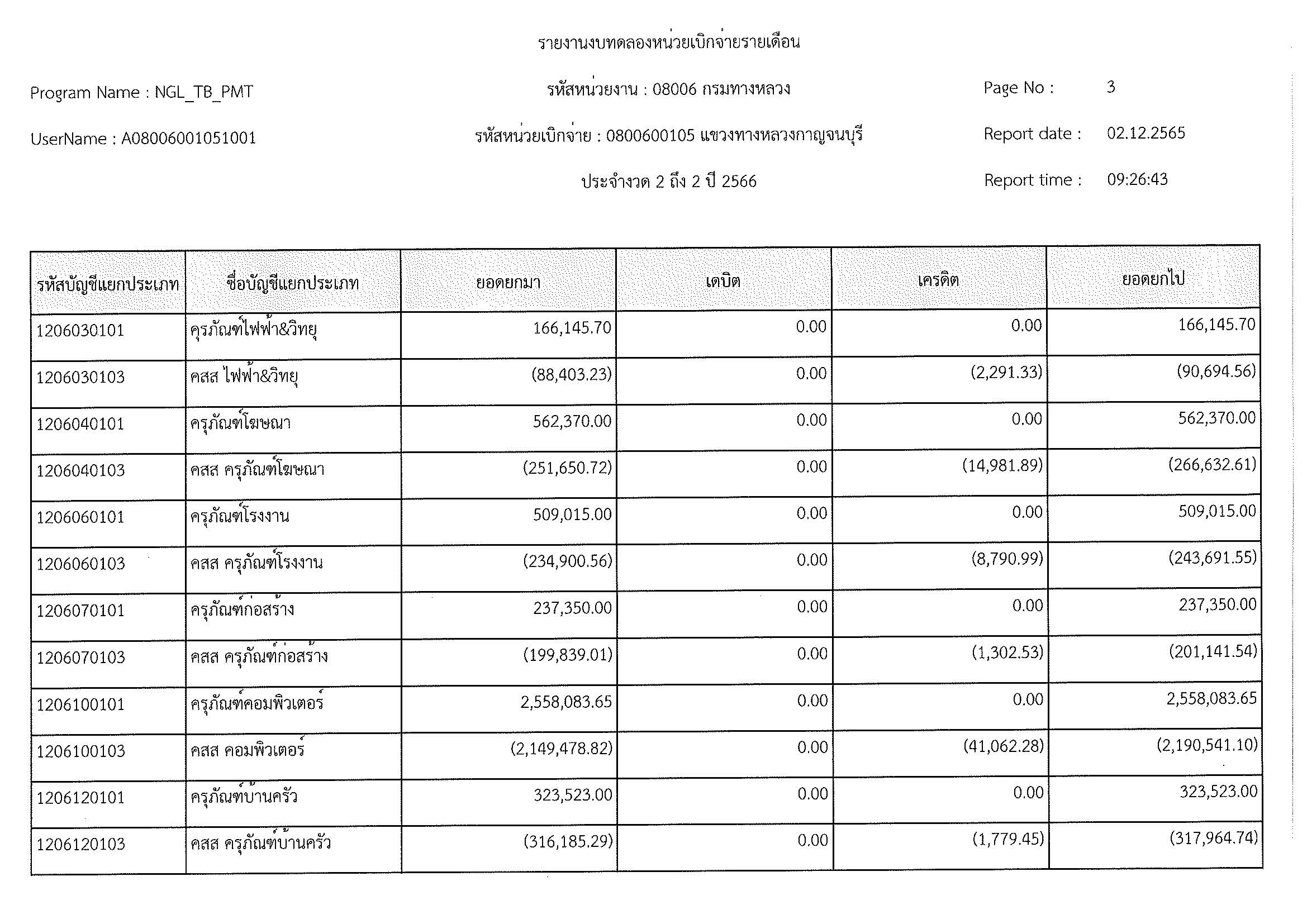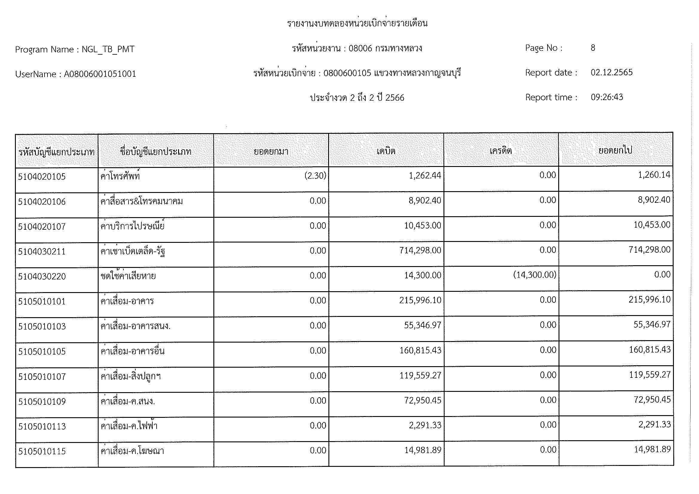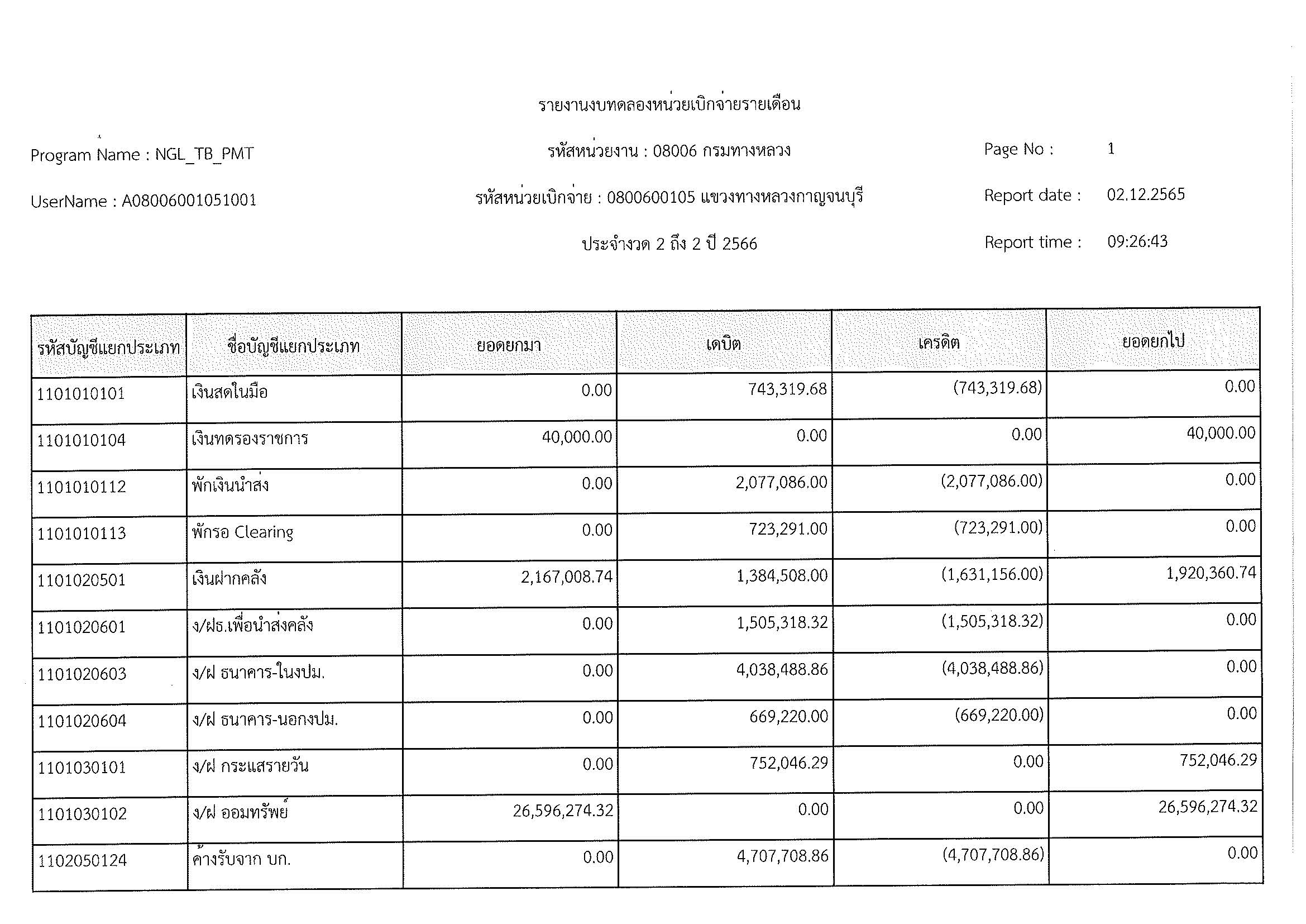 รายงานงบทดลอง เดือนพฤศจิกายน 2565