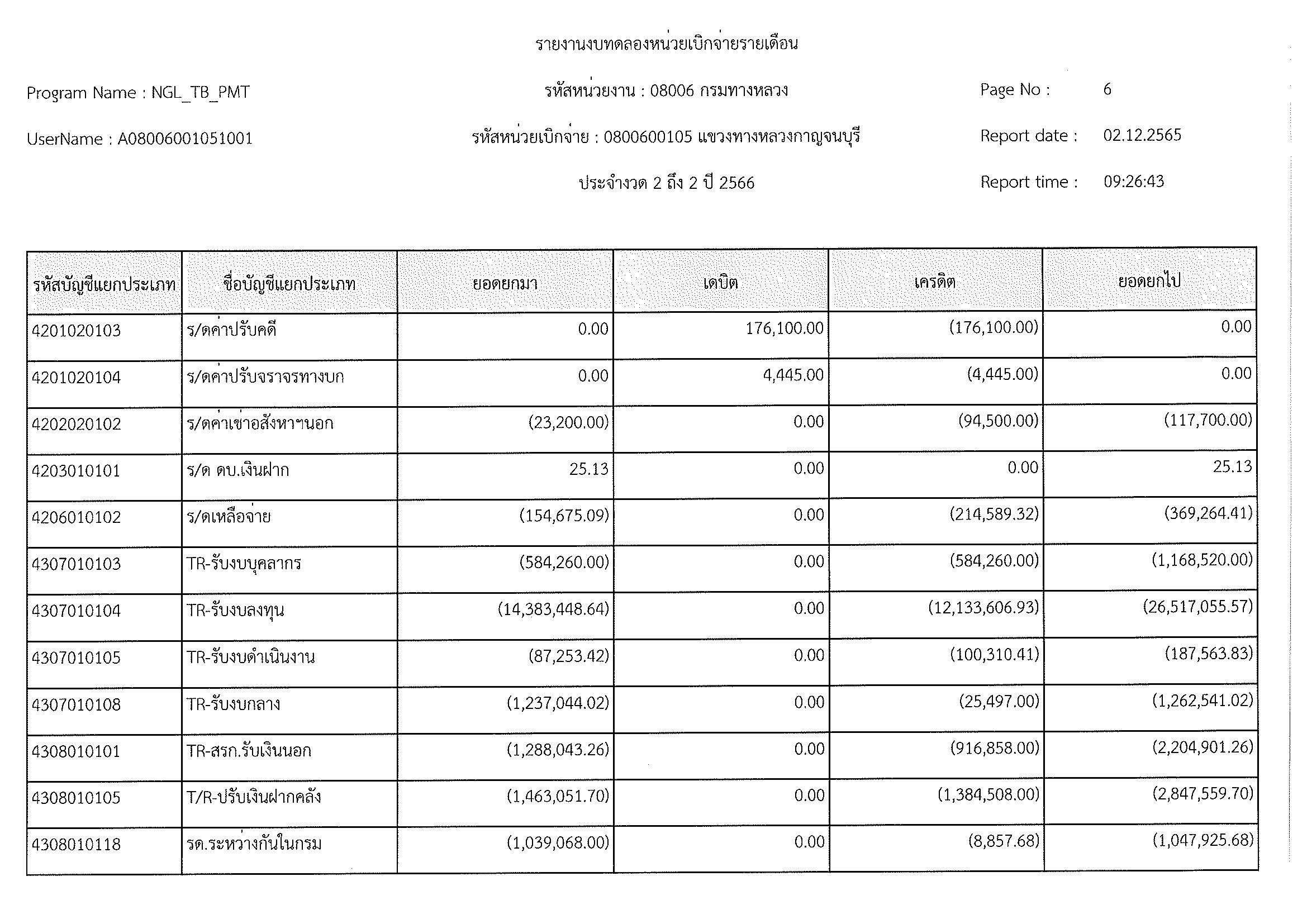 ข้อมูลข่าว : รายงานงบทดลอง เดือนพฤศจิกายน 2565