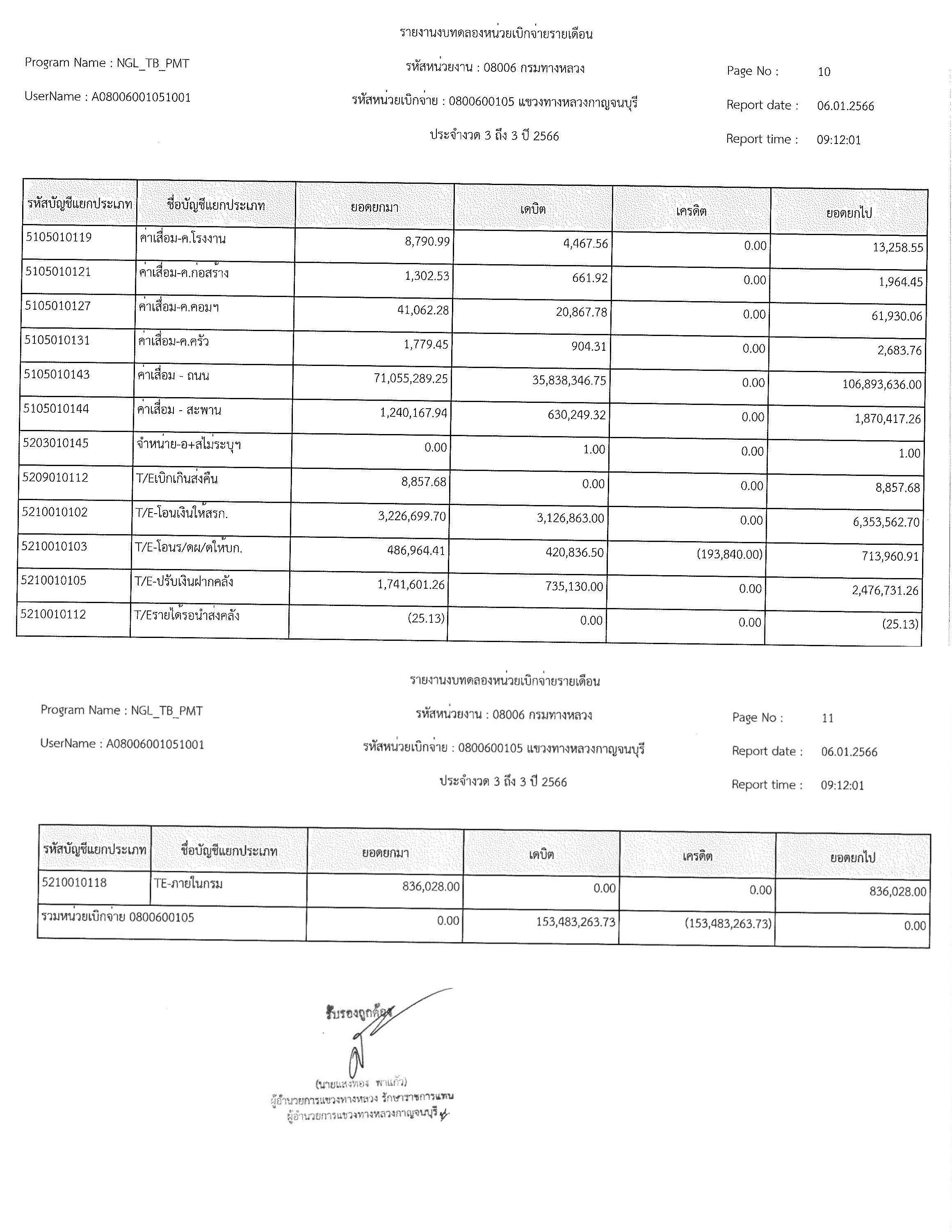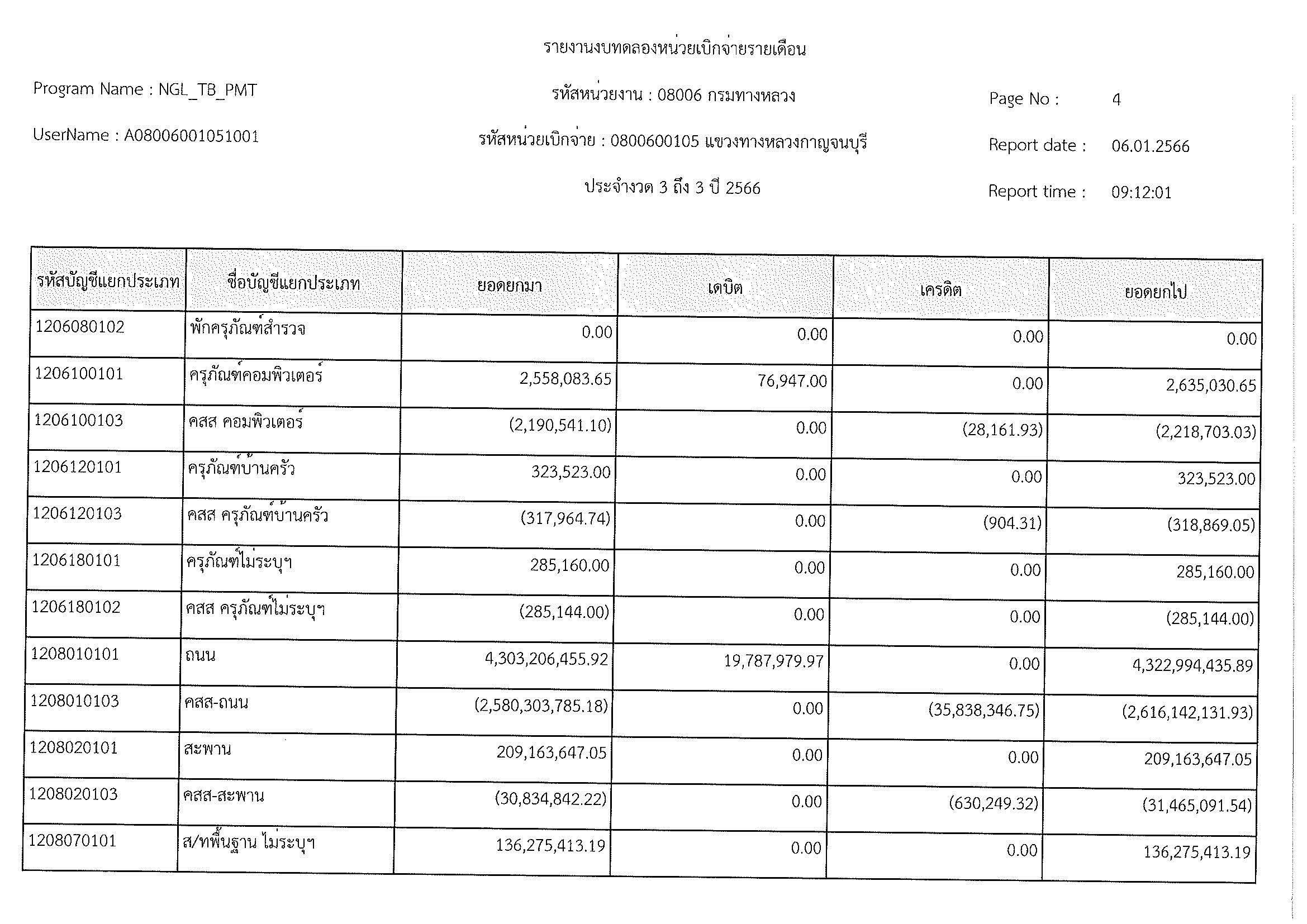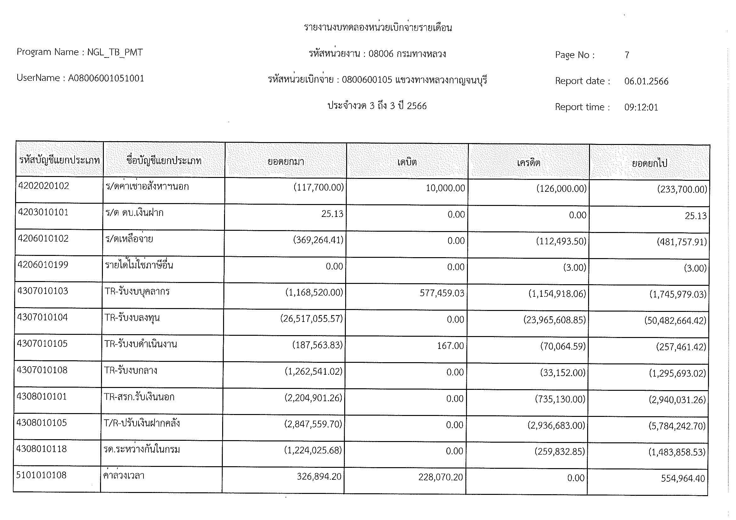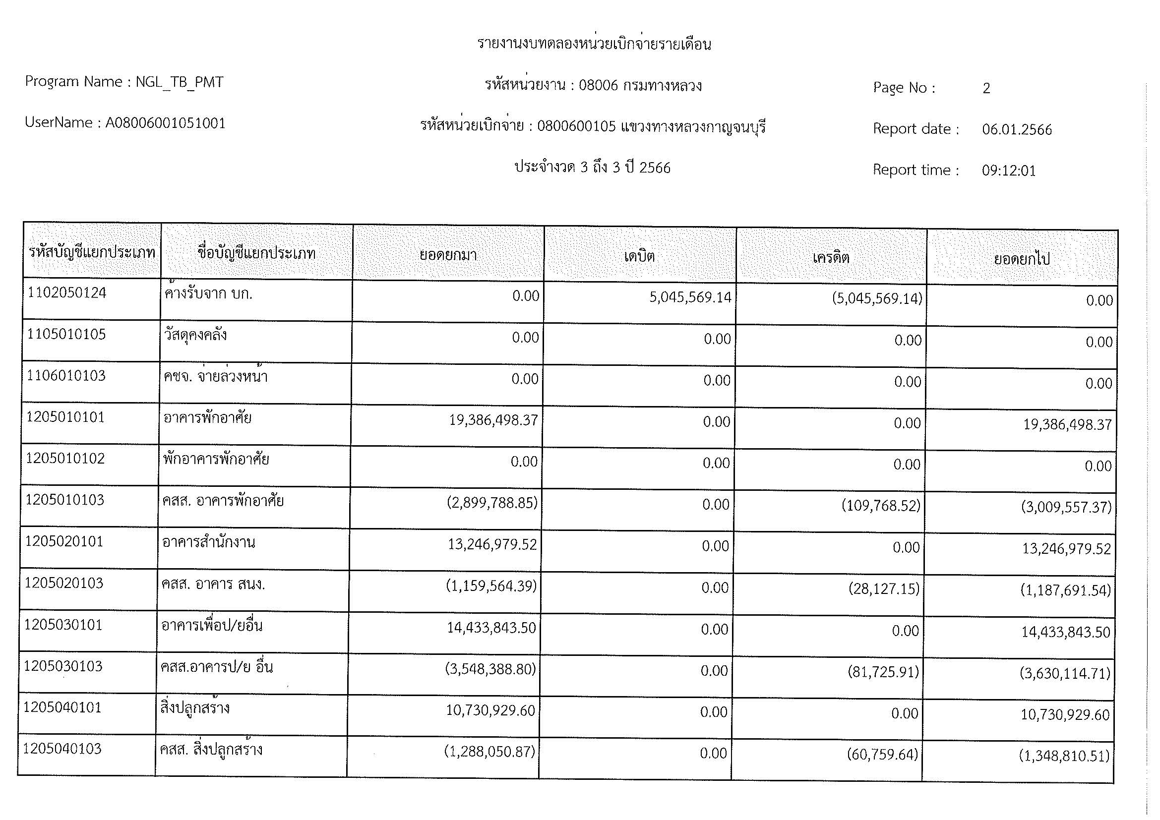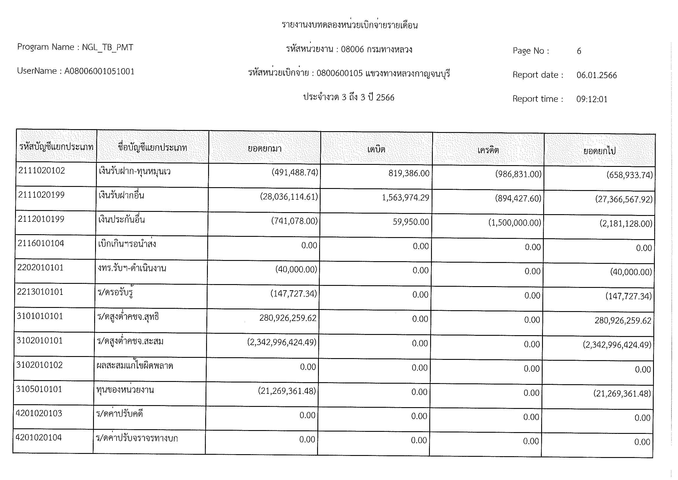 รายงานงบทดลองหน่วยเบิกจ่ายรายเดือน ประจำงวด 3 ถึง 3 ปี 2566