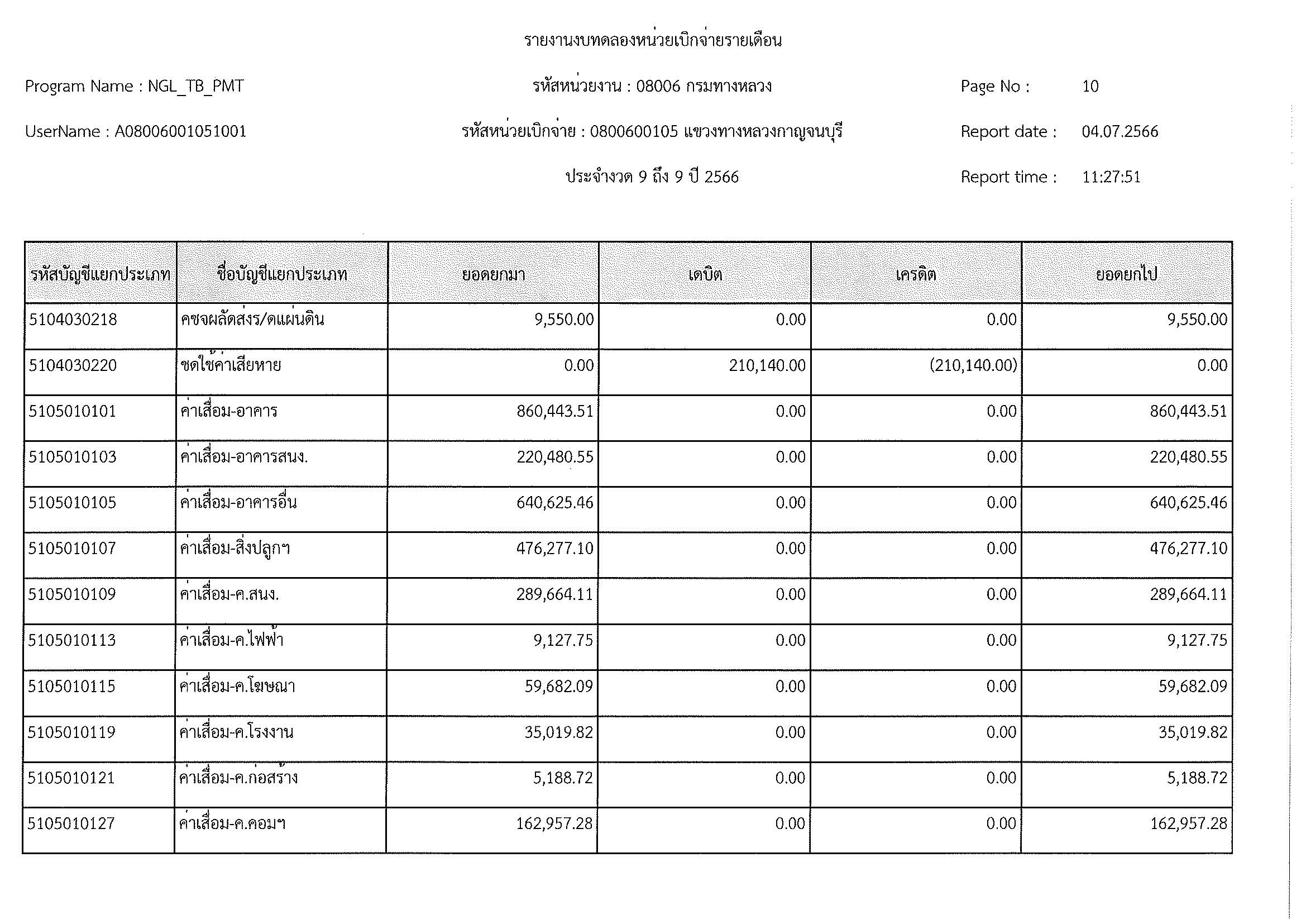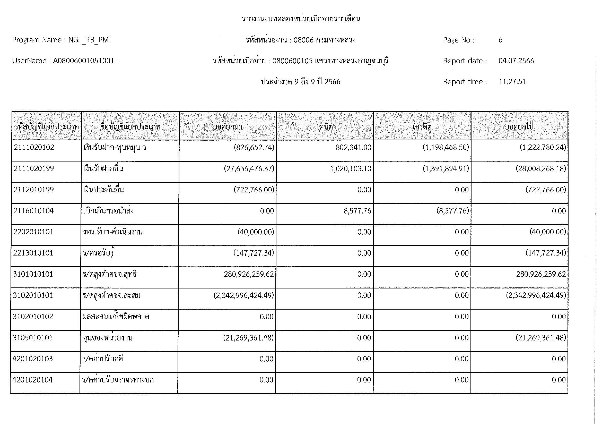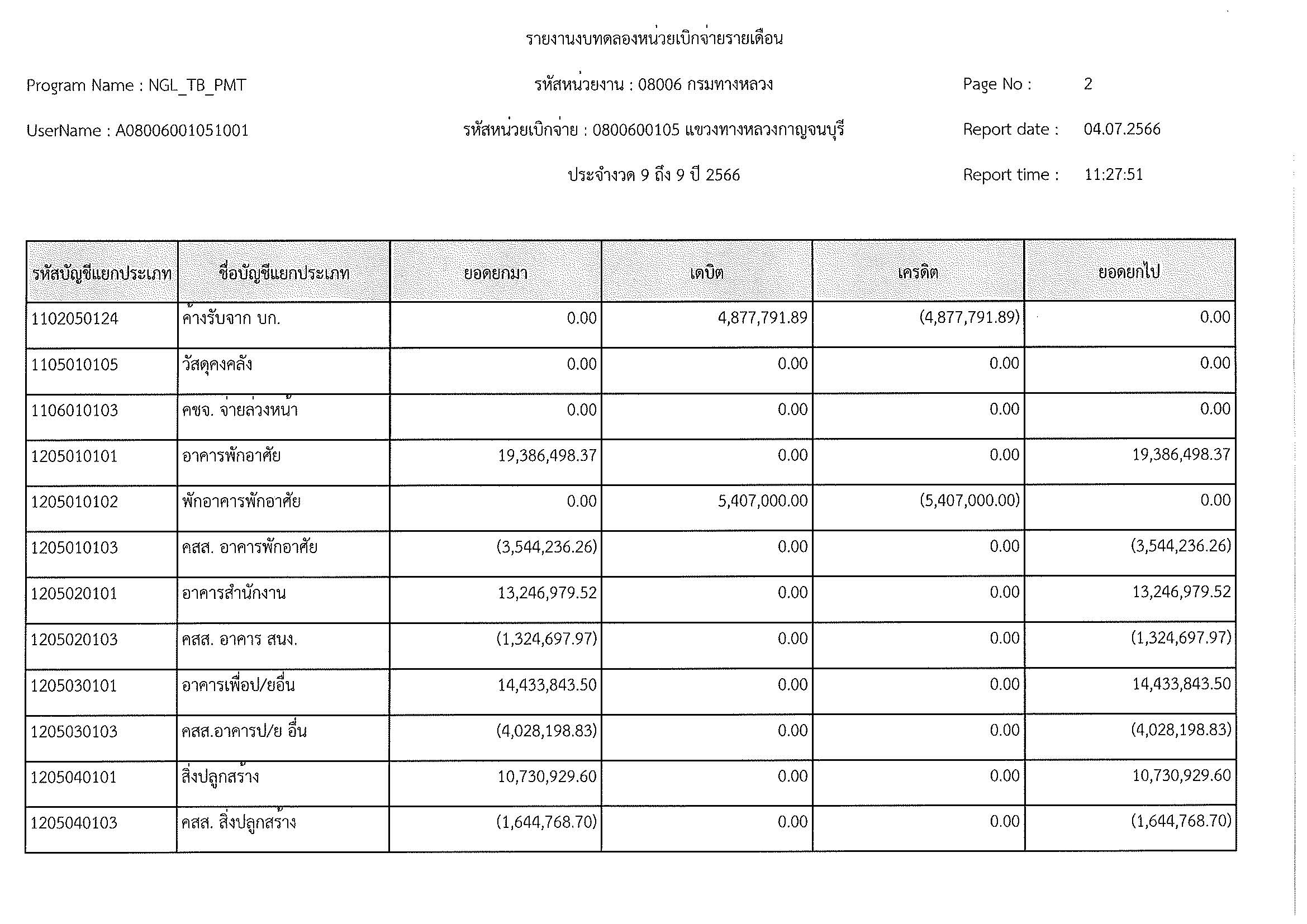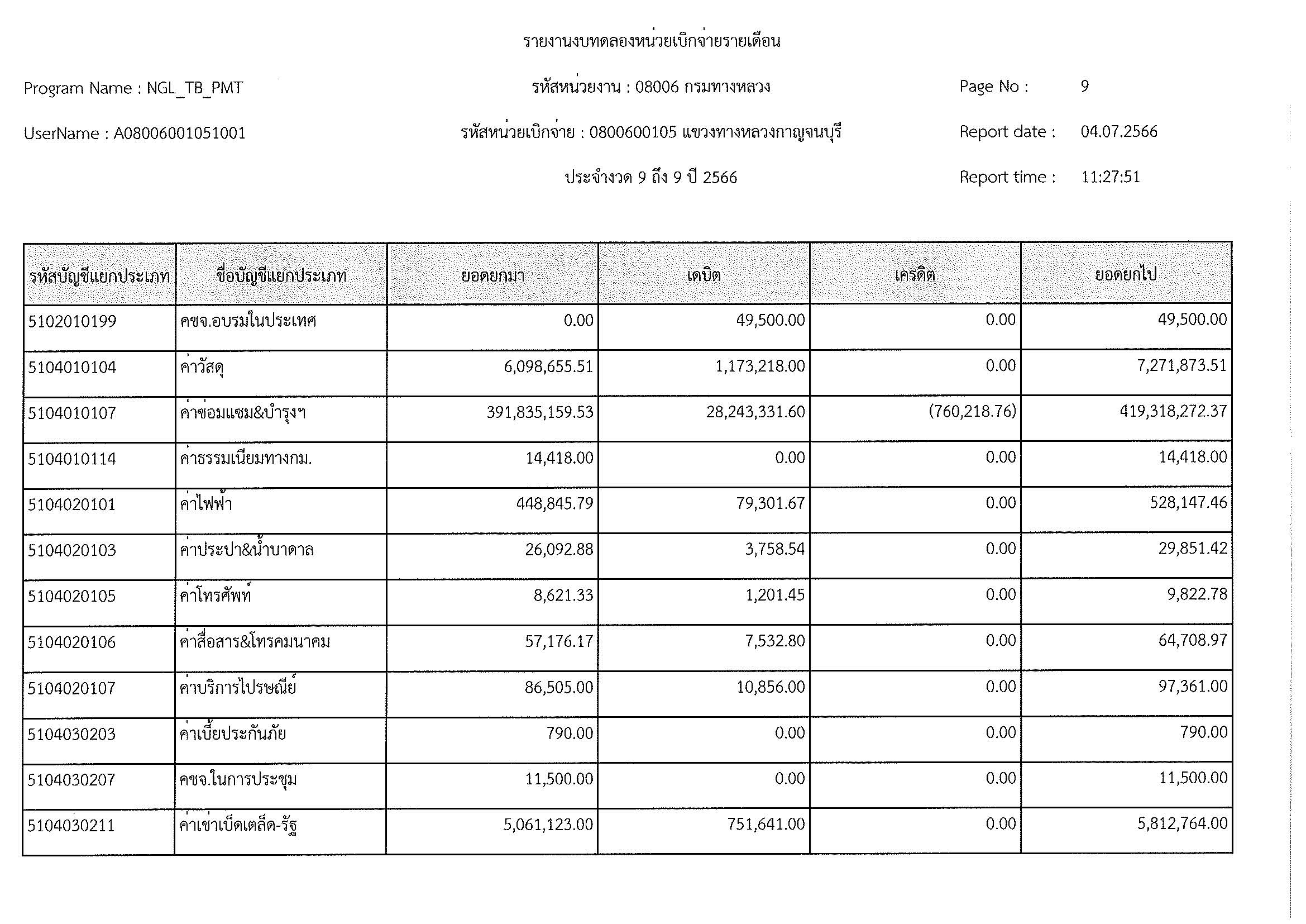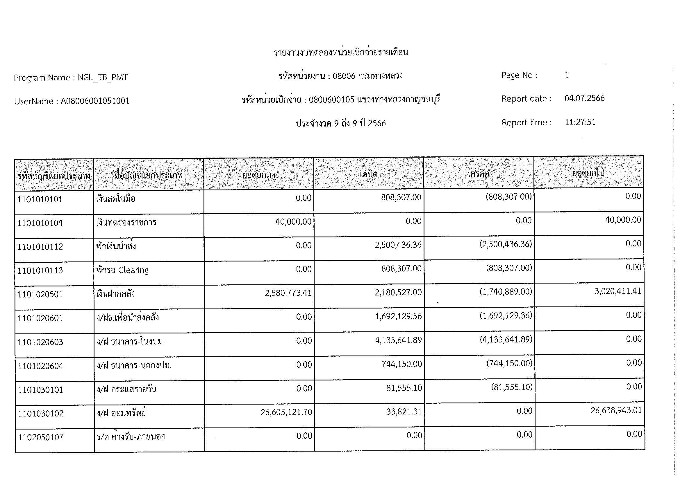 รายงานงบทดลองหน่วยเบิกจ่ายรายเดือน ประจำงวด 9 ประจำปีที่ 2566