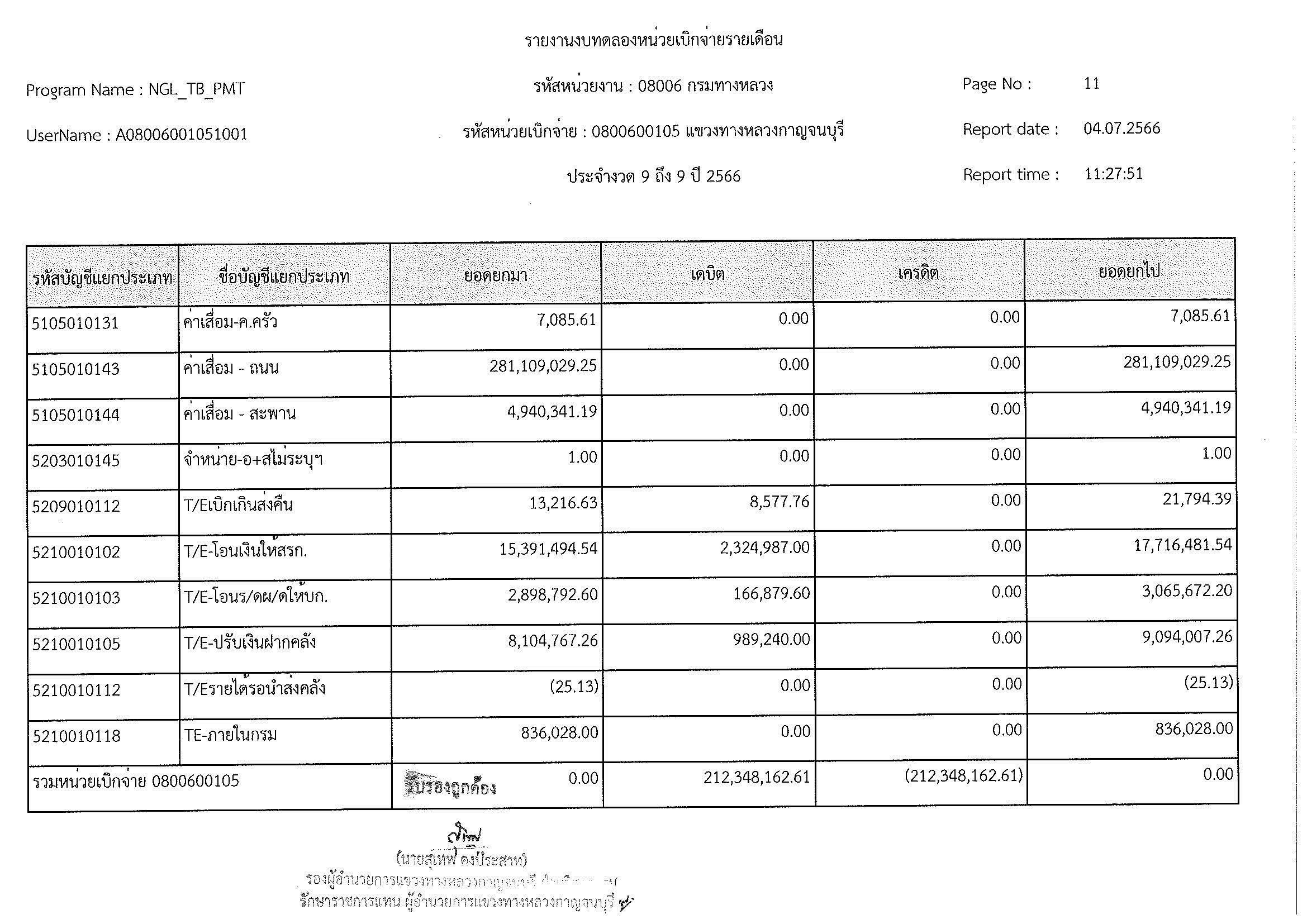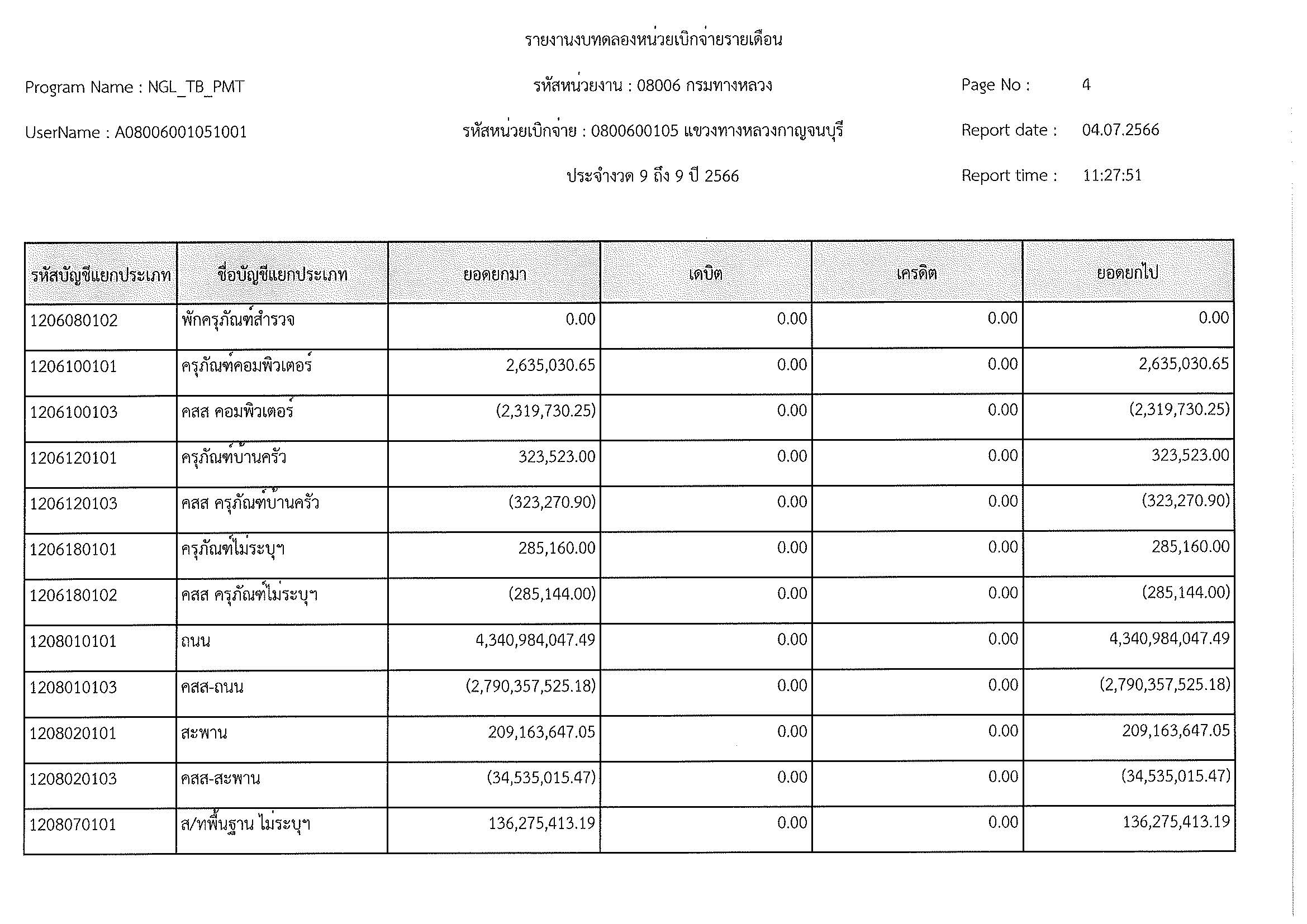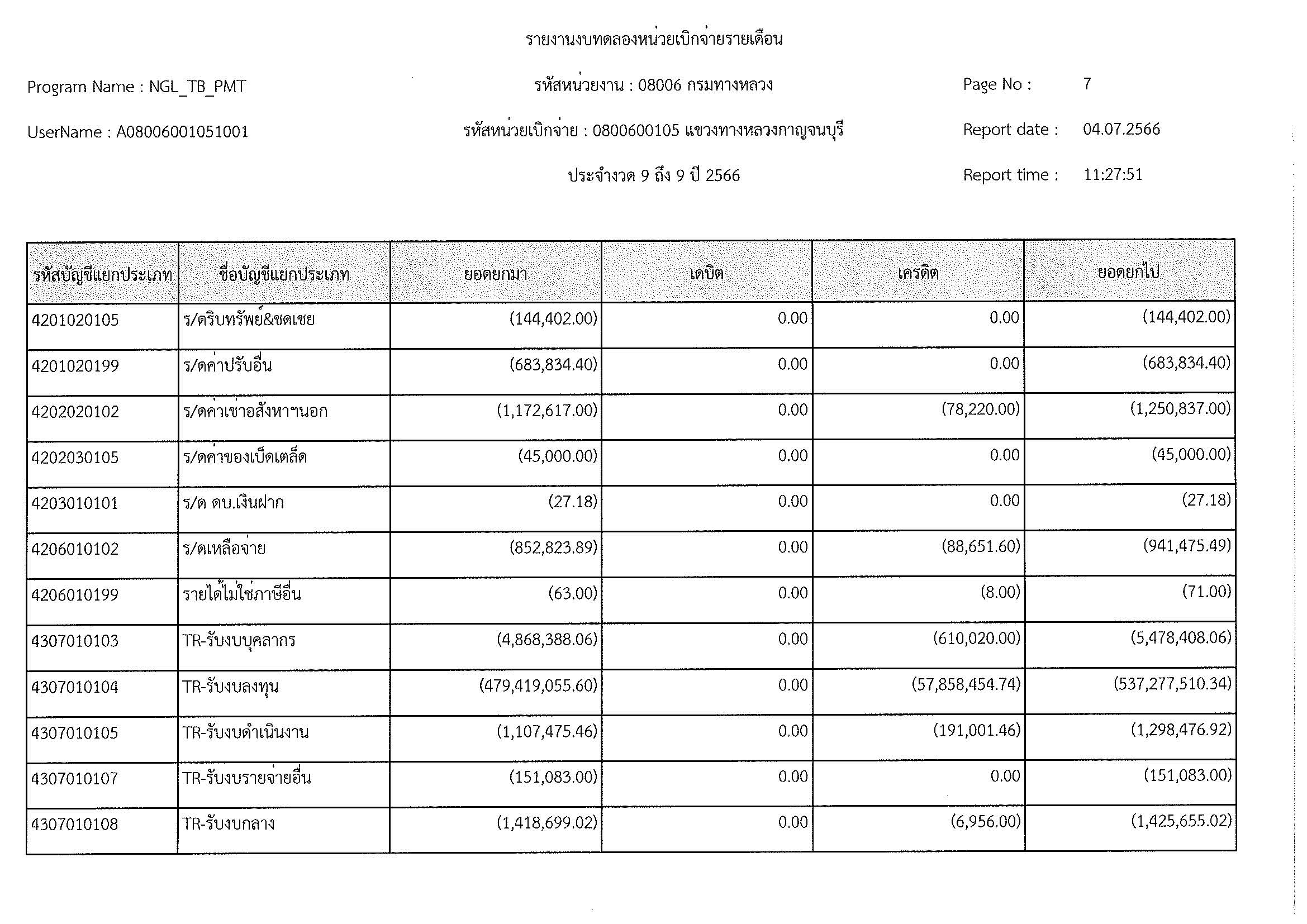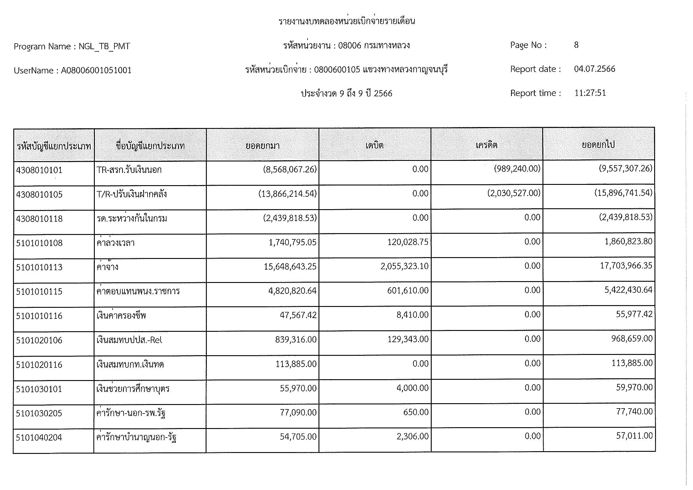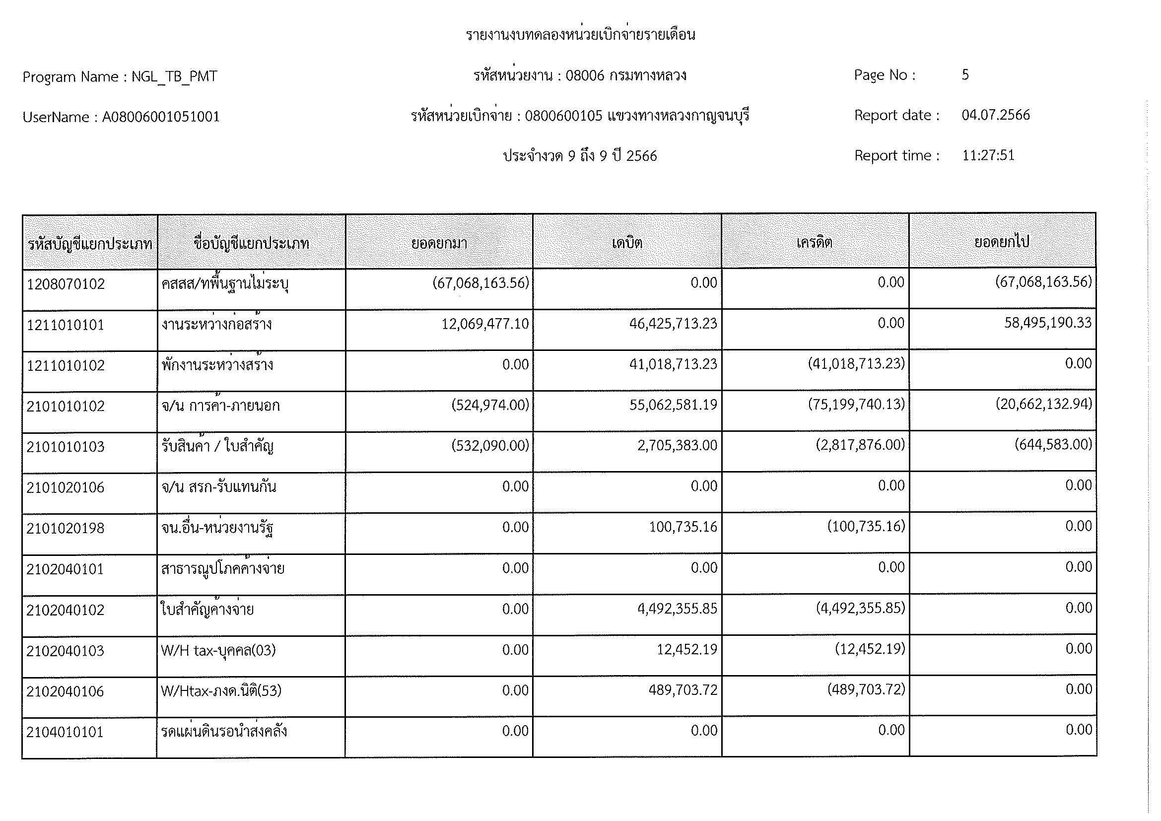 รายงานงบทดลองหน่วยเบิกจ่ายรายเดือน ประจำงวด 9 ประจำปีที่ 2566