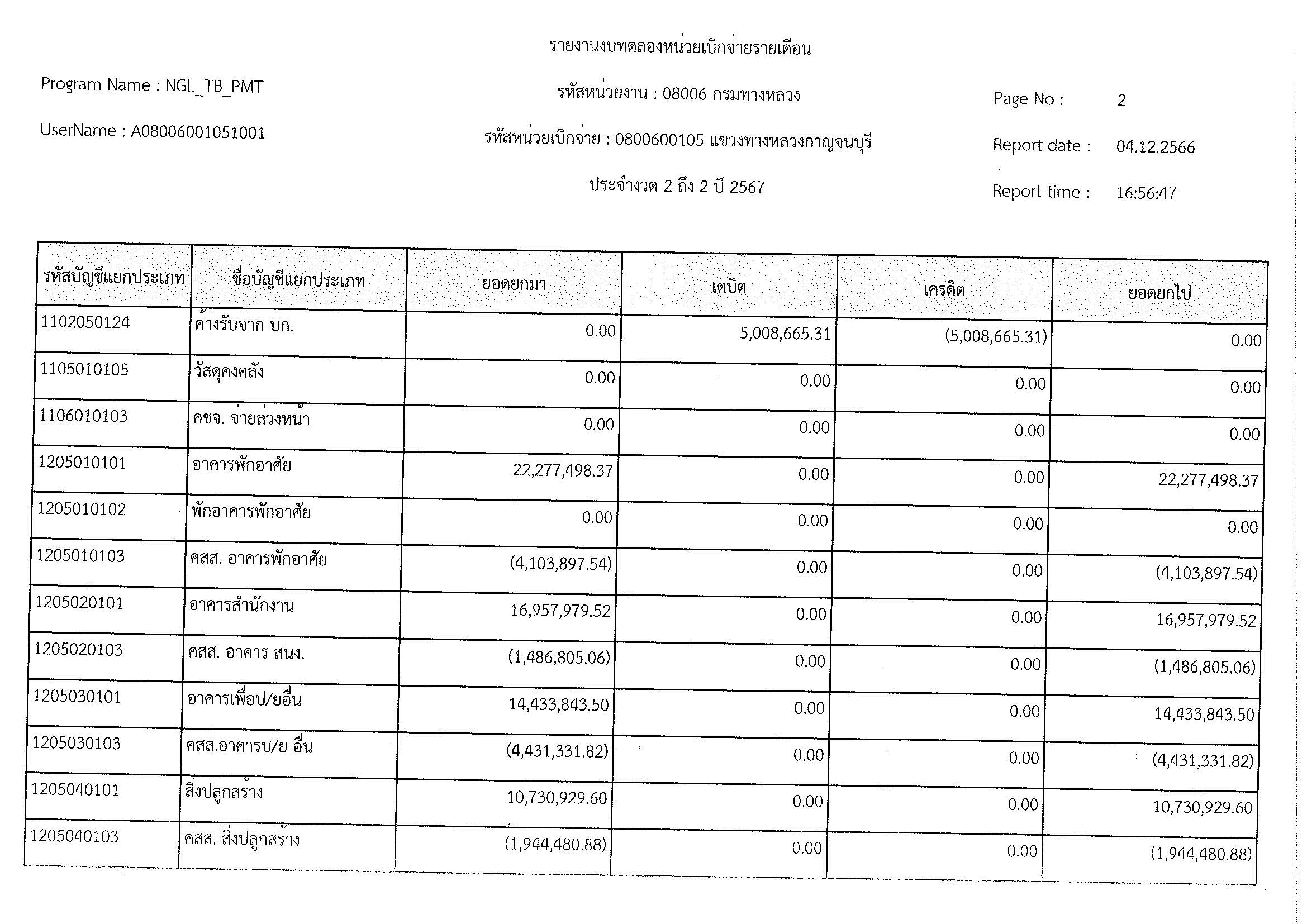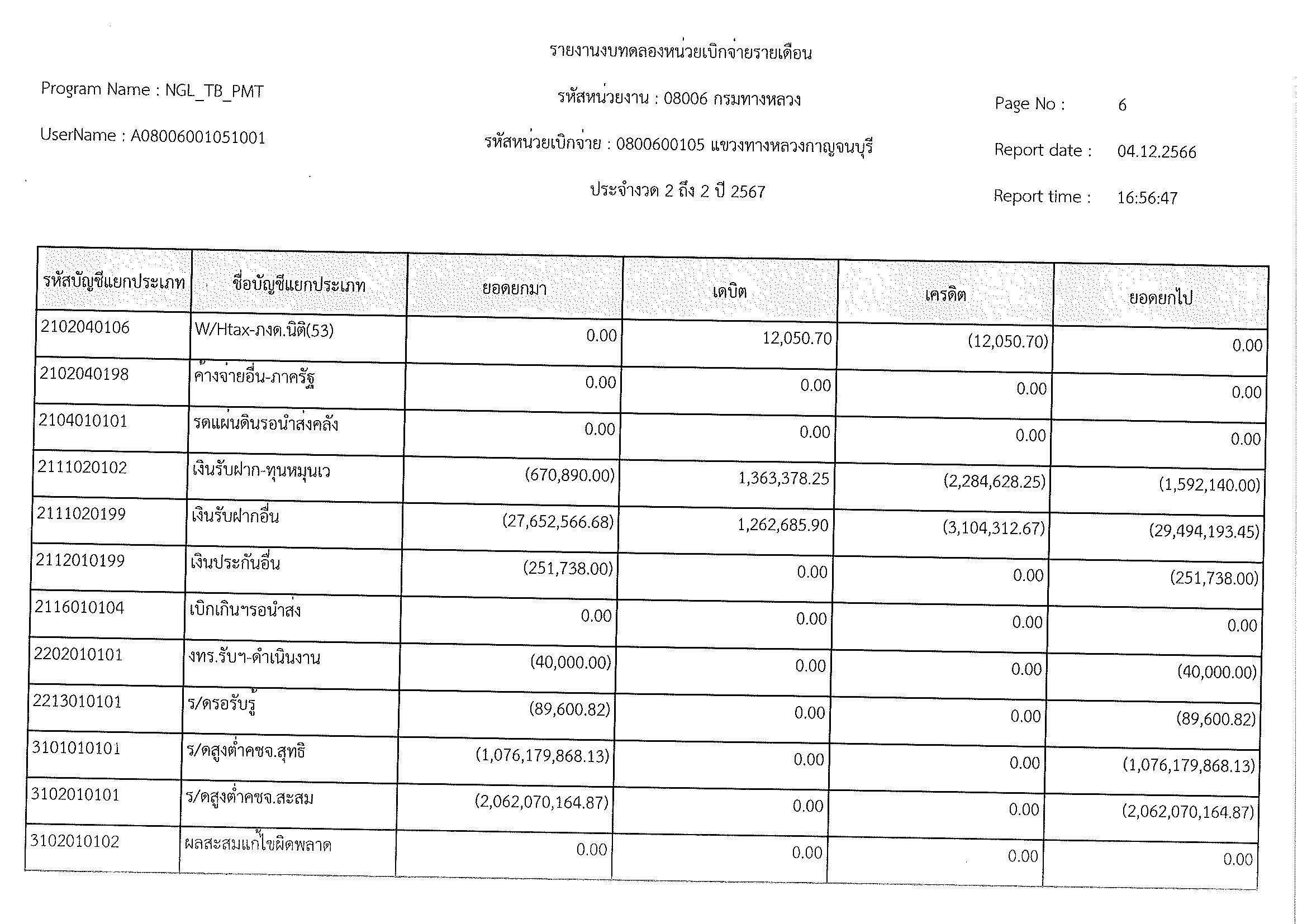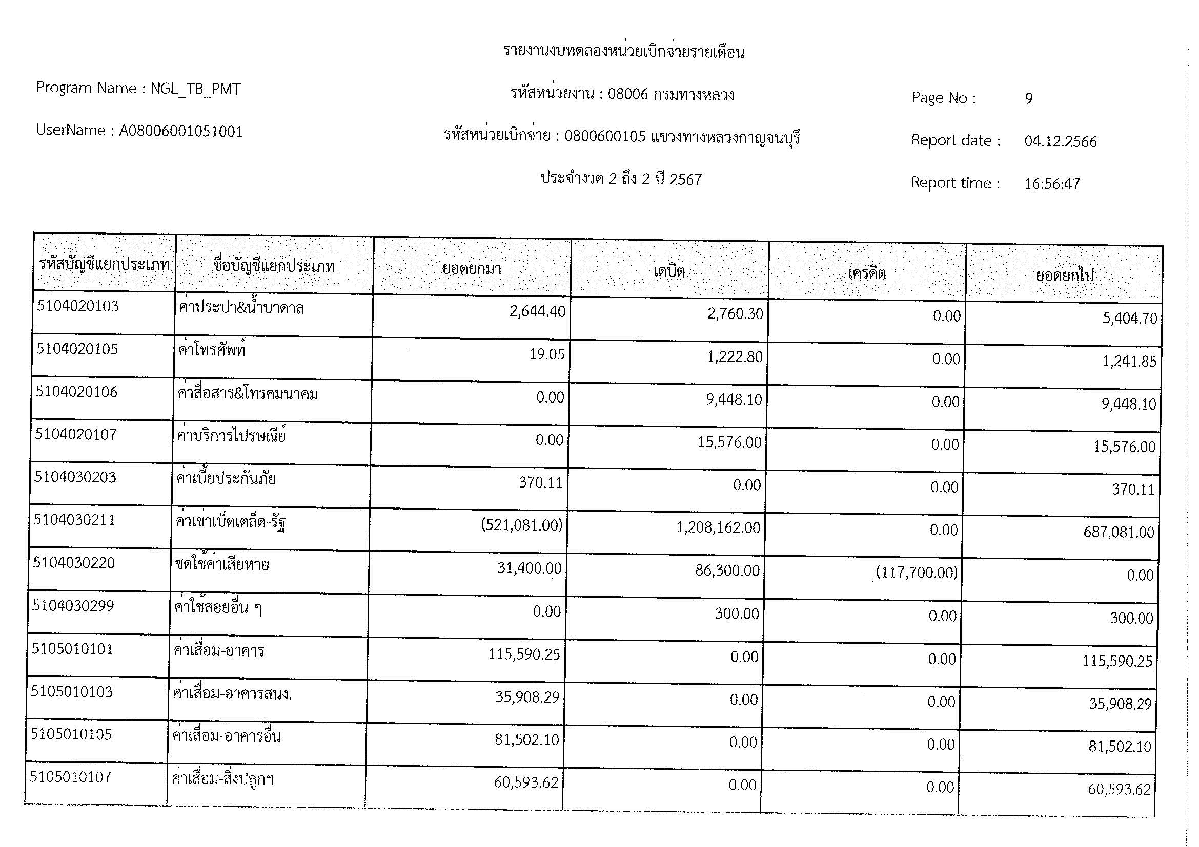 รายงานงบทดลองหน่วยเบิจจ่ายรายเดือน
