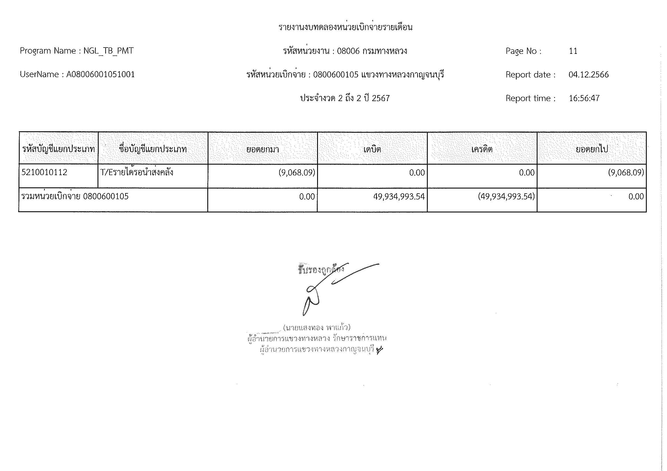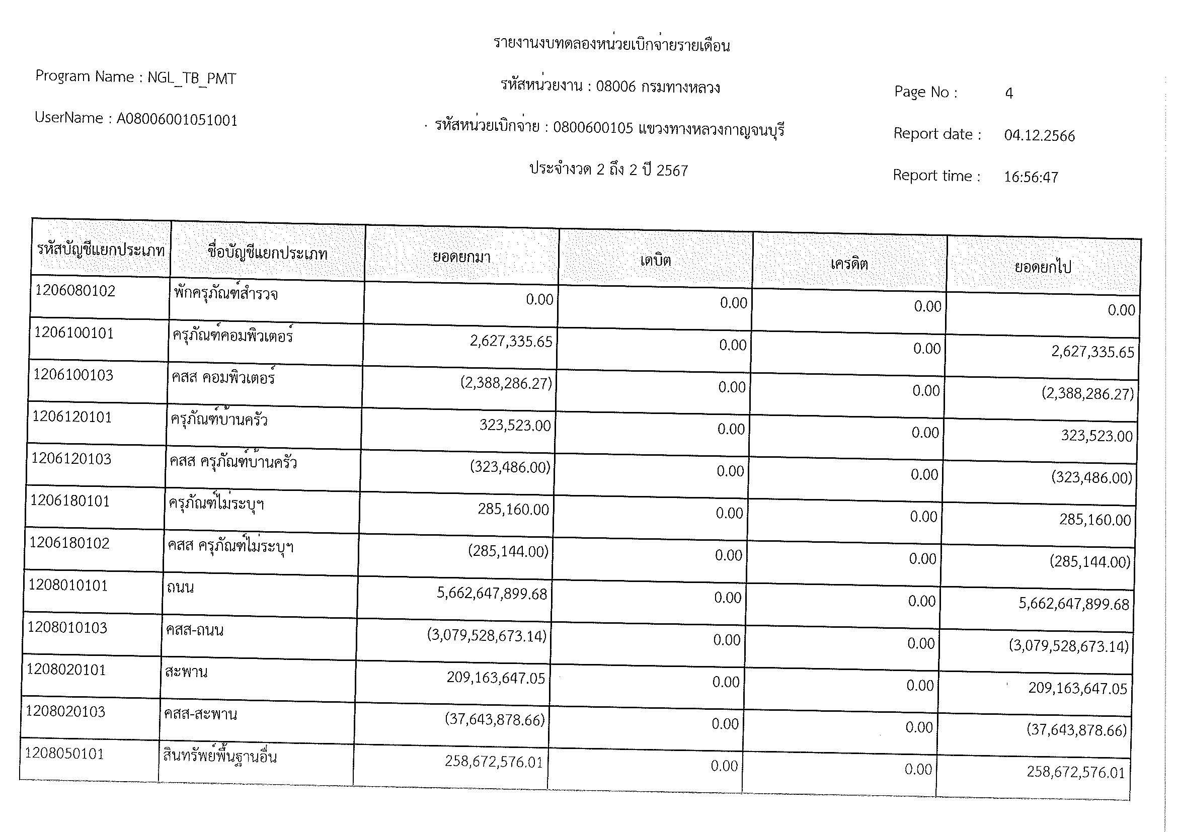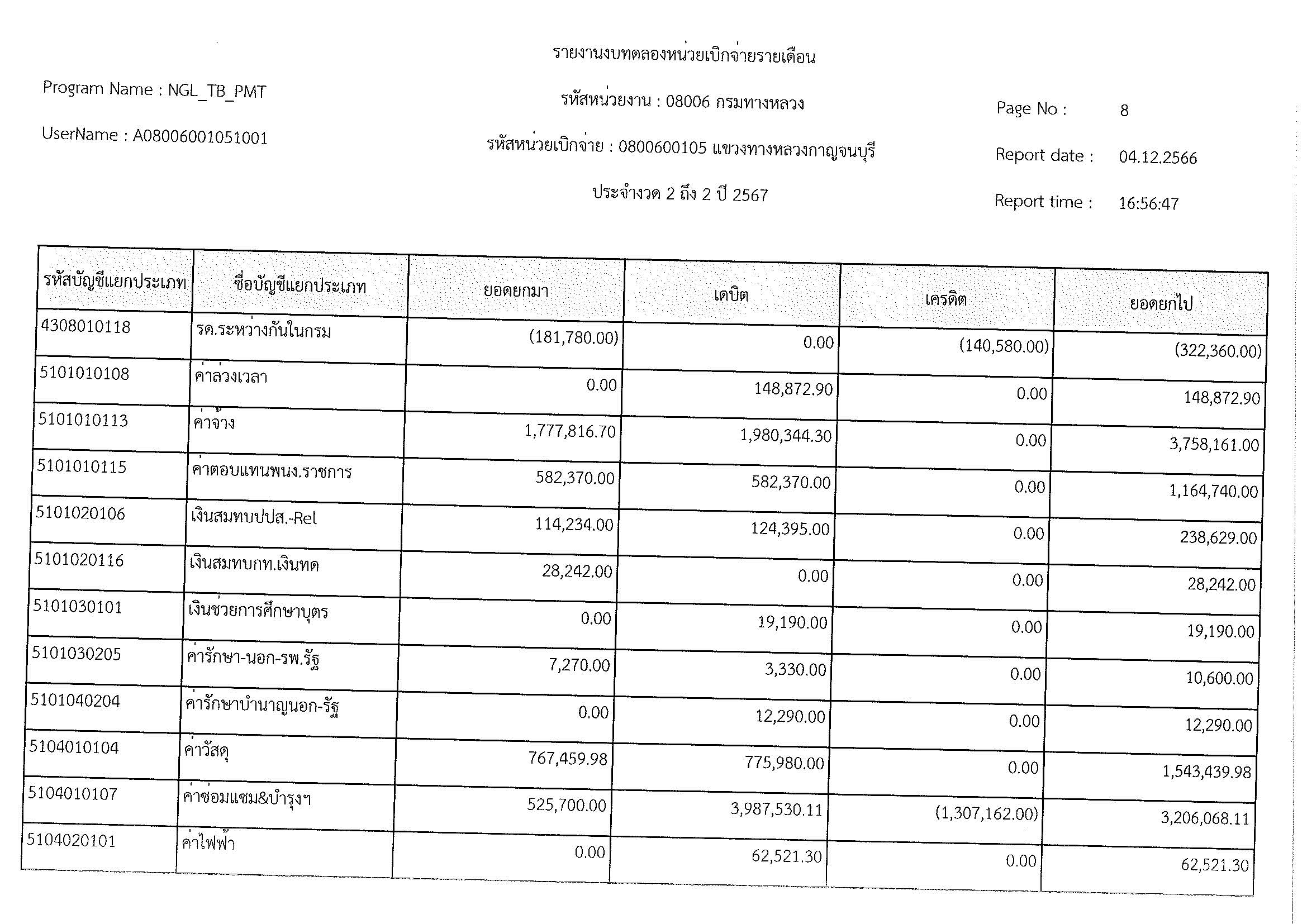 รายงานงบทดลองหน่วยเบิจจ่ายรายเดือน