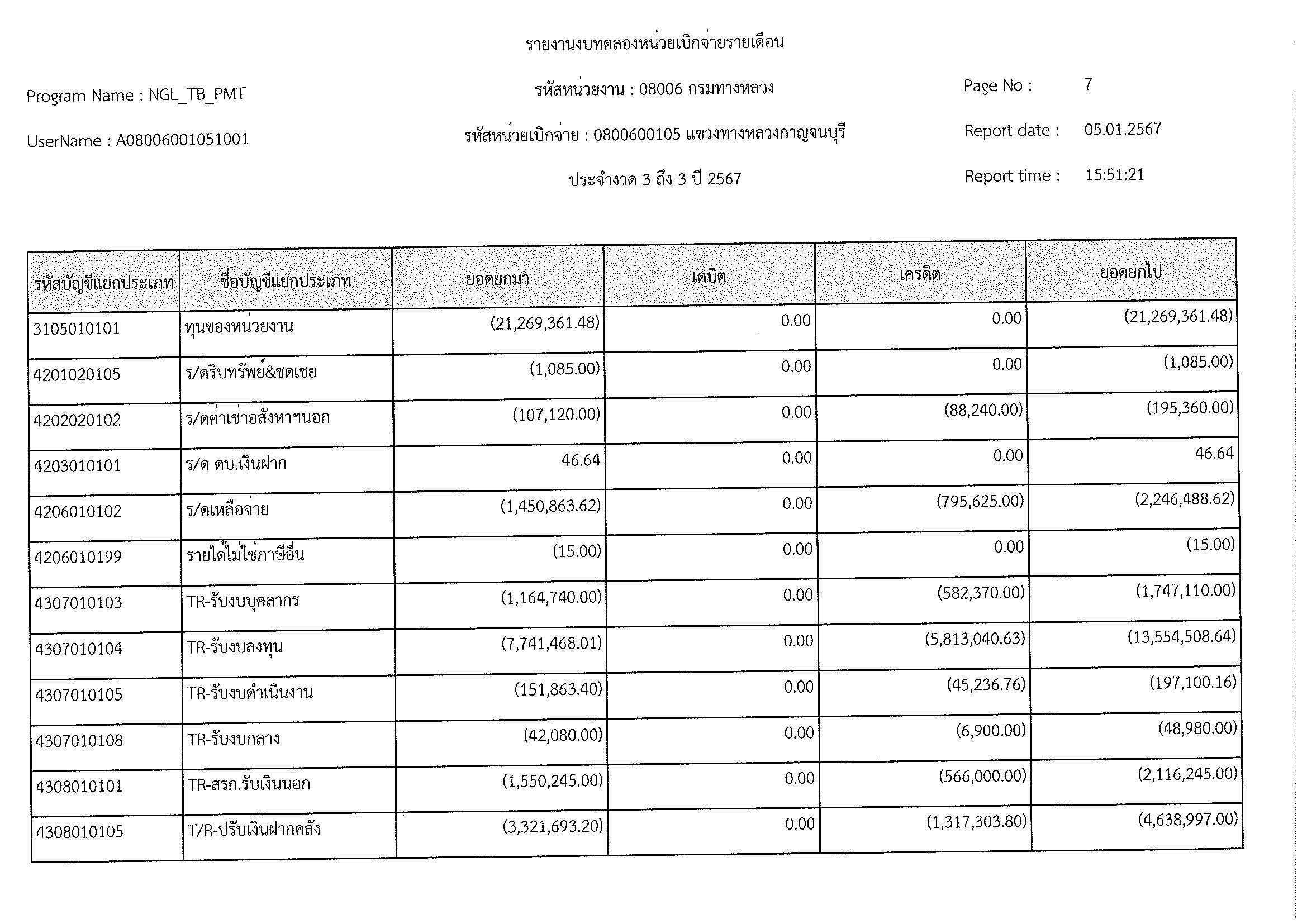 ข้อมูลข่าว : รายงานงบทดลองประจำเดือน ธันวาคม 2566