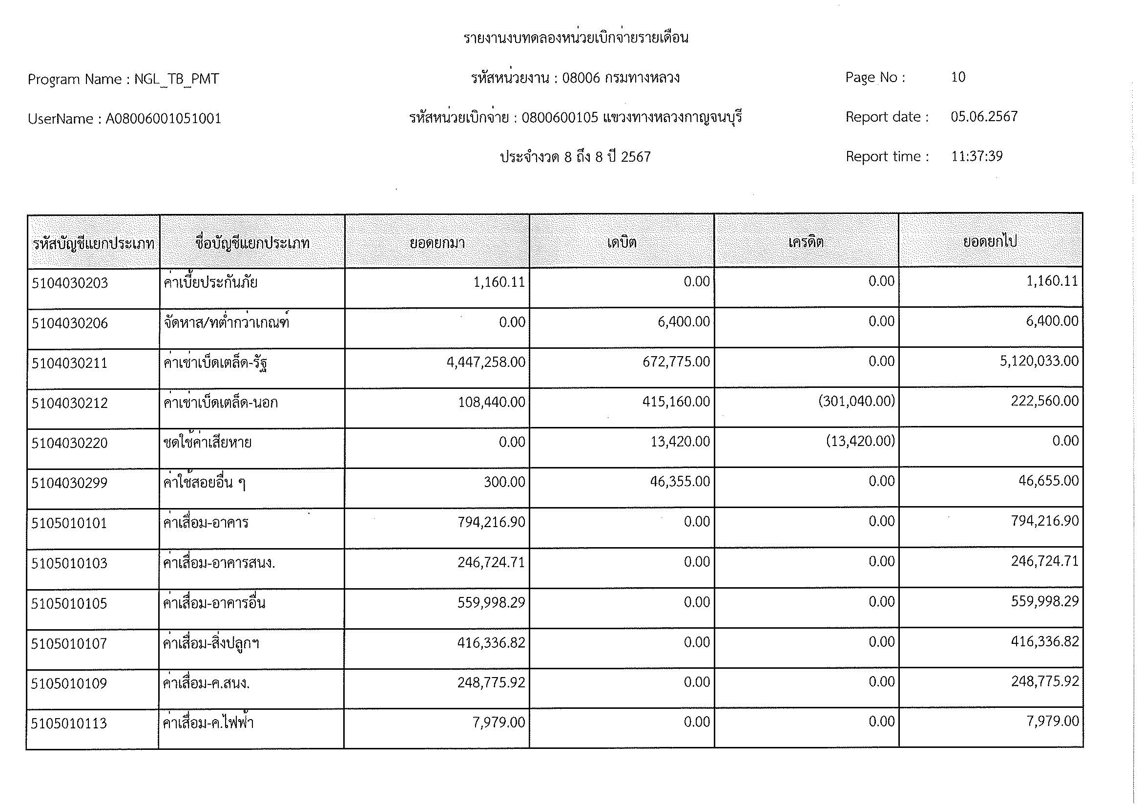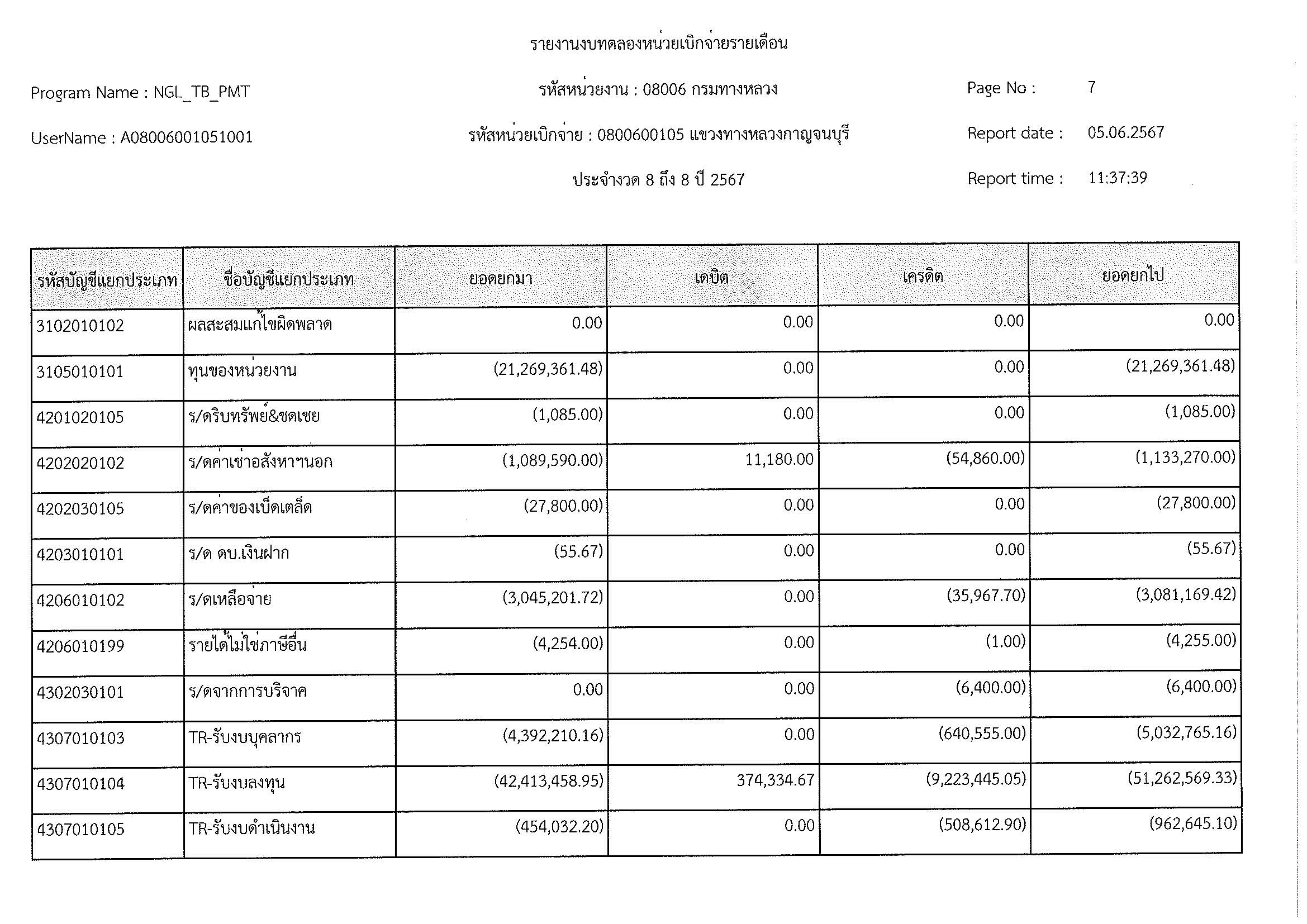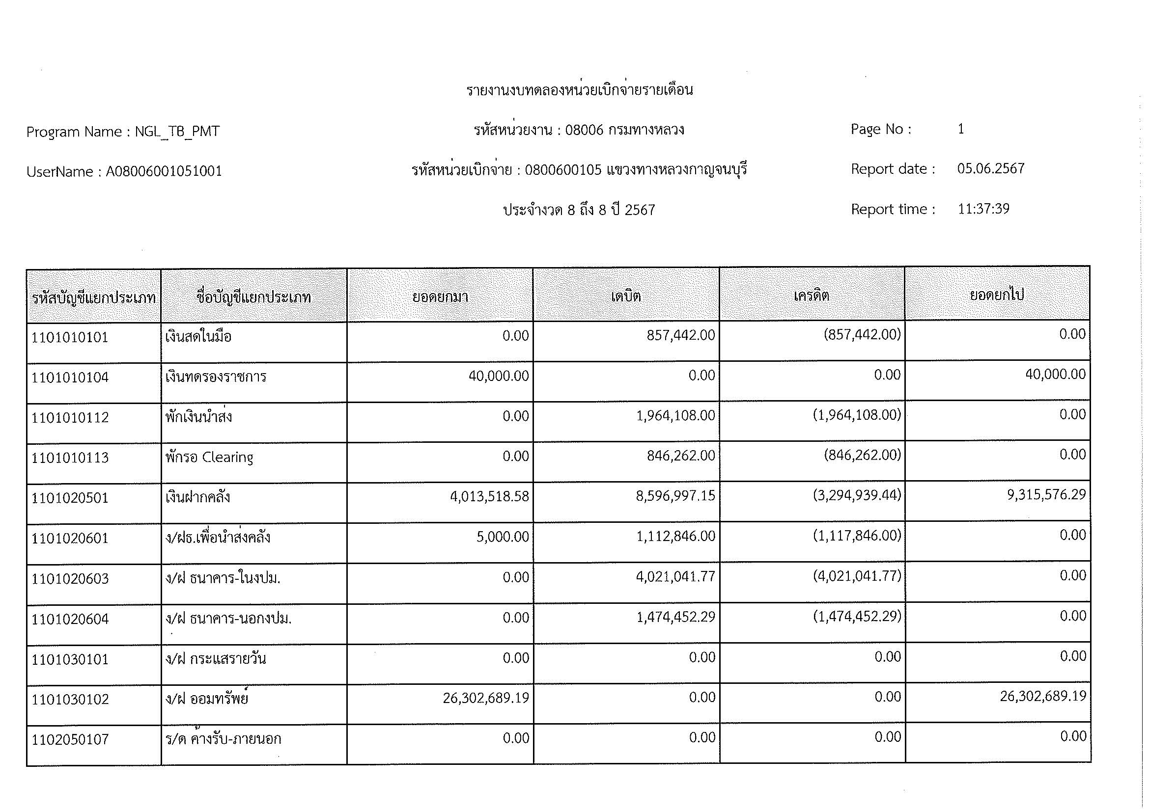 งบทดลองประจำเดือน พฤษภาคม 2567