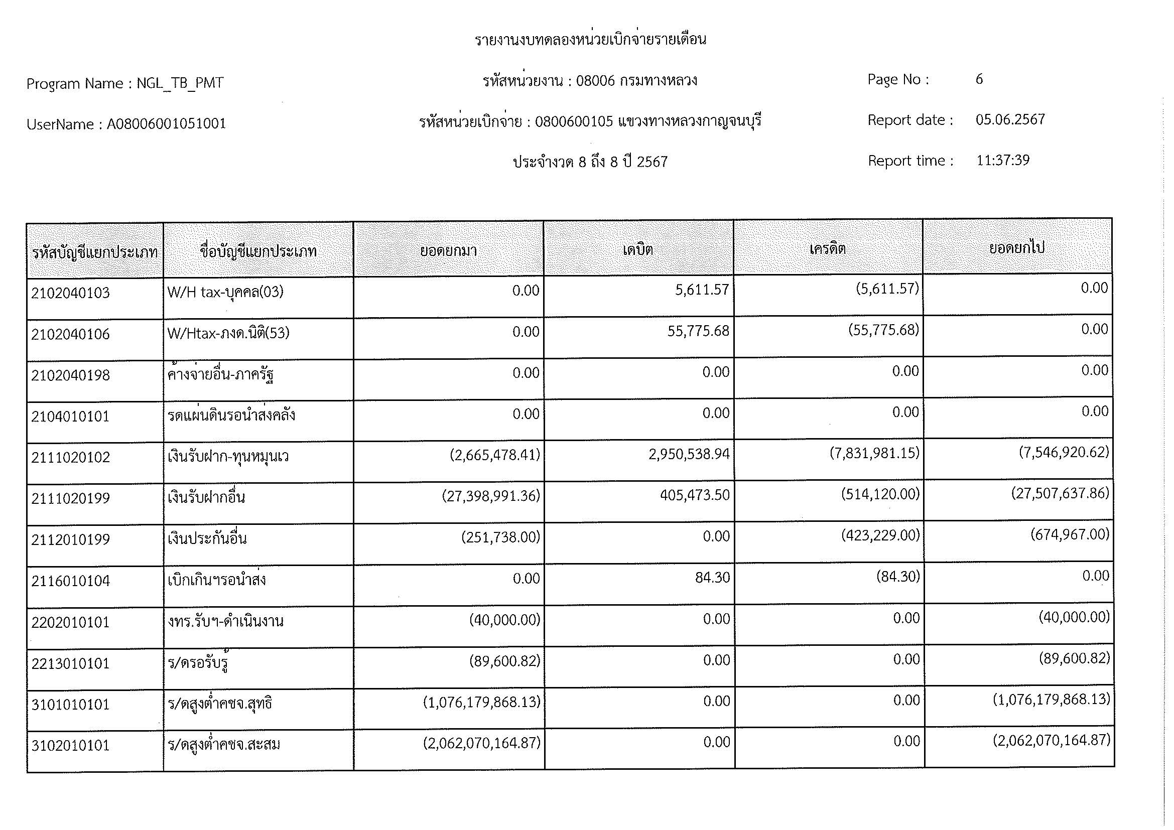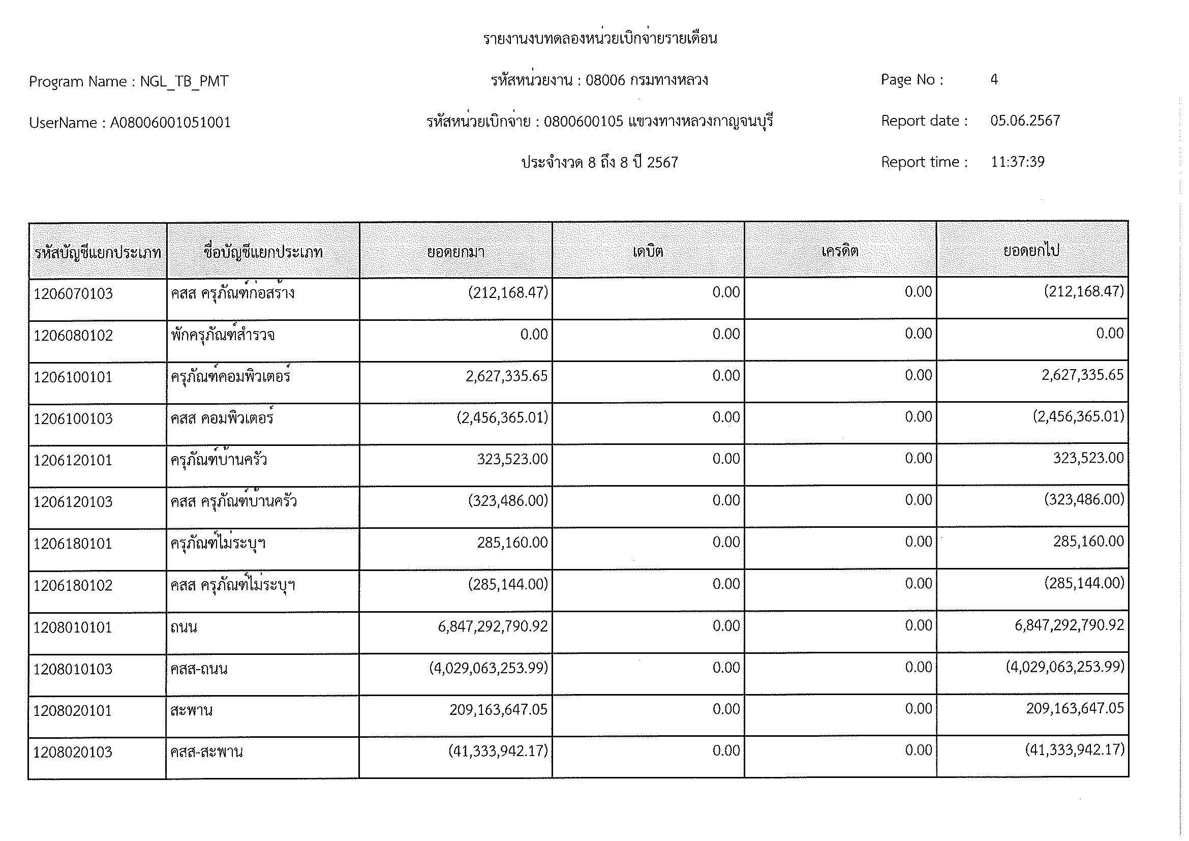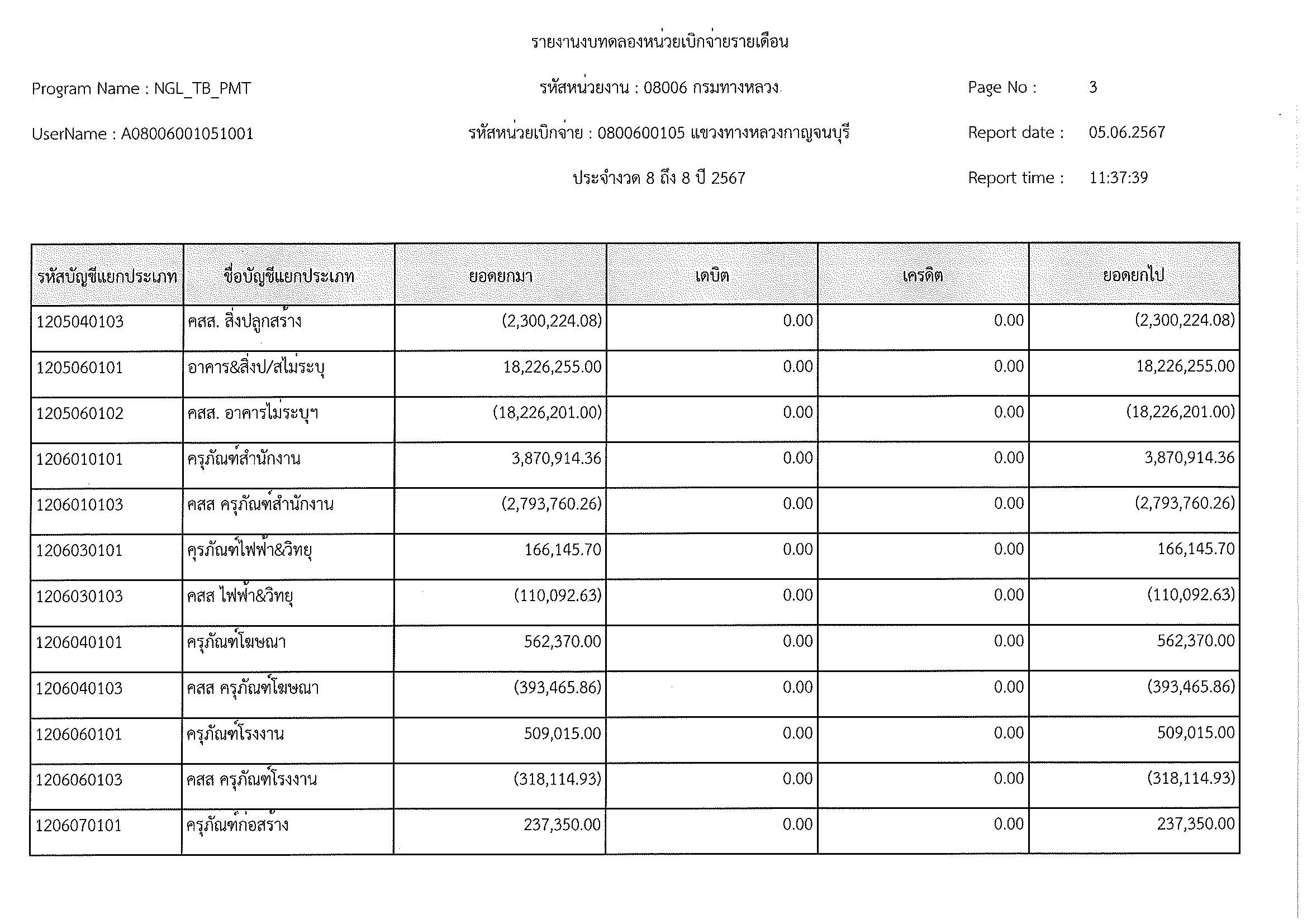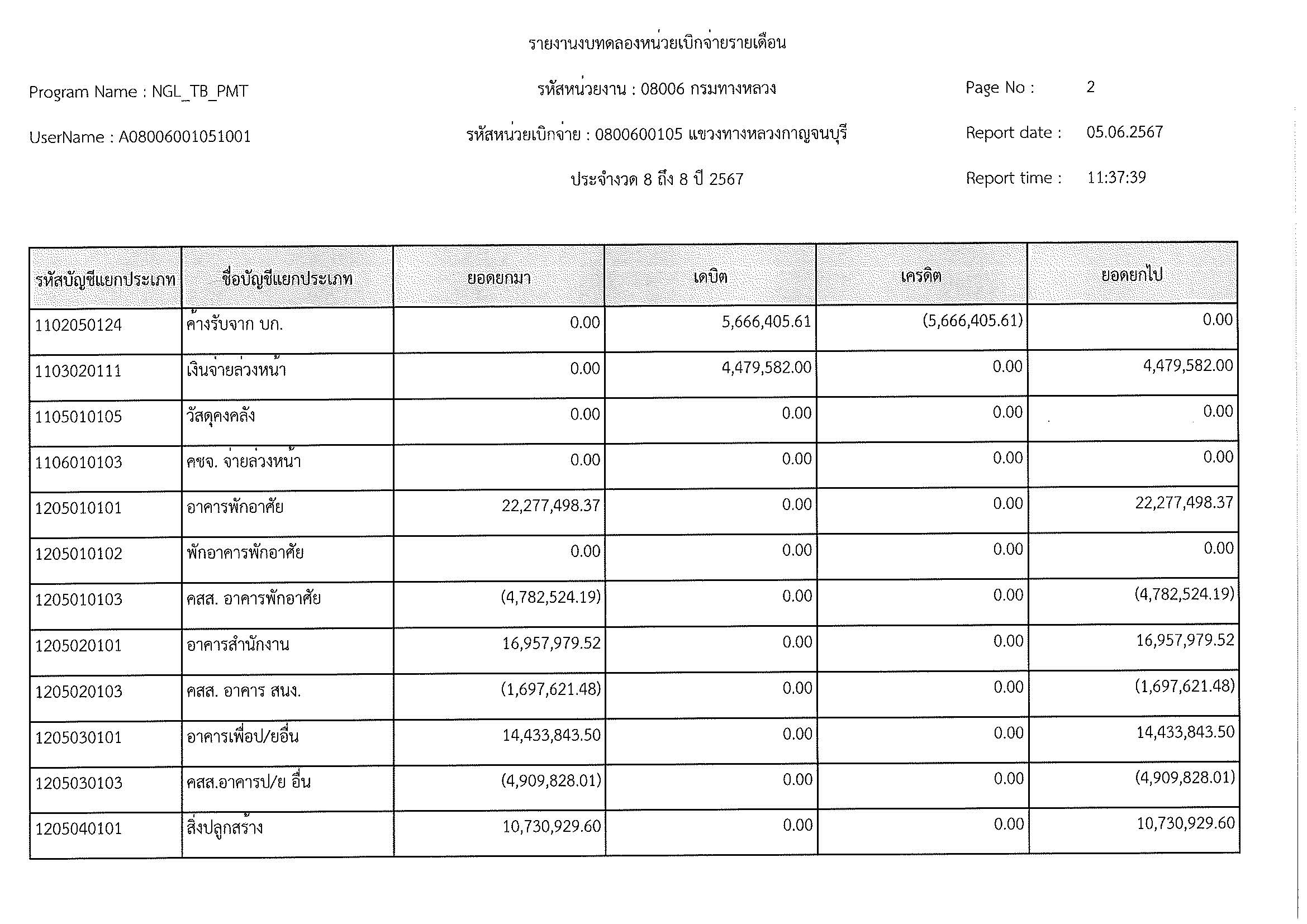 งบทดลองประจำเดือน พฤษภาคม 2567