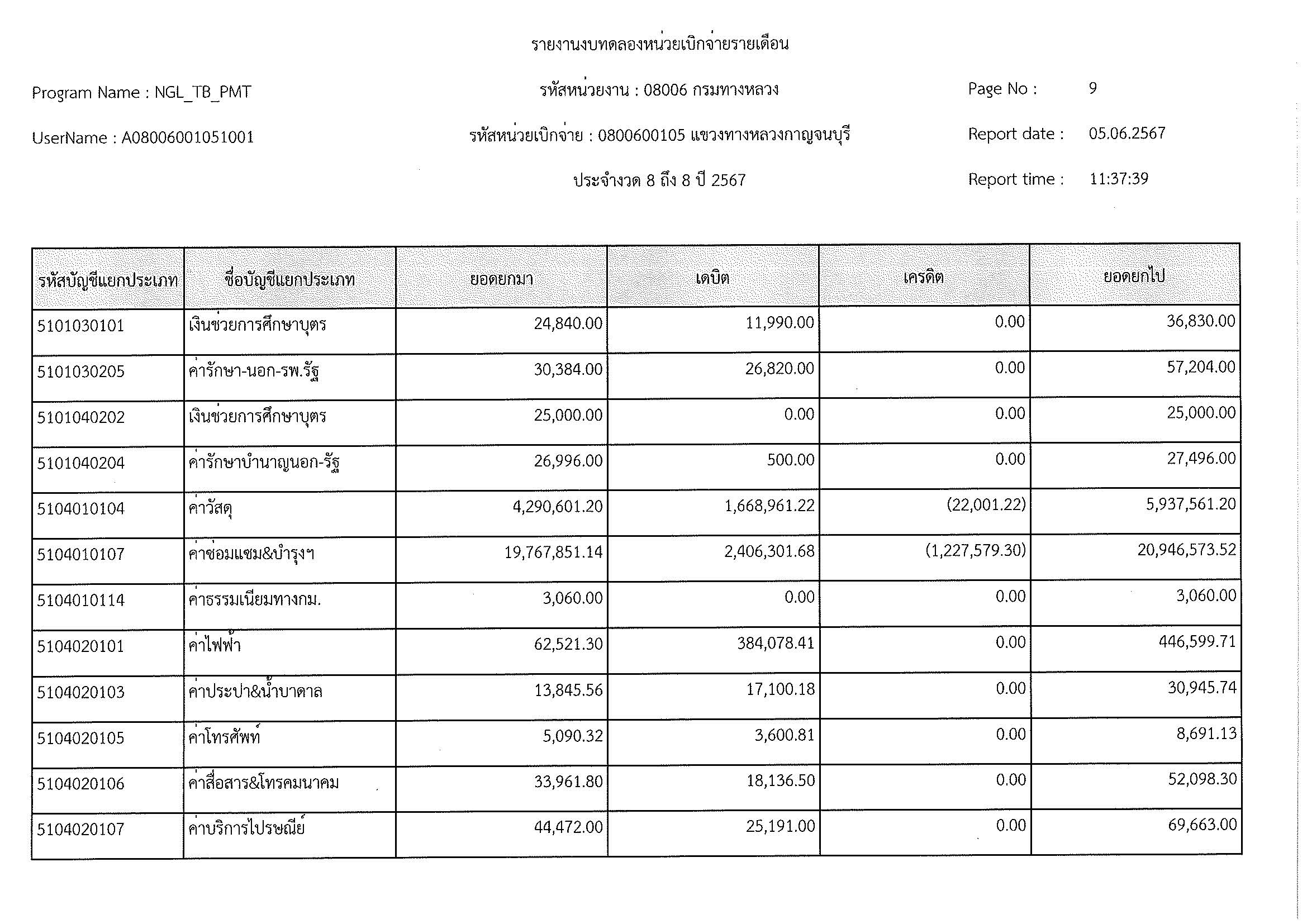 ข้อมูลข่าว : งบทดลองประจำเดือน พฤษภาคม 2567
