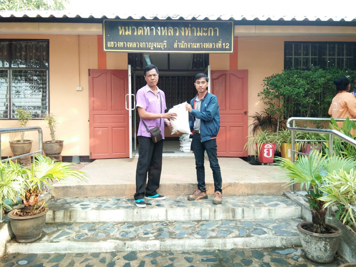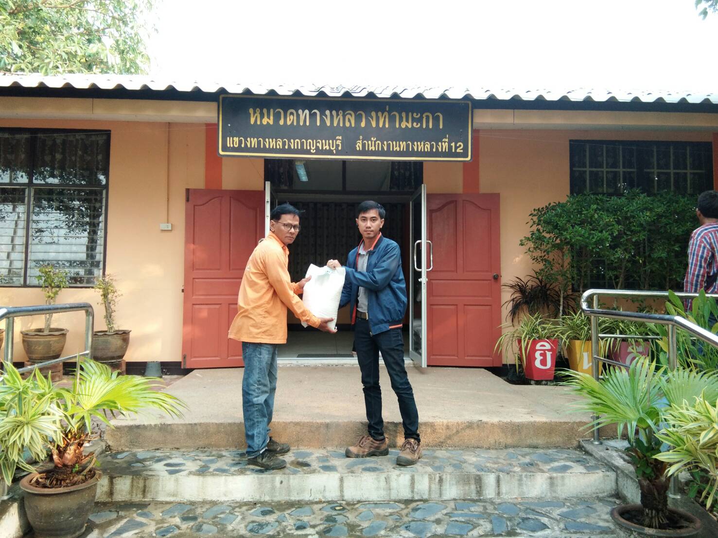 นายเผ่าพงษ์ ดอนสมพงษ์ หมวดทางหลวงท่ามะกาทำการแจกข้าวสารจากท่าน ผู้อำนวยการสำนักงานทางหลวงที่ 12 เพื่อเป็นขวัญกำลังใจในการทำงานให้กับเจ้าหน้าที่หมวดทางหลวงท่ามะกา ทุกท่าน