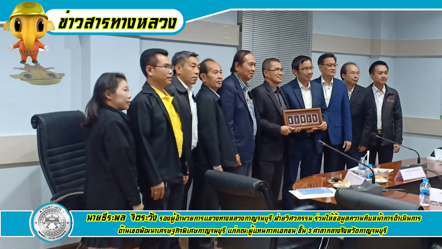 นายธีระพล  จิตระวัง รองผู้อำนวยการแขวงทางหลวงกาญจนบุรี ฝ่ายวิศวกรรม ร่วมให้ข้อมูลความคืบหน้าการดำเนินการด้านเขตพัฒนาเศรษฐกิจพิเศษกาญจนบุรี แก่คณะผู้แทนภาคเอกชน นำโดยคณะอนุกรรมการด้านการค้าชายแดนและเขตพัฒนาเศรษฐกิจพิเศษ ณ ศูนย์บริการเบ็ดเสร็จด้านการลงทุน (OSS) ชั้น 3 ศาลากลางจังหวัดกาญจนบุรี