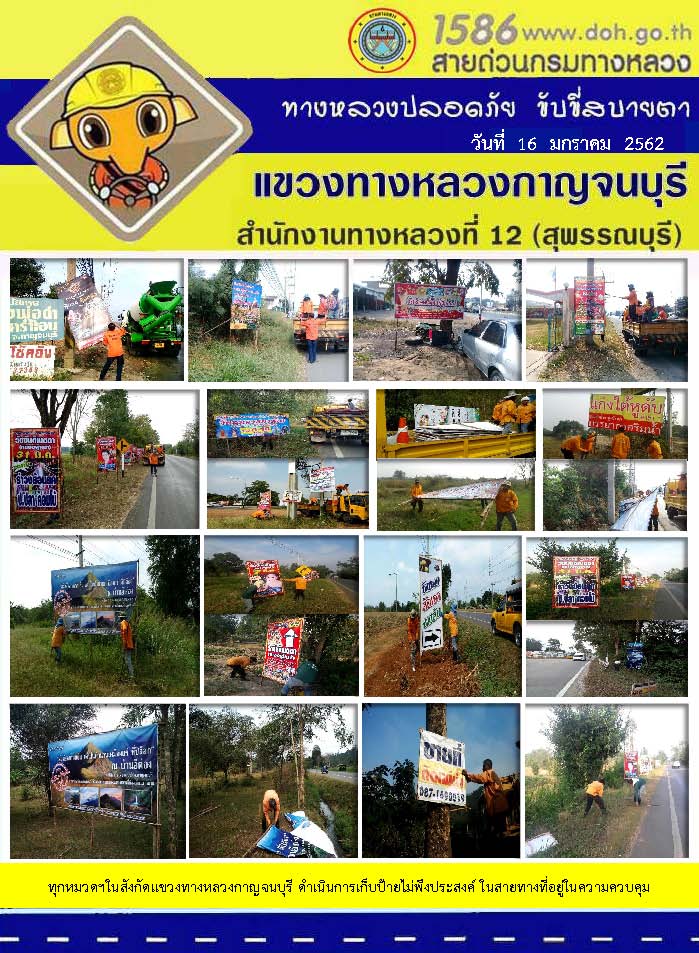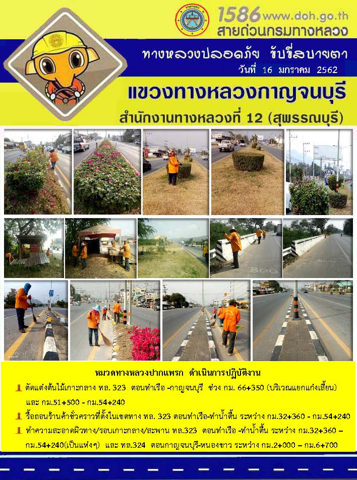 ข้อมูลข่าว : งานอำนวยความสะดวกและความปลอดภัย โดยแขวงทางหลวงกาญจนบุรี 17/01/62