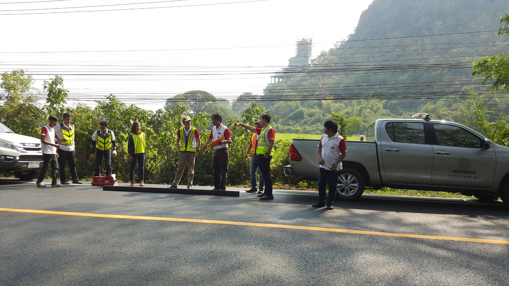 นายนพพร พิสุทธิมาน รองผู้อำนวยการสำนักงานทางหลวงที่ 12 ,นายมงคล ทวีชัยทศพลผู้อำนวยการแขวงทางหลวงกาญจนบุรี ,นายธีระพล จิตระวัง รองผู้อำนวยการแขวงทางหลวงกาญจนบุรี ฝ่ายวิศวกรรม และคณะเจ้าหน้าที่กรมทางหลวง ดำเนินการตรวจรับงานตาม สัญญาที่ กจ.(ส) 6/2562 เสริมผิวแอสฟัลท์ทางหลวงหมายเลข 3209 ตอนด่านมะขามเตี้ย - กาญจนบุรี กม.76+019-80+611