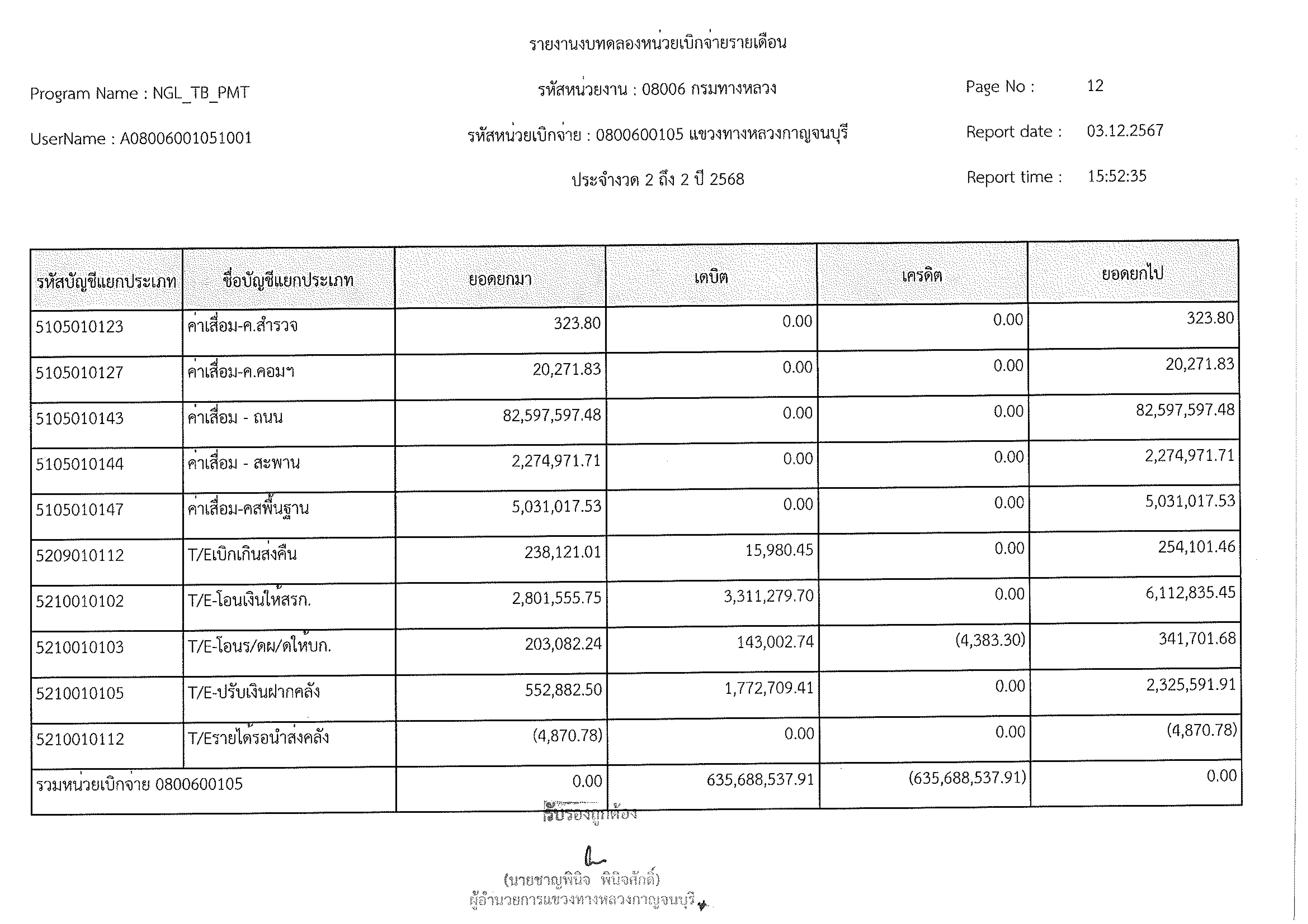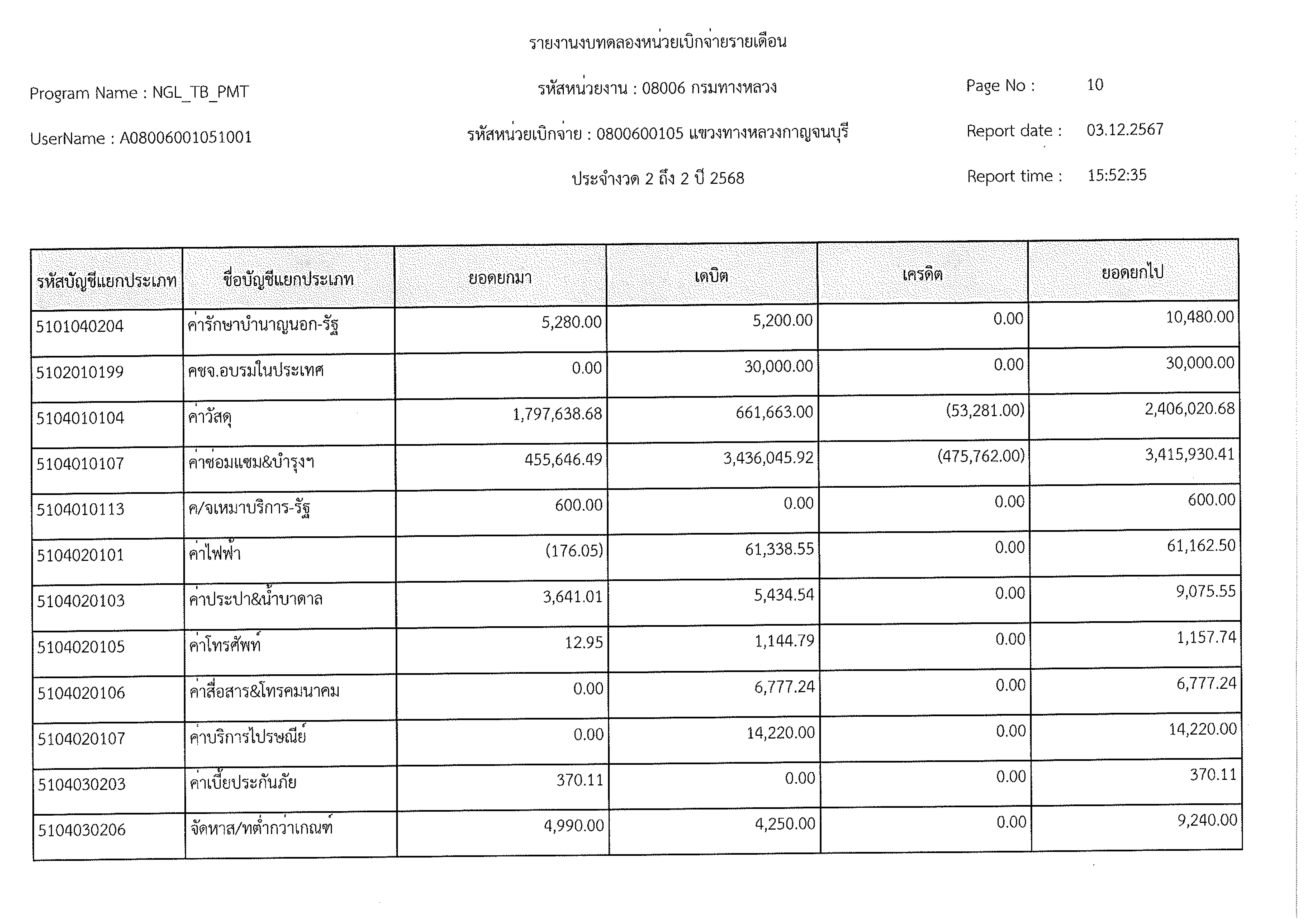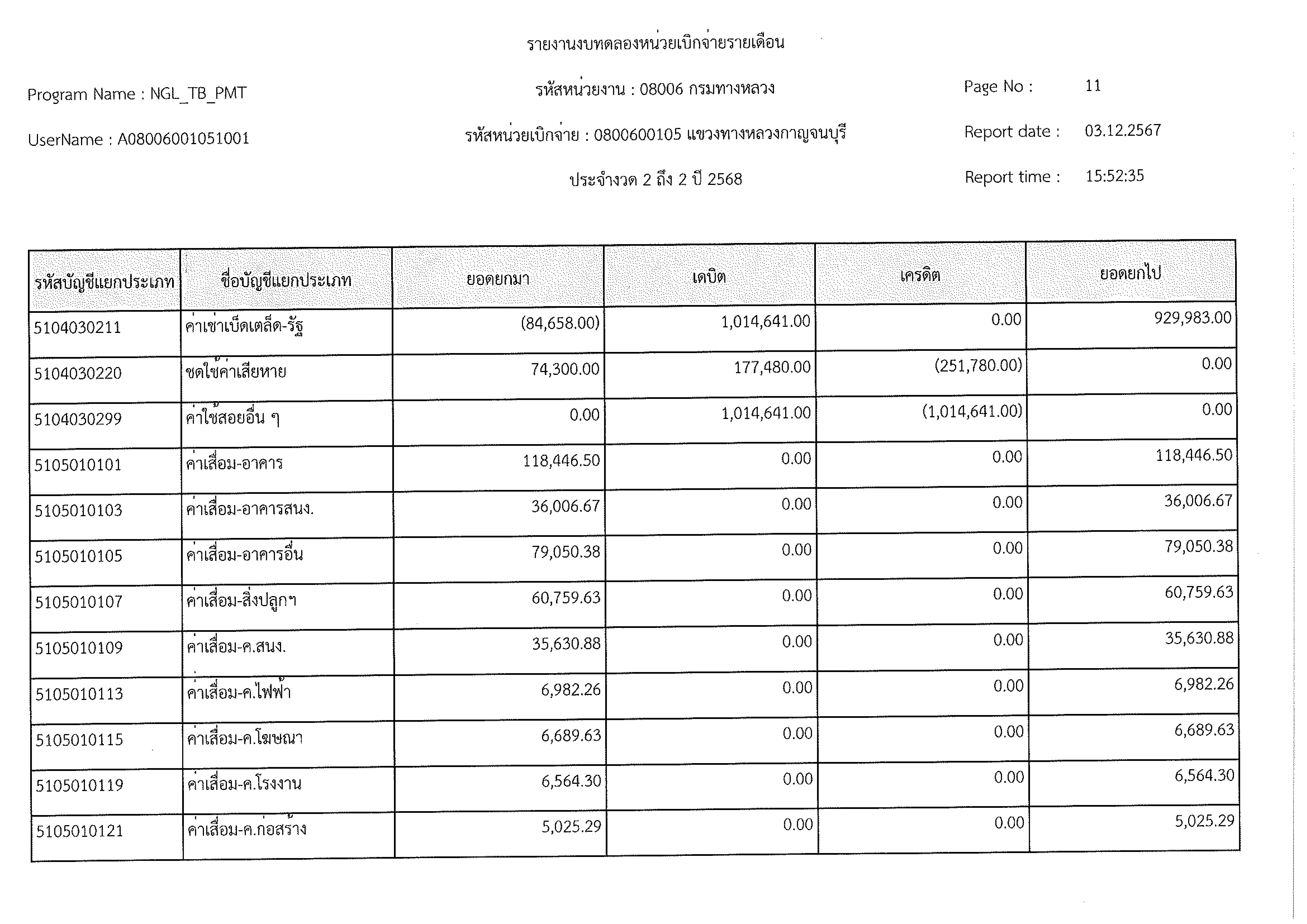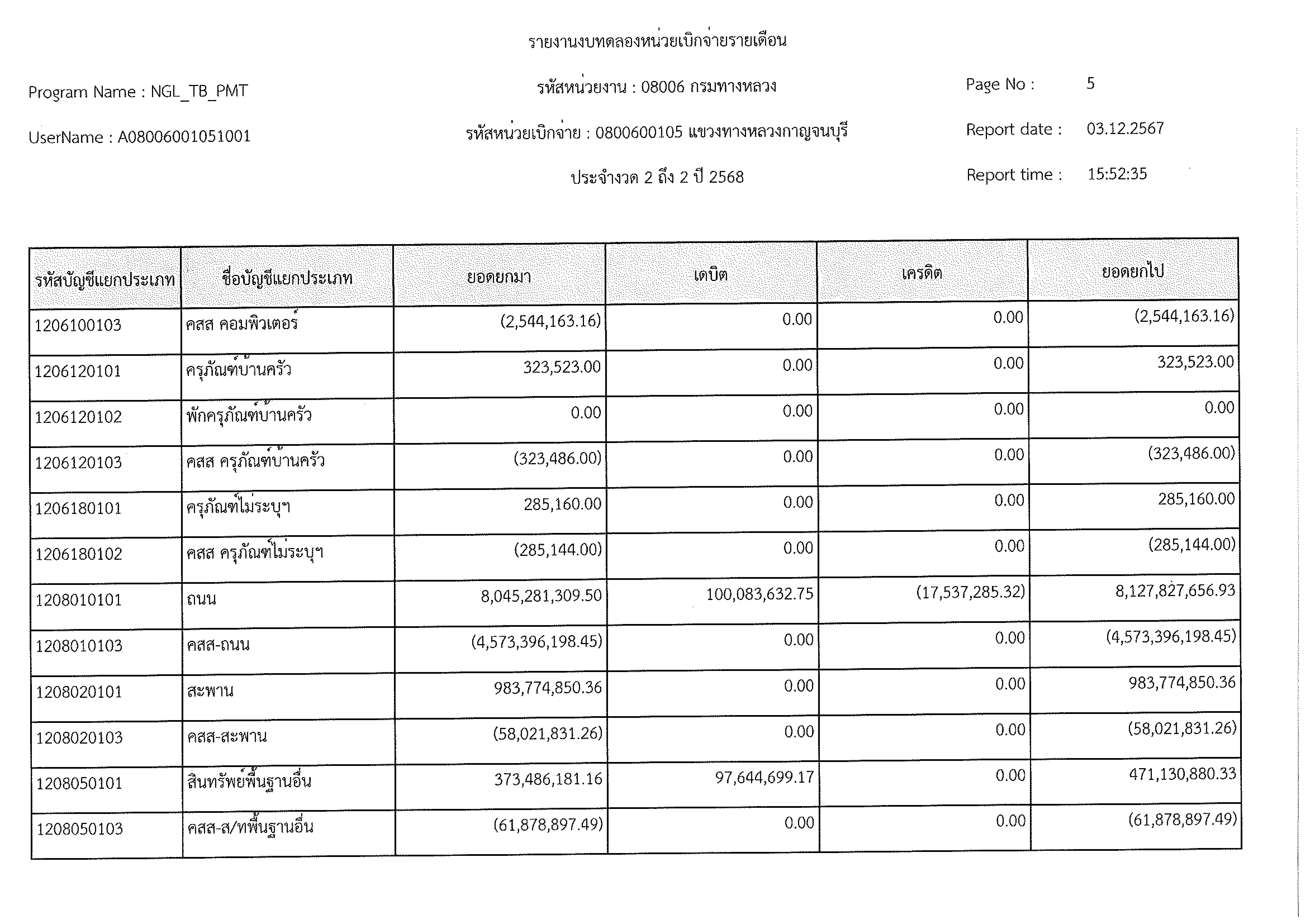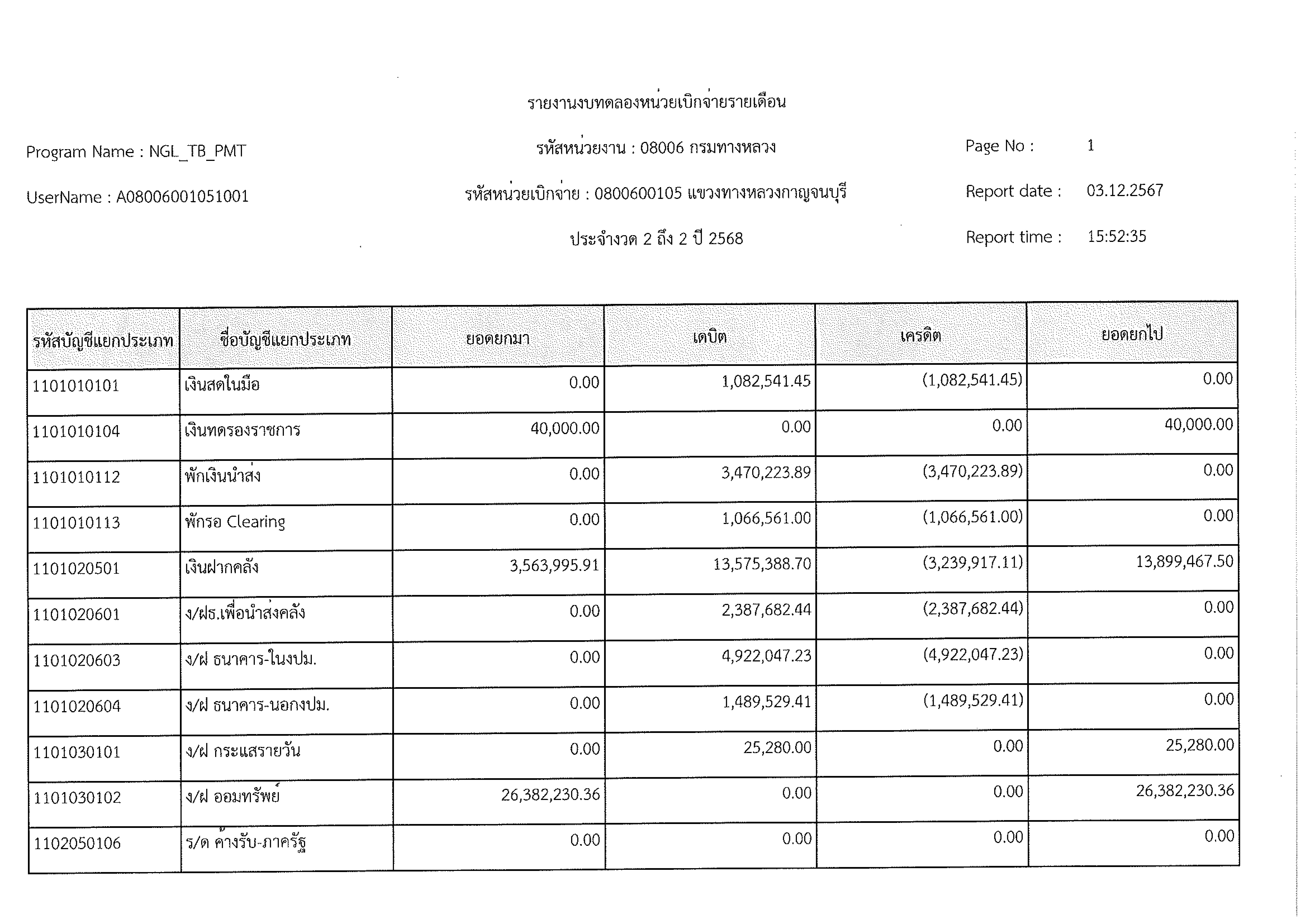ข้อมูลข่าว : งบทดลอง พ.ย. 2567