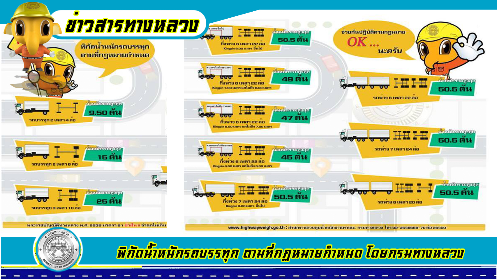 ข้อมูลข่าว : พิกัดน้ำหนักรถบรรทุก ตามที่กฏหมายกำหนด โดยกรมทางหลวง