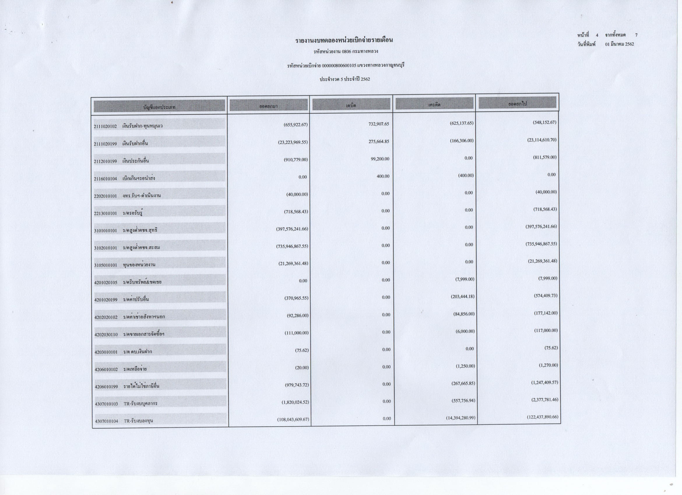ข้อมูลข่าว : รายงานงบทดลองหน่วยเบิกจ่ายรายเดือน ประจำงวดที่ 5 ประจำปี 2562