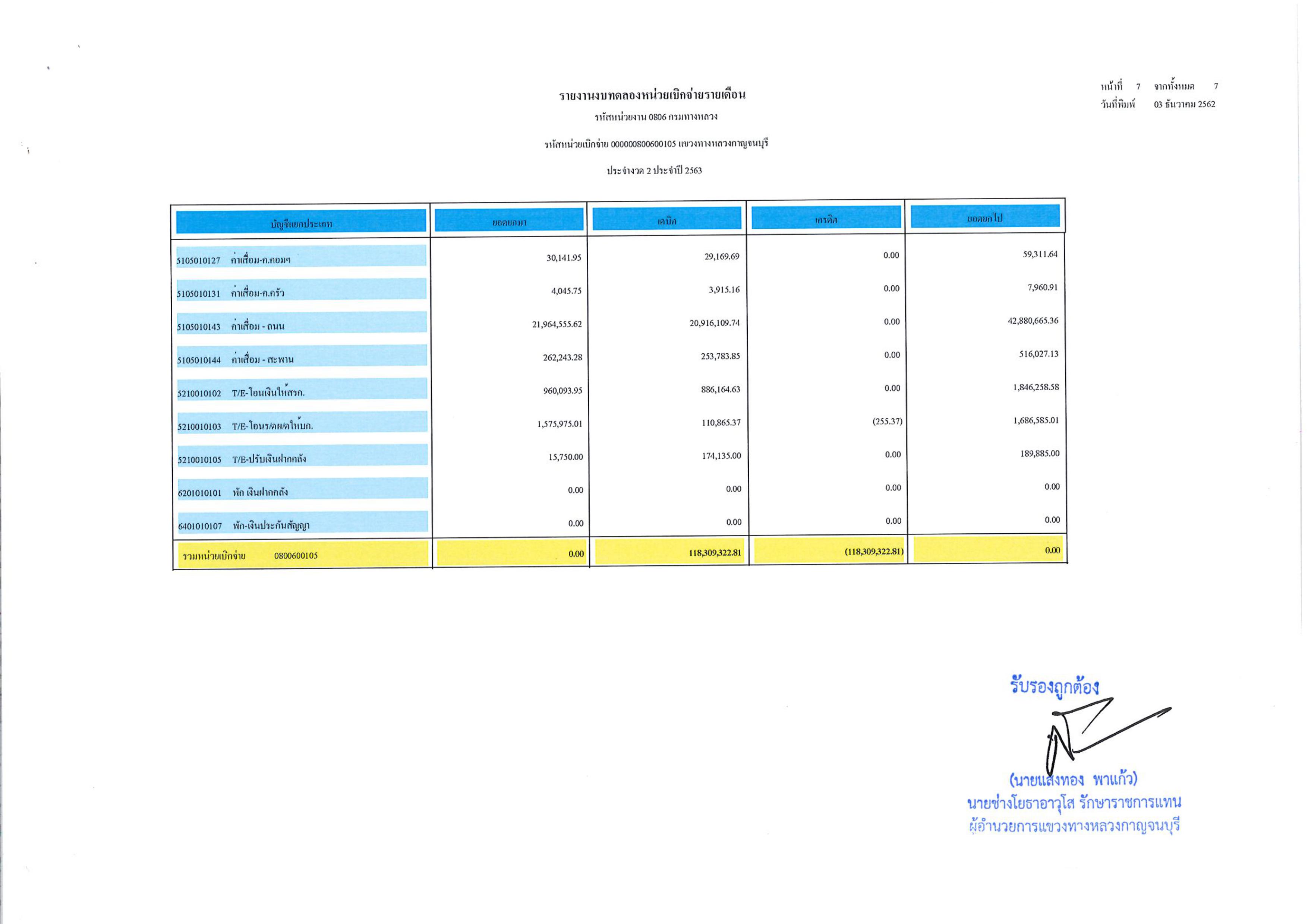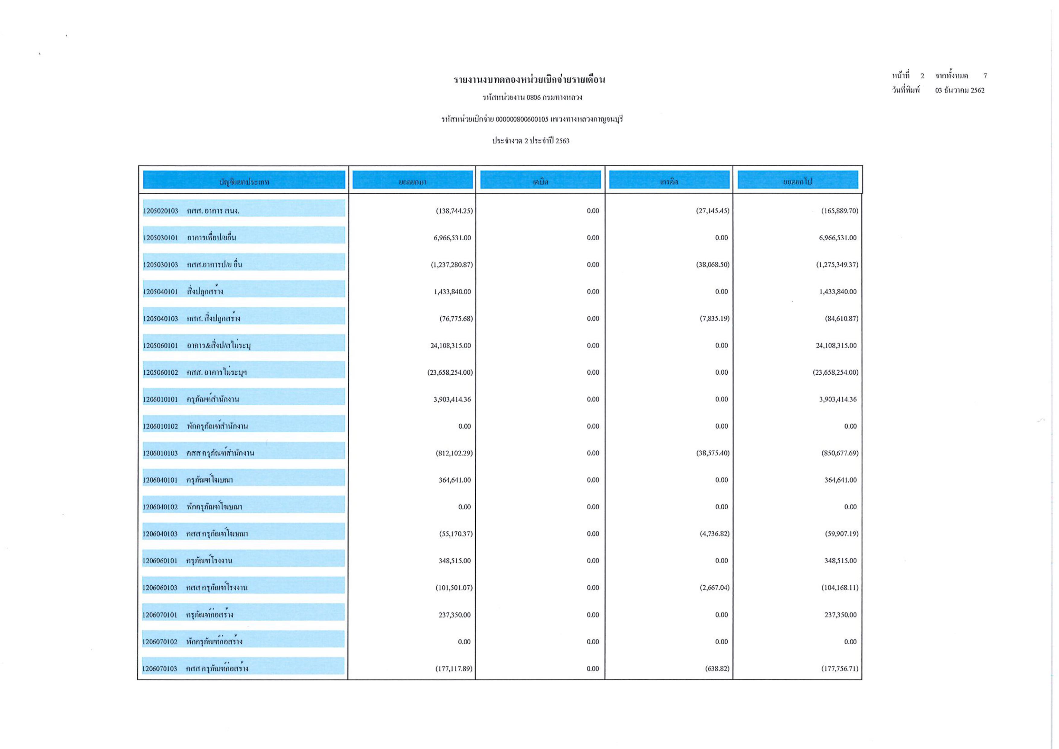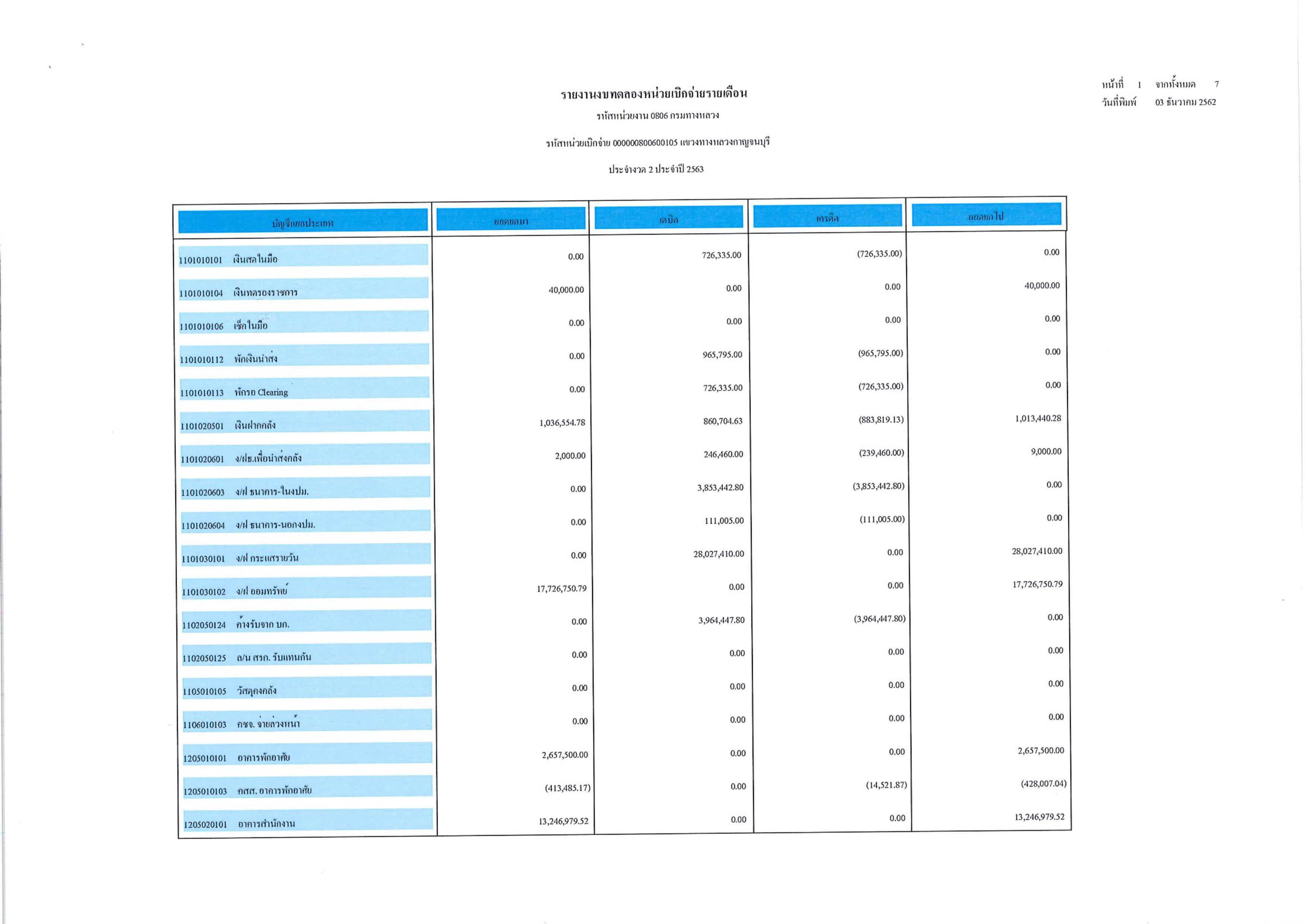 ข้อมูลข่าว : รายงานงบทดลองหน่วยเบิกจ่ายรายเดือน ประจำงวดที่ 2 ประจำปี 2563