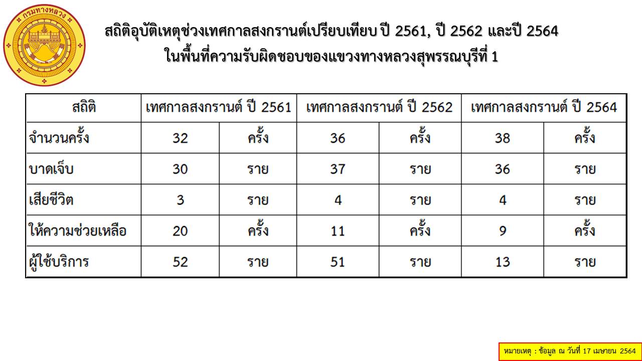 สรุปข้อมูลอุบัติเหตุช่วงเทศกาลสงกรานต์64 |