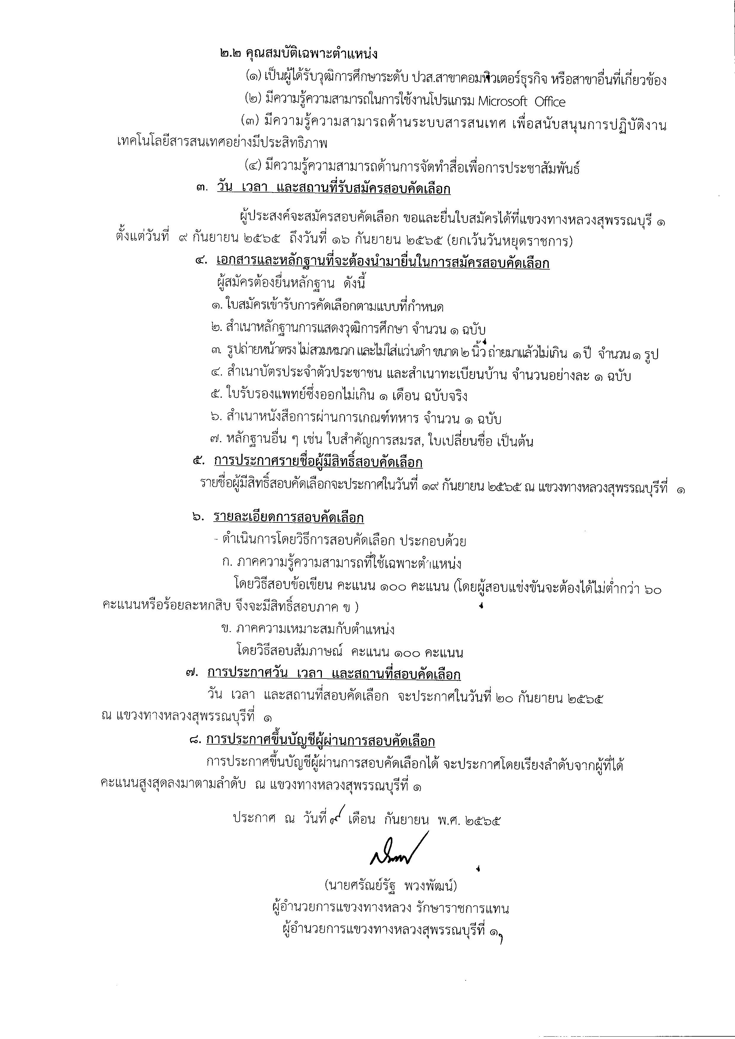 ????แขวงทางหลวงสุพรรณบุรีที่1 เปิดรับสมัคร เจ้าพนักงานธุรการ2 จำนวน 1 อัตรา รายละเอียดตามเอกสารแนบคะ สอบถามเพิ่มเติม 035-522940
