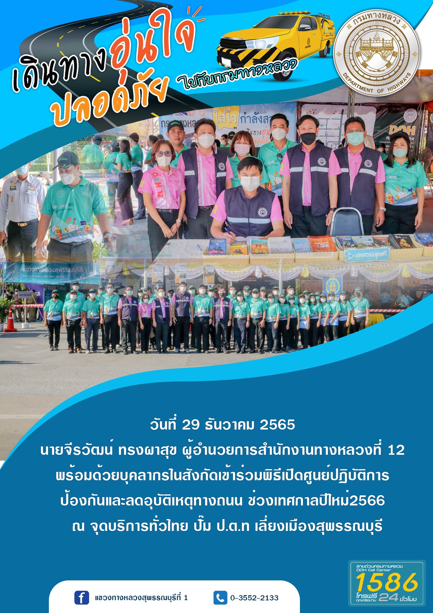 โดยมี นายธีรยุทธ์ จันทร์ดิษฐวงษ์ รองผู้ว่าราชการจังหวัดสุพรรณบุรี เป็นประธานในพิธีเปิด ณ จุดบริการทั่วไทย ปั๊ม ปตท.เลี่ยงเมืองสุพรรณบุรี (ทางหลวงหมายเลข 340)