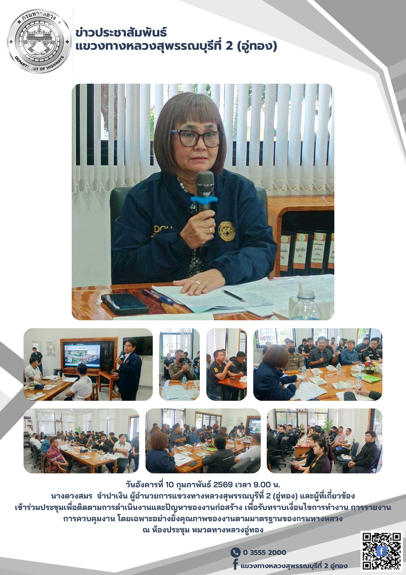 14 10/02/2569 ประชุมเพื่อติดตามการดำเนินงานและปัญหาของงานก่อสร้าง เพื่อรับทราบเงื่อนไขการทำงาน การรายงาน การควบคุมงาน โดยเฉพาะอย่างยิ่งคุณภาพของงานตามมาตรฐานของกรมทางหลวง