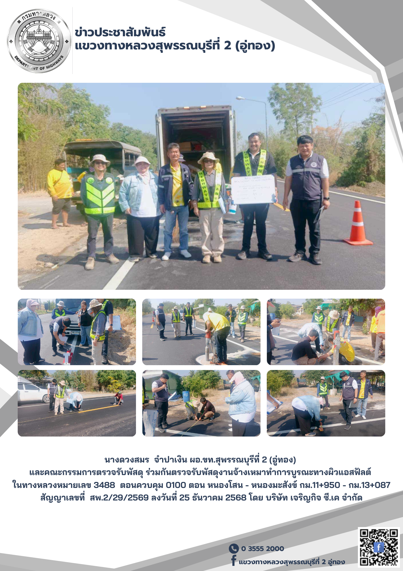12 11/02/2569 ตรวจรับพัสดุงานจ้างเหมาทำการบูรณะทางผิวแอสฟัลต์ ในทางหลวงหมายเลข 3488 ตอนควบคุม 0100 ตอน หนองโสน - หนองมะสังข์ กม.11+950 - กม.13+087