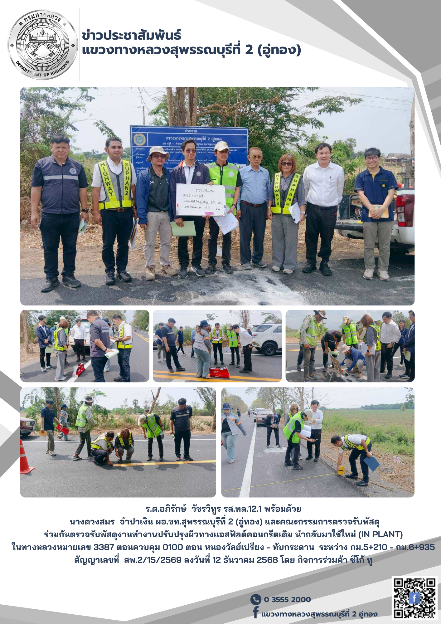 10 26/02/2569 ตรวจรับพัสดุงานทำงานปรับปรุงผิวทางแอสฟัลต์คอนกรีตเดิม นำกลับมาใช้ใหม่ (IN PLANT) ในทางหลวงหมายเลข 3387 ตอนควบคุม 0100 ตอน หนองวัลย์เปรียง - ทับกระดาน ระหว่าง กม.5+210 - กม.6+935