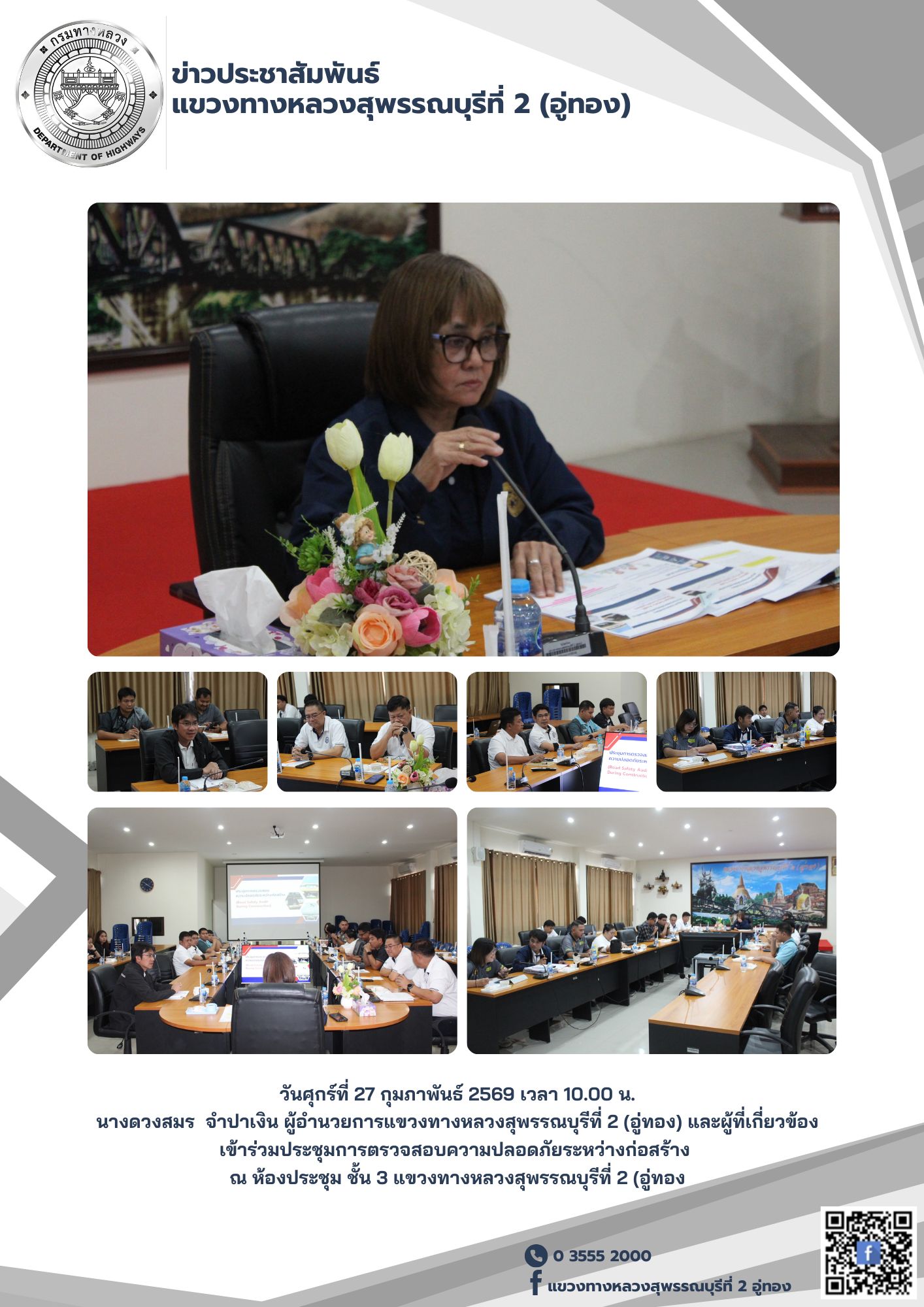 11 18/02/2569 ประเมินผลงานบำรุงทาง งานอำนวยความปลอดภัย ประจำภาค ปี 2568 โดยมี นายกฤษณ์ พรหมศิรินนท์ หัวหน้าหมวดทางหลวงอู่ทอง เป็นผู้รับการประเมิน