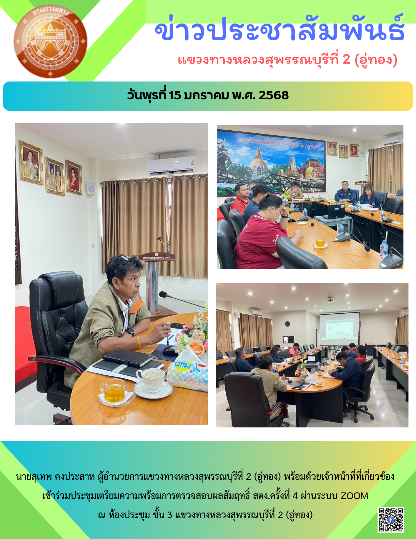 ประชุมผู้บริหารกรมทางหลวง ประจำเดือนมกราคม 2568 ครั้งที่ 1/2568 ผ่านระบบ ZOOM