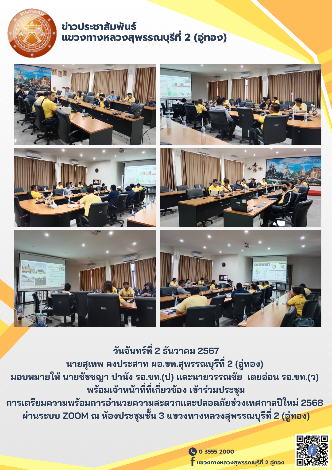 ประชุมการเตรียมความพร้อมการอำนวยความสะดวกและปลอดภัยช่วงเทศกาลปีใหม่ 2568 ผ่านระบบ ZOOM