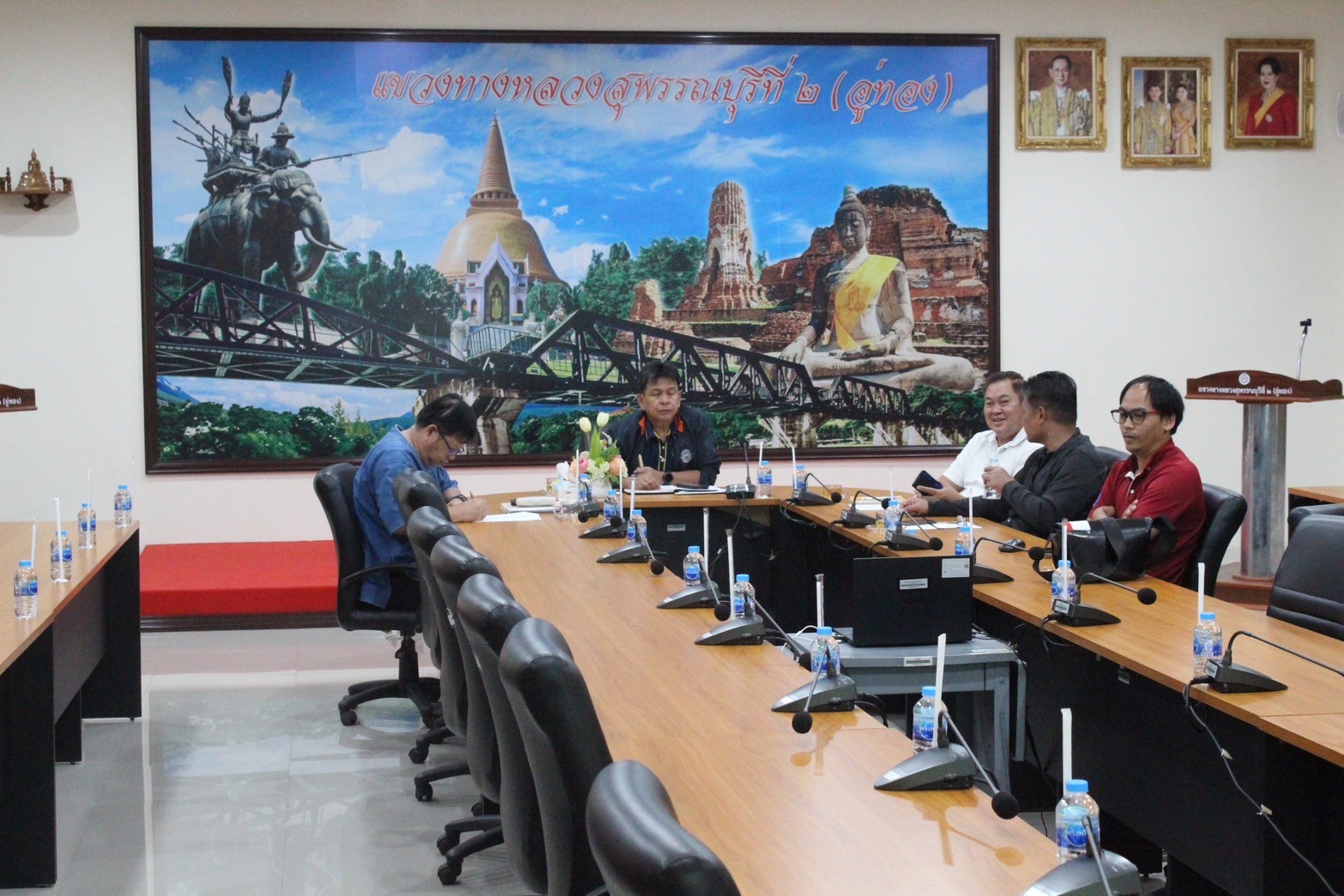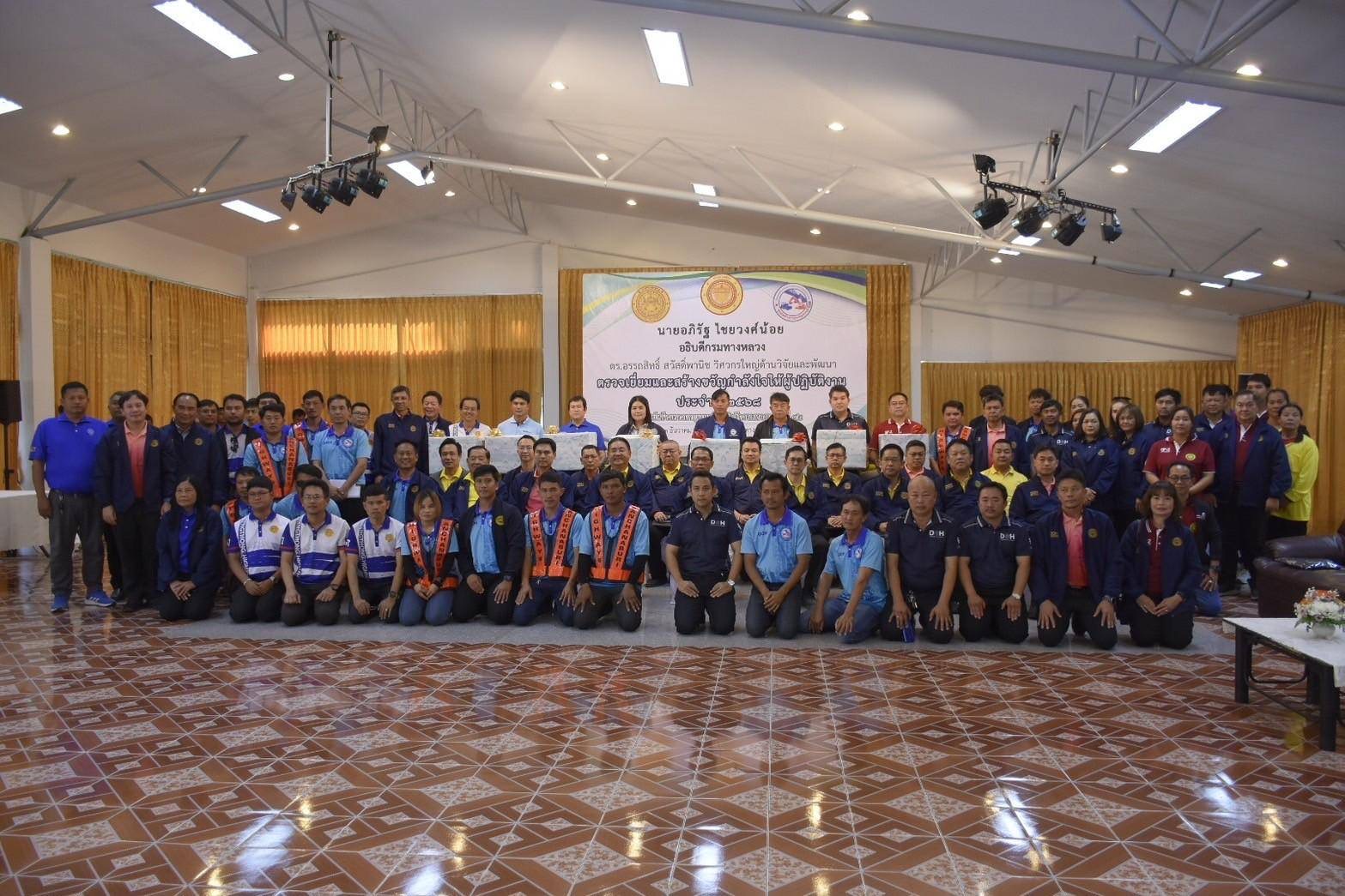นายสุเทพ คงประสาท ผู้อำนวยการแขวงทางหลวงสุพรรณบุรีที่ 2 (อู่ทอง) พร้อมด้วยคณะผู้บริหารของหน่วยงาน และเจ้าหน้าที่ที่เกี่ยวข้องให้การต้อนรับ นายอภิรัฐ ไชยวงศ์น้อย อธิบดีกรมทางหลวง พร้อมด้วย นายไพฑูรย์ พงษ์ชวลิต รองอธิบดีฝ่ายดำเนินงาน และ ดร.อรรถสิทธิ์ สวัสดิ์พานิช วิศวกรใหญ่ด้านวิจัยและพัฒนา ในโอกาสตรวจเยี่ยมและสร้างขวัญกำลังใจให้ผู้ปฏิบัติงาน ประจำปี 2568 ณ ศูนย์สร้างทางกาญจนบุรี