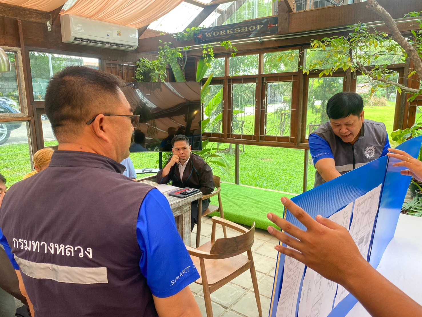 เจ้าหน้าที่โครงการฯ สาย อ.สองพี่น้อง- บ.มะขามล้ม รายงานตัวต่อ ผู้อำนวยการแขวงทางหลวงสุพรรณบุรีที่ 2 (อู่ทอง) เพื่อแนะนำโครงการฯ และเข้าดำเนินการก่อสร้าง ทางหลวงหมายเลข 3260 สาย อ.สองพี่น้อง - สุพรรณบุรี ตอน อ.สองพี่น้อง - บ.มะขามล้ม ระหว่าง กม.12+400.000 - กม.31+856.000
