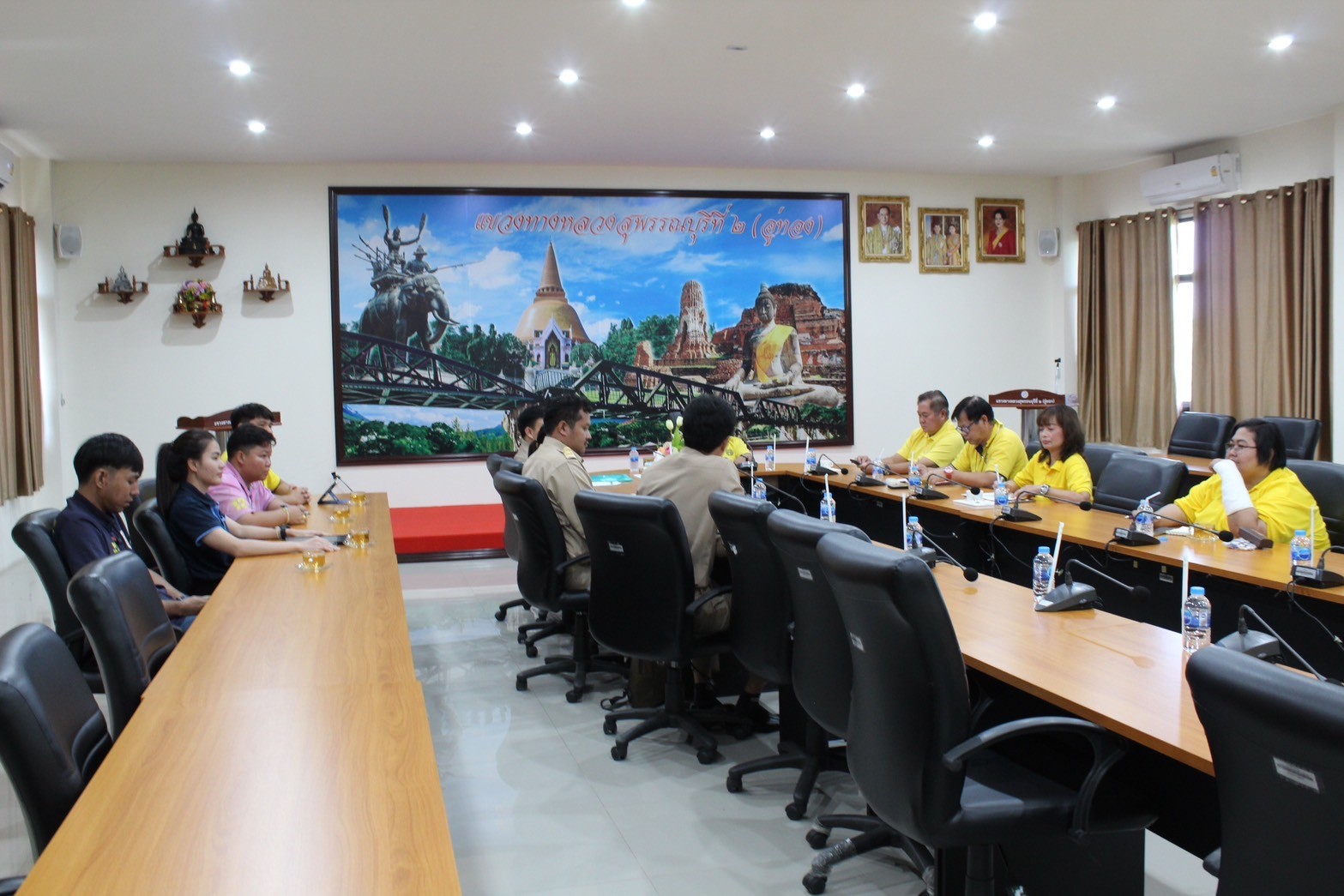 ประชุมเพื่อติดตามความก้าวหน้าและปัญหาในการดำเนินการก่อสร้างของโครงการ ณ ห้องประชุม ชั้น 3 แขวงทางหลวงสุพรรณบุรีที่ 2 (อู่ทอง)