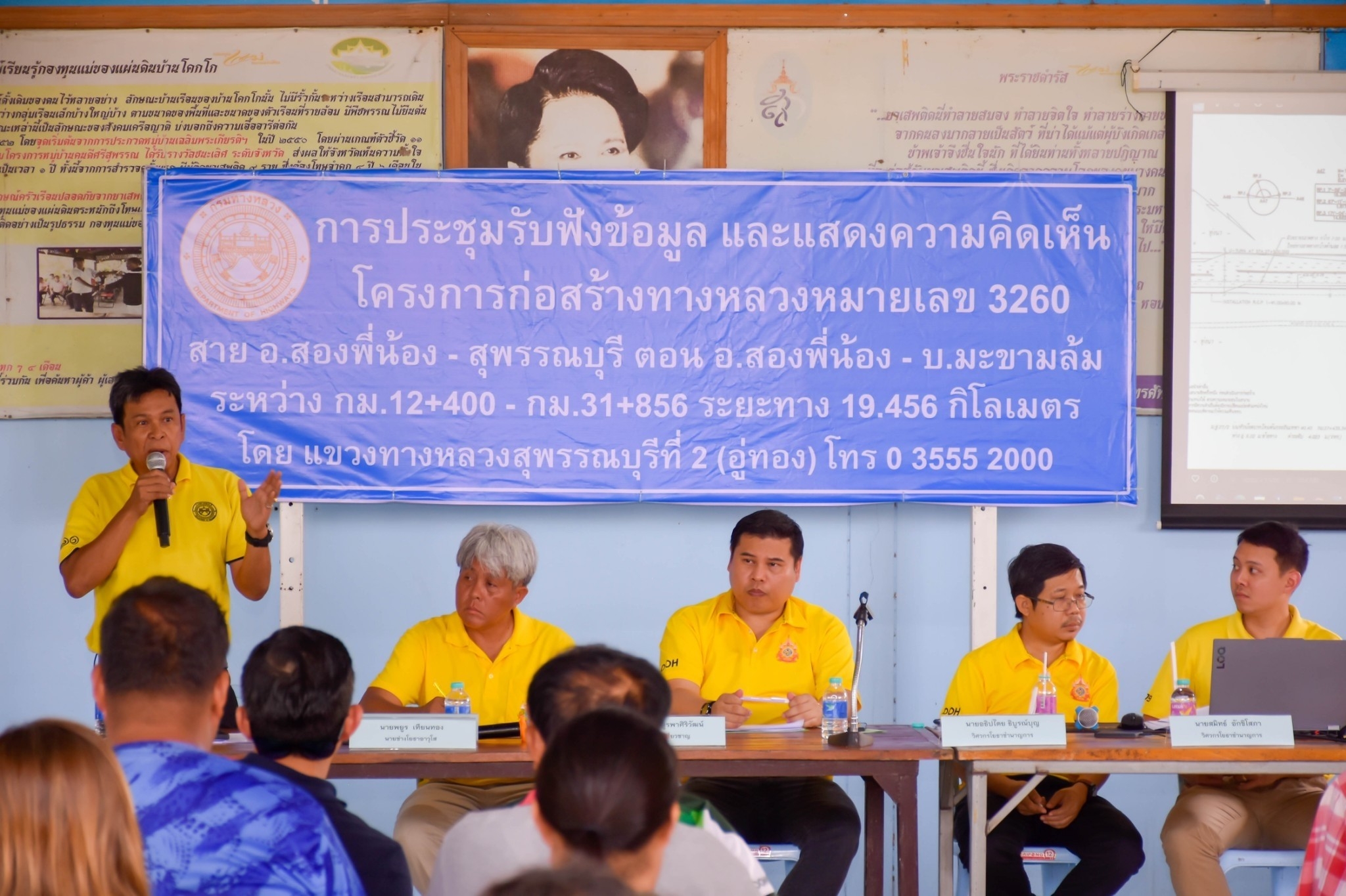 ประชุมการมีส่วนร่วมของประชาชนโครงการก่อสร้างทางหลวงหมายเลข 3260 สาย อ.สองพี่น้อง - สุพรรณบุรี ตอน อ.สองพี่น้อง - บ.มะขามล้มกม.12+400 - กม.31+856 ระยะทาง 19.456 กิโลเมตร ณ ศาลารวมใจหมู่ที่ 1 บ้านโคกโก ตำบลมะขามล้ม อำเภอบางปลาม้า จังหวัดสุพรรณบุรี
