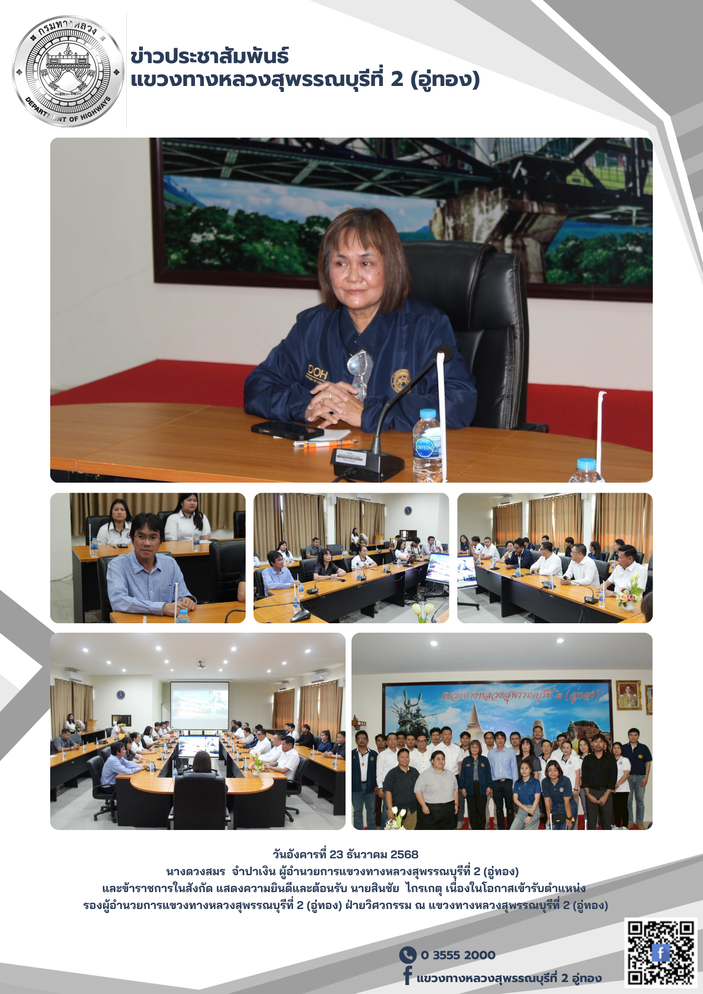 แสดงความยินดีและต้อนรับ นายสินชัย ไกรเกตุ เนื่องในโอกาสเข้ารับตำแหน่ง รองผู้อำนวยการแขวงทางหลวงสุพรรณบุรีที่ 2 (อู่ทอง) ฝ่ายวิศวกรรม