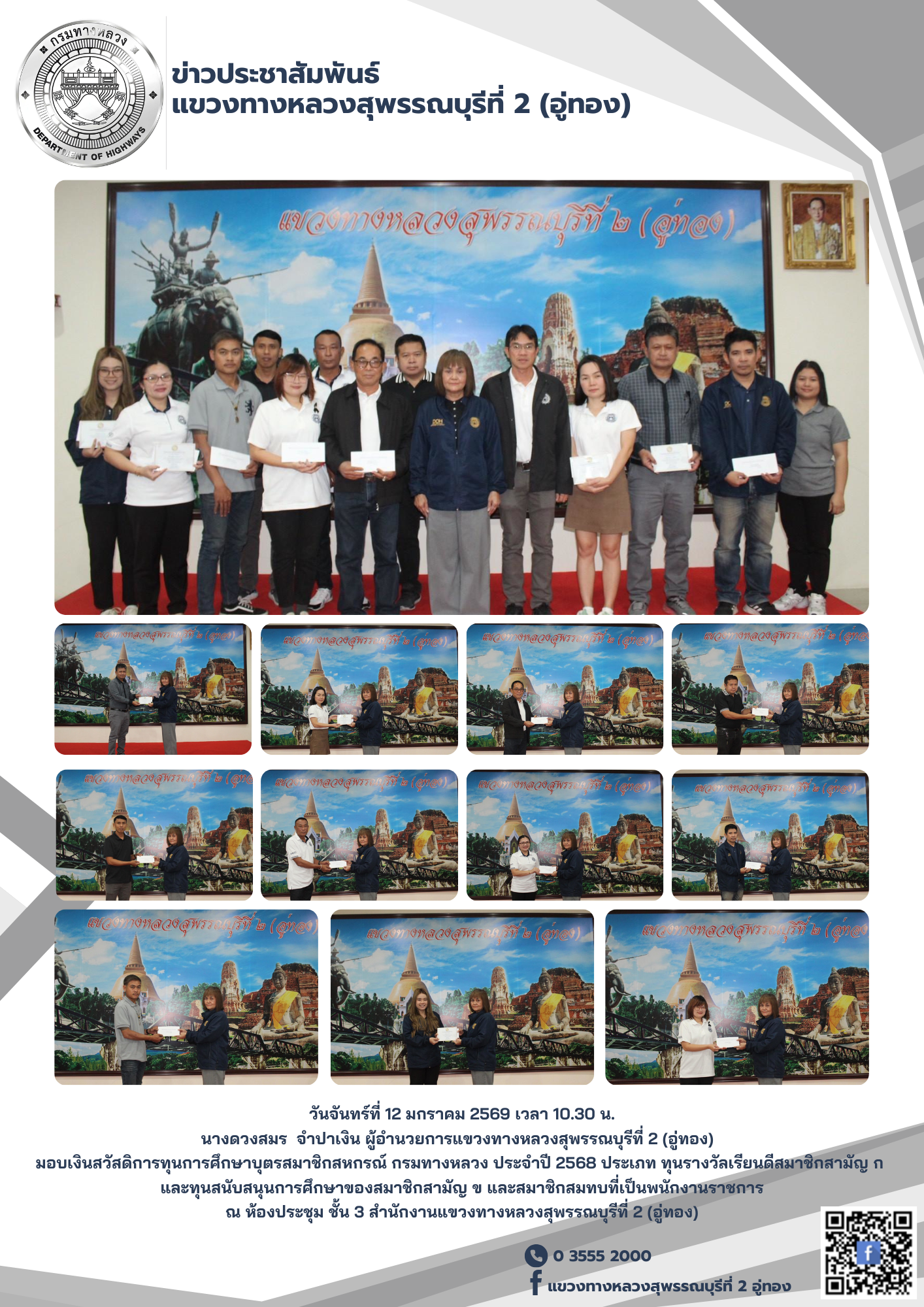มอบเงินสวัสดิการทุนการศึกษาบุตรสมาชิกสหกรณ์ กรมทางหลวง ประจำปี 2568 ประเภท ทุนรางวัลเรียนดีสมาชิกสามัญ ก และทุนสนับสนุนการศึกษาของสมาชิกสามัญ ข และสมาชิกสมทบที่เป็นพนักงานราชการ