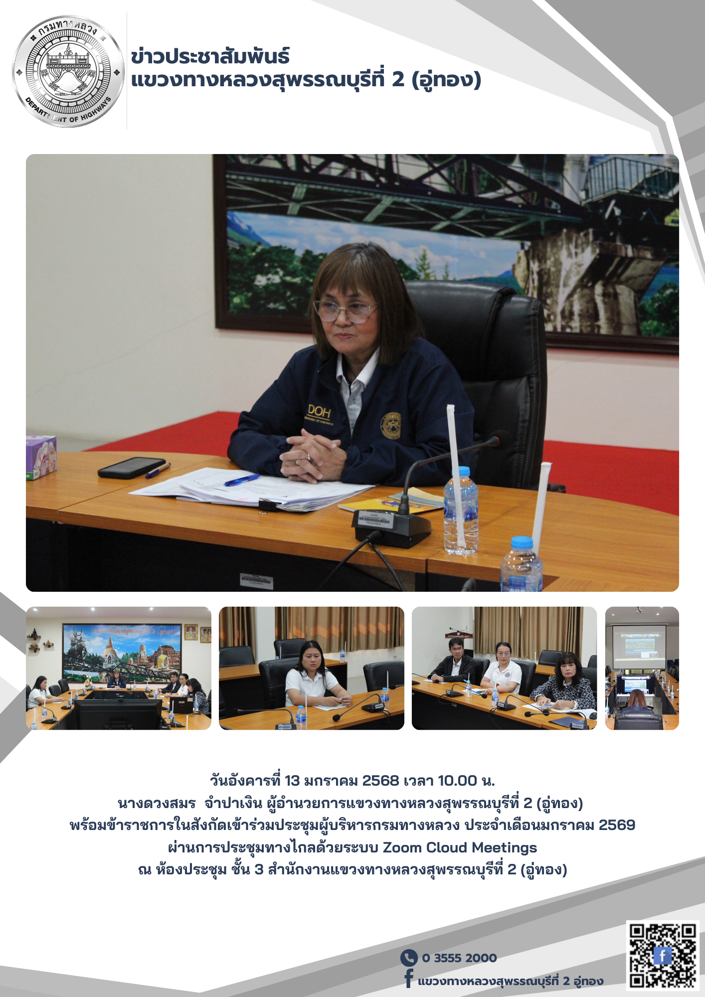 ประชุมผู้บริหารกรมทางหลวง ประจำเดือนมกราคม 2569 ผ่านการประชุมทางไกลด้วยระบบ Zoom Cloud Meetings