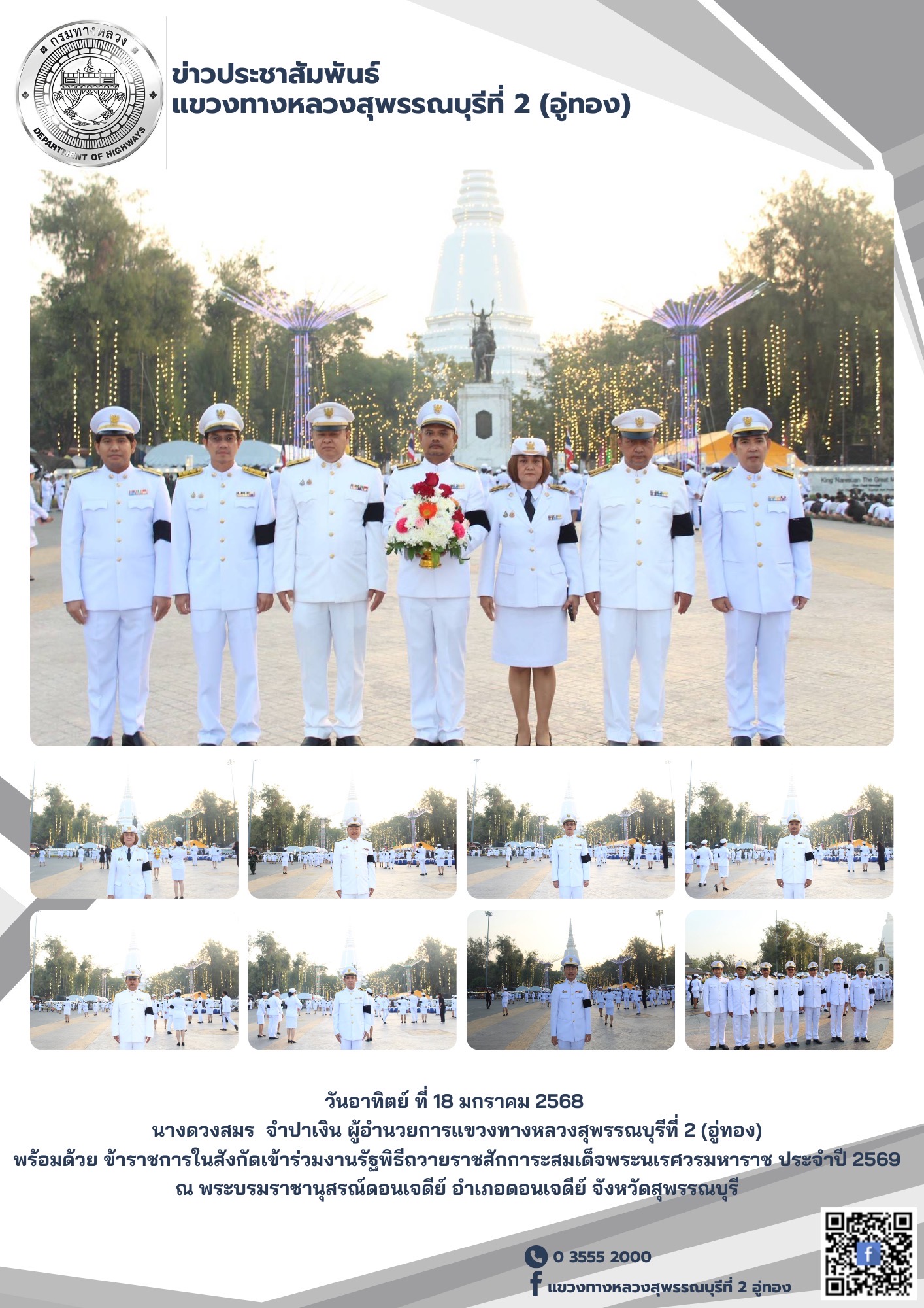 งานรัฐพิธีถวายราชสักการะสมเด็จพระนเรศวรมหาราช ประจำปี 2569 ณ พระบรมราชานุสรณ์ดอนเจดีย์ อำเภอดอนเจดีย์ จังหวัดสุพรรณบุรี