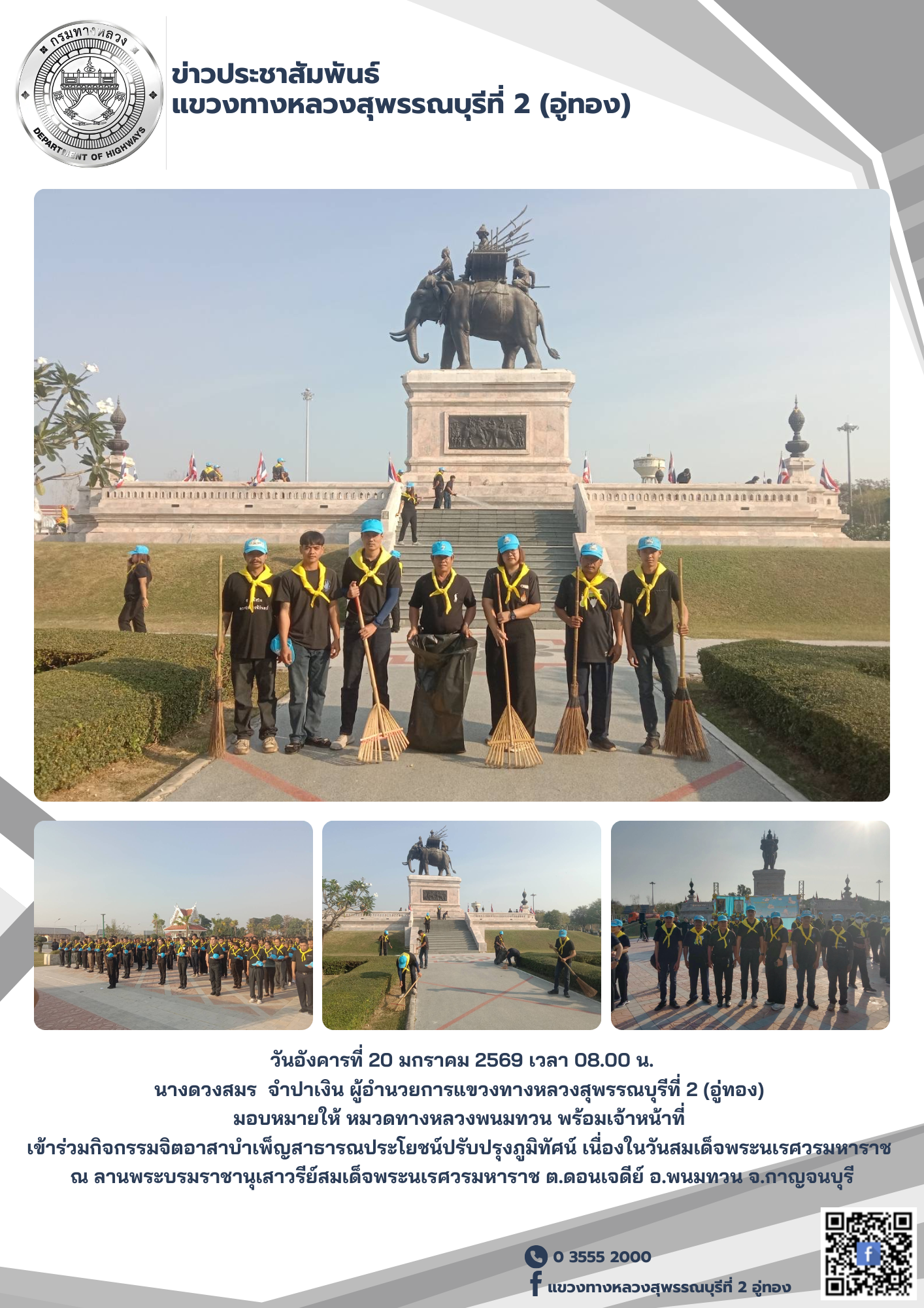 กิจกรรมจิตอาสาบำเพ็ญสาธารณประโยชน์ปรับปรุงภูมิทัศน์ เนื่องในวันสมเด็จพระนเรศวรมหาราช ณ ลานพระบรมราชานุเสาวรีย์สมเด็จพระนเรศวรมหาราช ต.ดอนเจดีย์ อ.พนมทวน จ.กาญจนบุรี