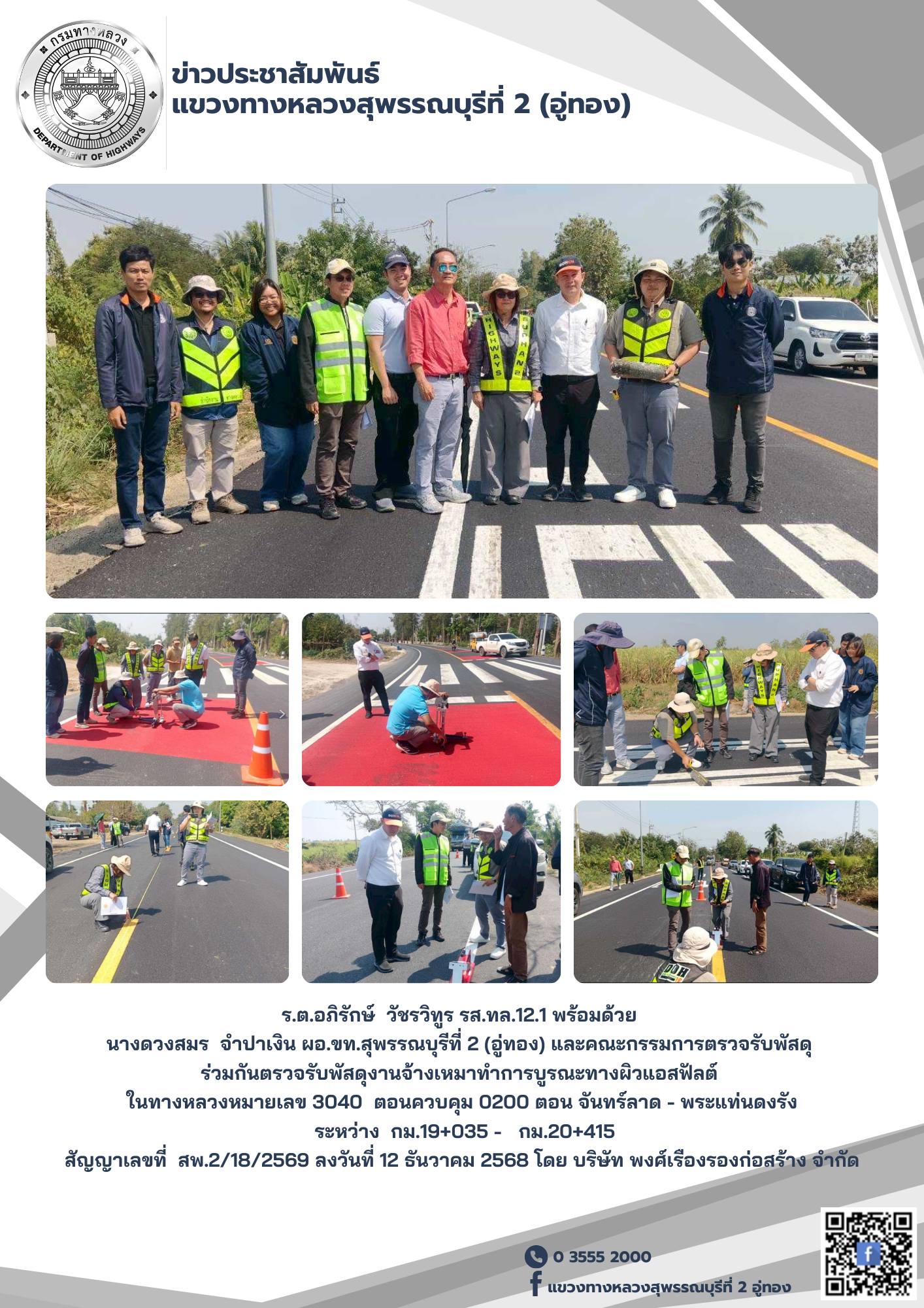 ตรวจรับพัสดุงานจ้างเหมาทำการบูรณะทางผิวแอสฟัลต์ ในทางหลวงหมายเลข 3040 ตอนควบคุม 0200 ตอน จันทร์ลาด - พระแท่นดงรัง ระหว่าง กม.19+035 - กม.20+415