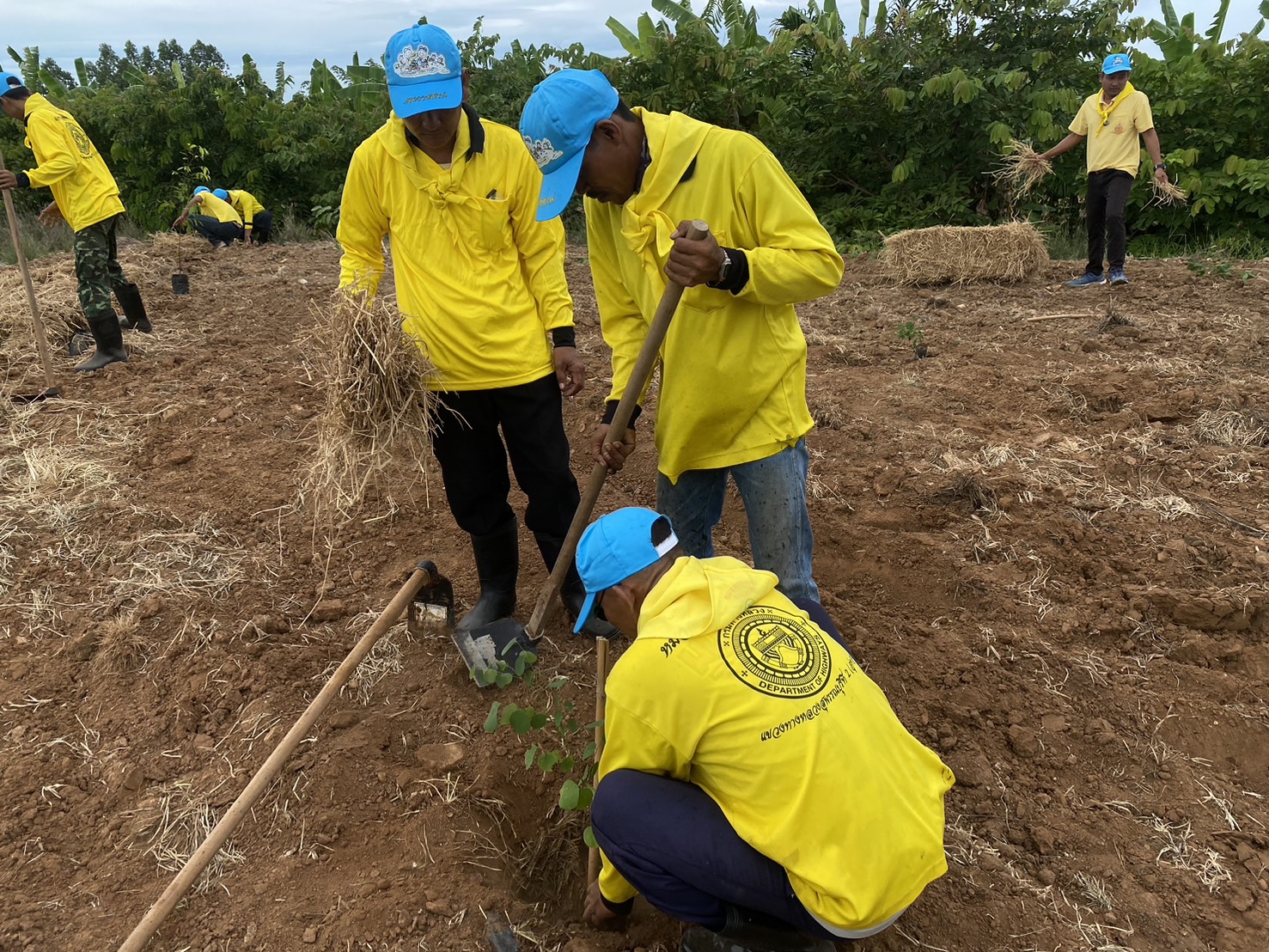 นายวุฒิชัย พลายละหาร หัวหน้าหมวดทางหลวงเลาขวัญ พร้อมด้วยเจ้าหน้าที่ เข้าร่วมงานโครงการจิตอาสาพัฒนาพื้นที่ โคก หนอง นา อารยเกษตร