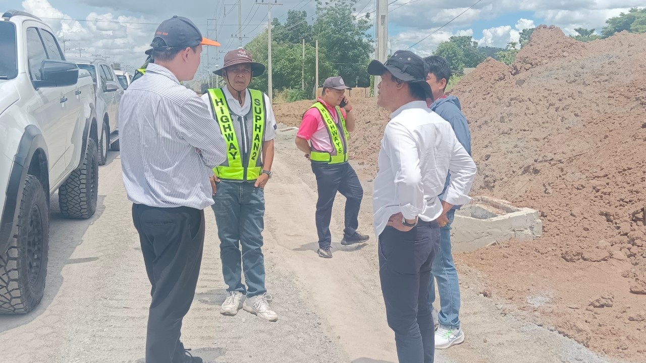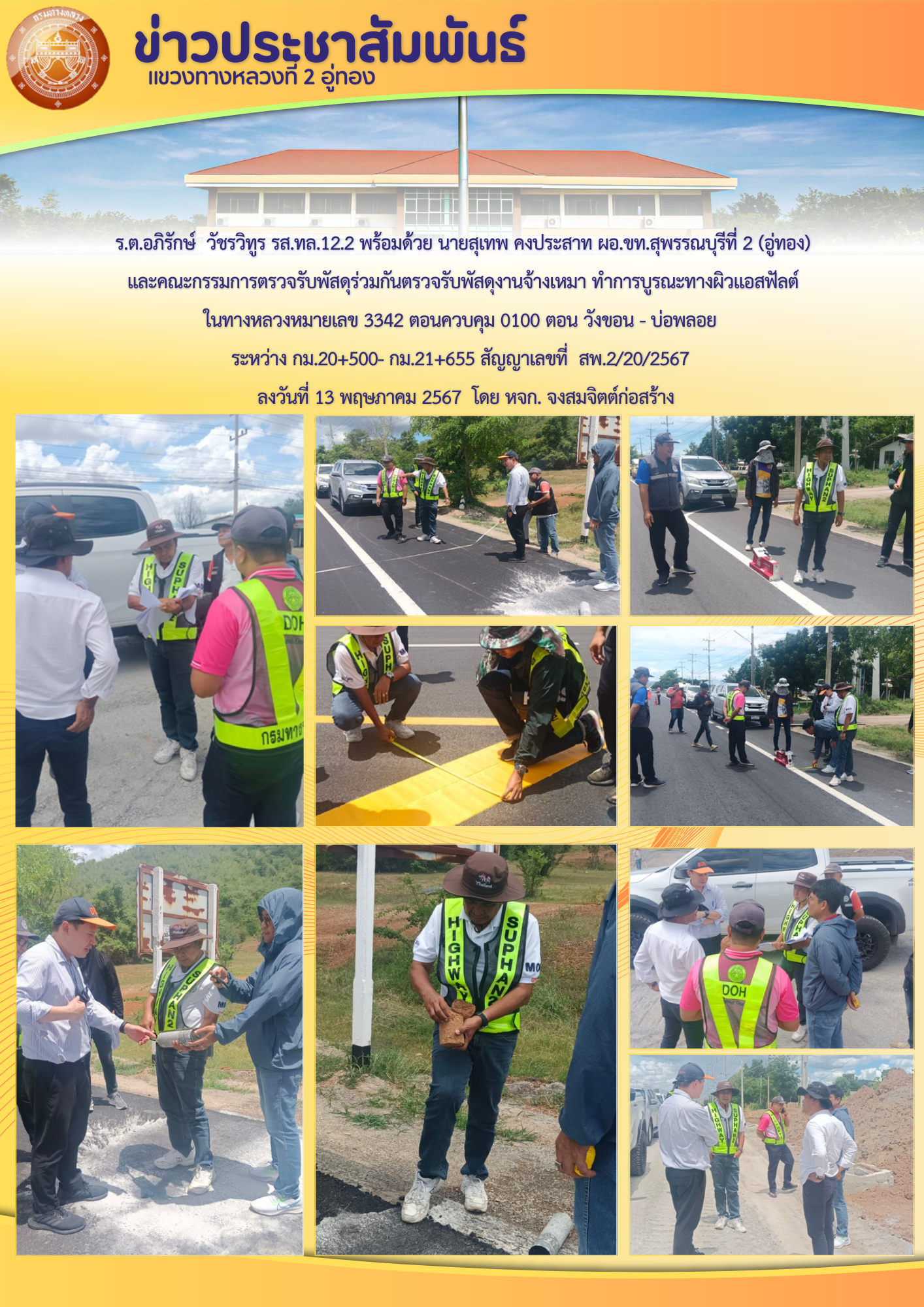 ร.ต.อภิรักษ์ วัชรวิทูร รส.ทล.12.2 พร้อมด้วย นายสุเทพ คงประสาท ผอ.ขท.สุพรรณบุรีที่ 2 (อู่ทอง) และคณะกรรมการตรวจรับพัสดุร่วมกันตรวจรับพัสดุงานจ้างเหมา