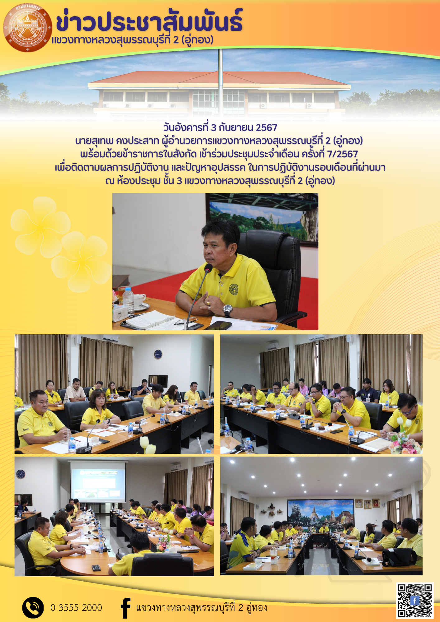 ณ ห้องประชุม ชั้น 3 แขวงทางหลวงสุพรรณบุรีที่ 2 (อู่ทอง)