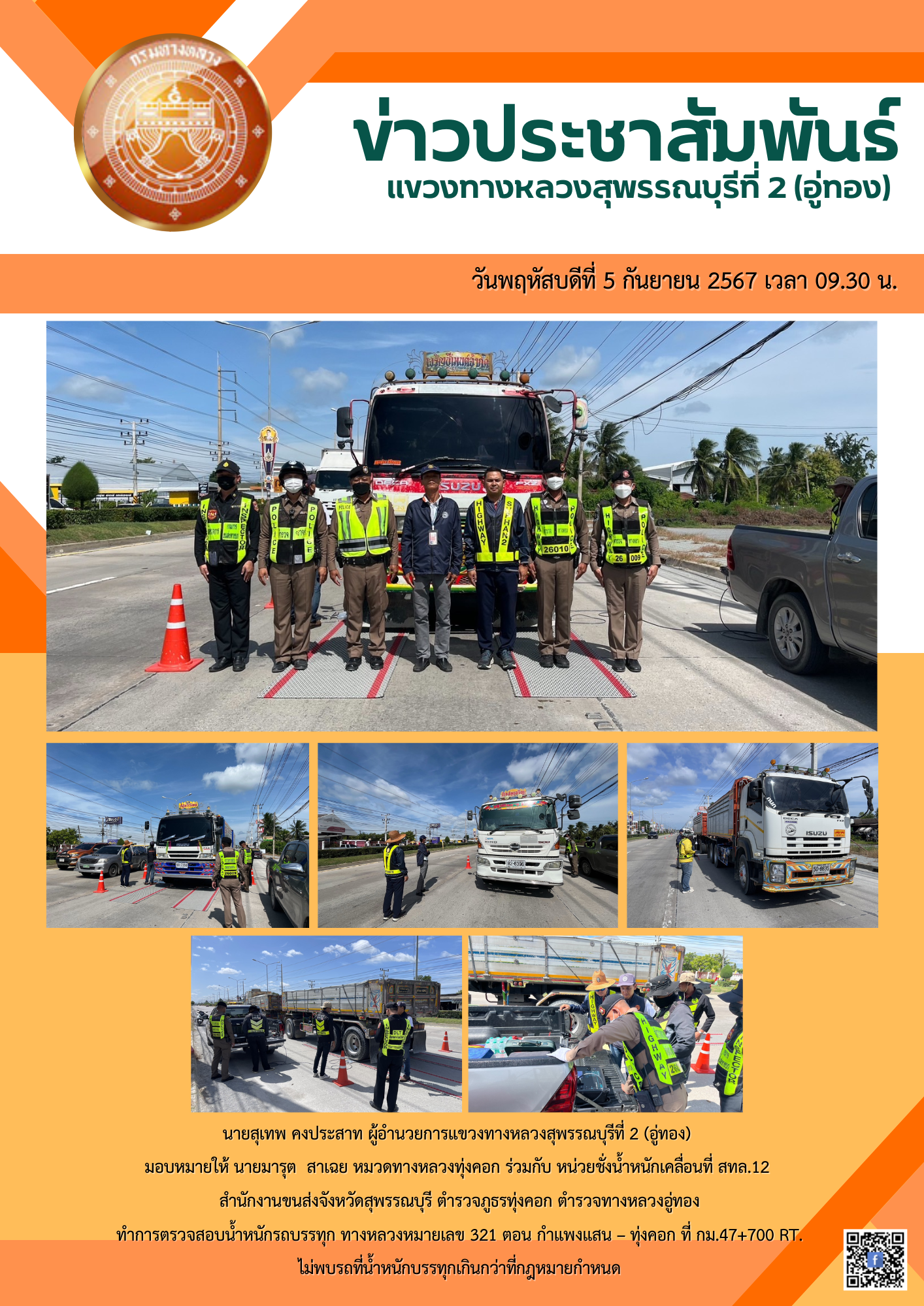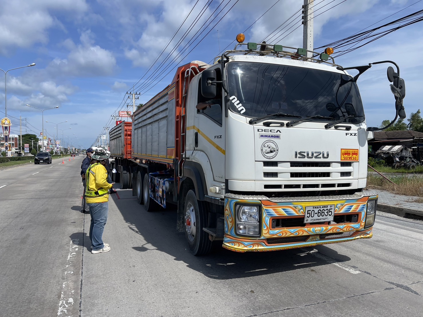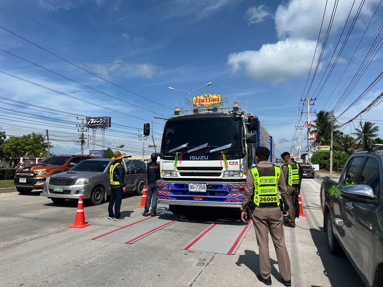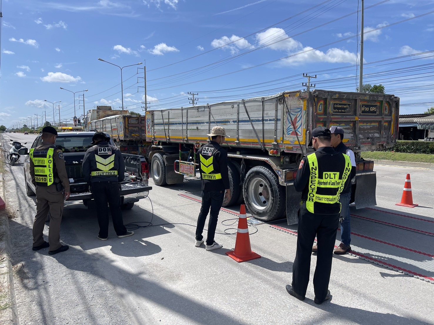 สำนักงานขนส่งจังหวัดสุพรรณบุรี ตำรวจภูธรทุ่งคอก ตำรวจทางหลวงอู่ทอง ทำการตรวจสอบน้ำหนักรถบรรทุก