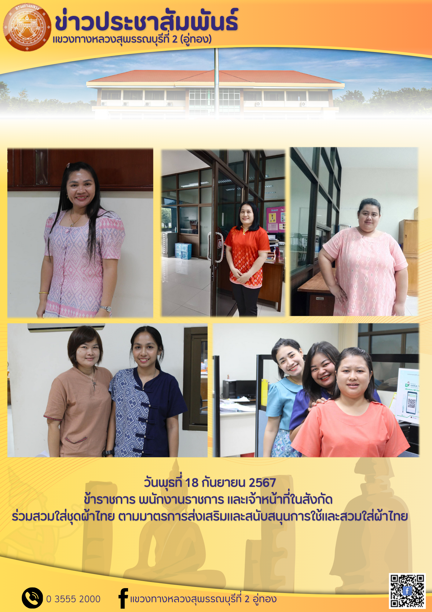 ข้าราชการ พนักงานราชการ และเจ้าหน้าที่ในสังกัด ร่วมสวมใส่ชุดผ้าไทย ตามมาตรการส่งเสริมและสนับสนุนการใช้และสวมใส่ผ้าไทย
