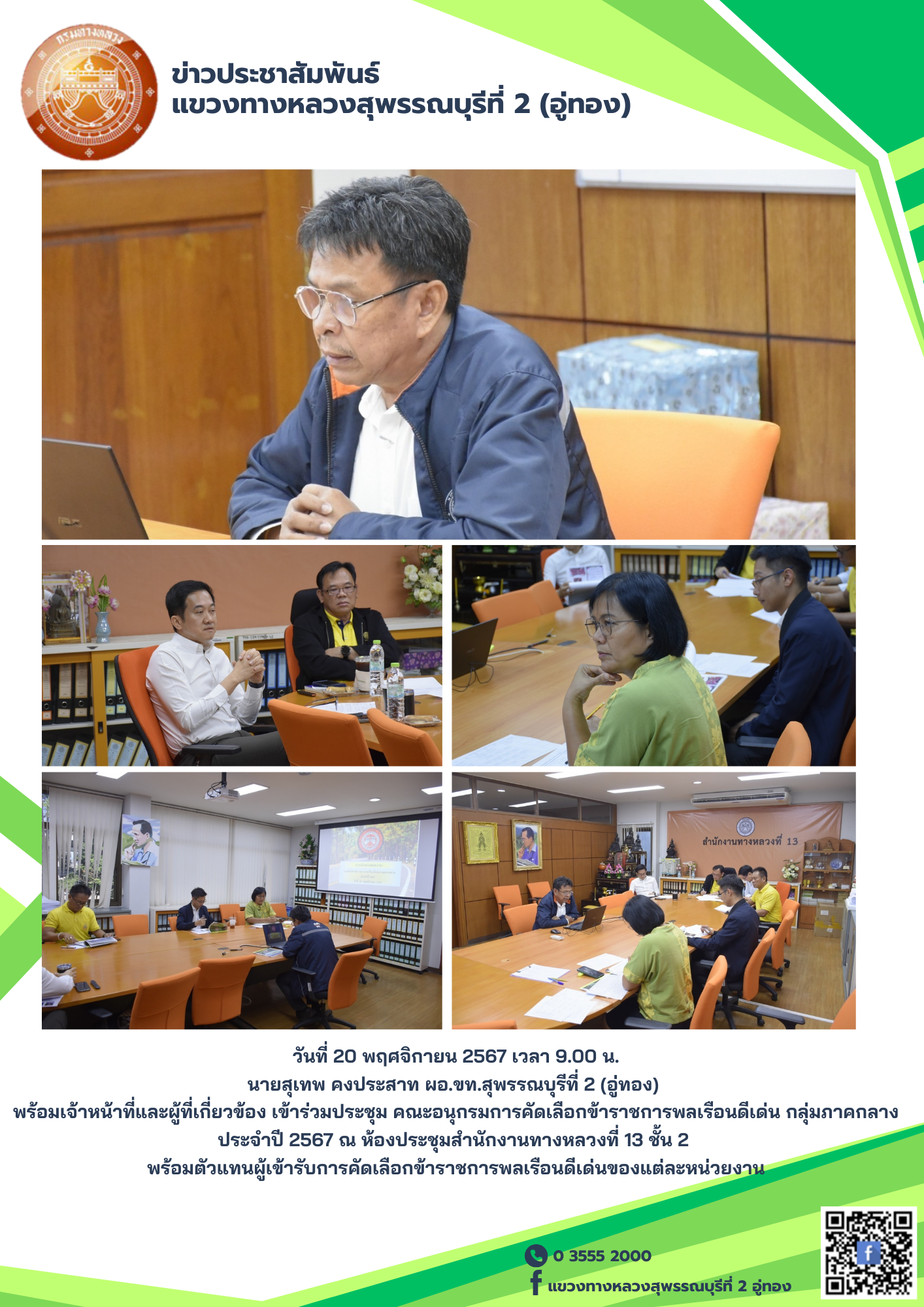 เข้าร่วมประชุม คณะอนุกรมการคัดเลือกข้าราชการพลเรือนดีเด่น กลุ่มภาคกลาง ประจำปี 2567 พร้อมตัวแทนผู้เข้ารับการคัดเลือกข้าราชการพลเรือนดีเด่นของแต่ละหน่วยงาน ณ ห้องประชุมสำนักงานทางหลวงที่ 13 ชั้น 2