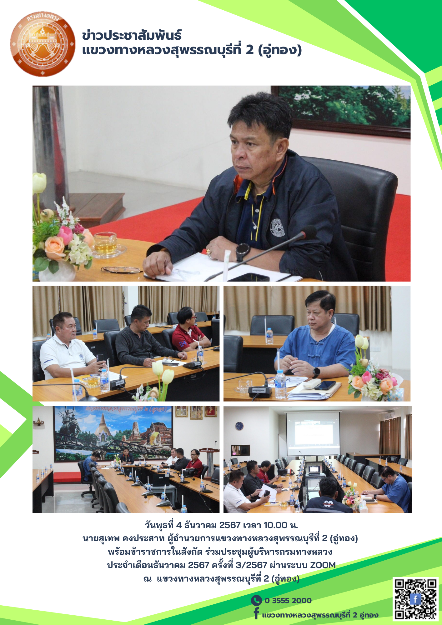พร้อมข้าราชการในสังกัด ร่วมประชุมผู้บริหารกรมทางหลวง ประจำเดือนธันวาคม 2567 ครั้งที่ 3/2567 ผ่านระบบ ZOOM