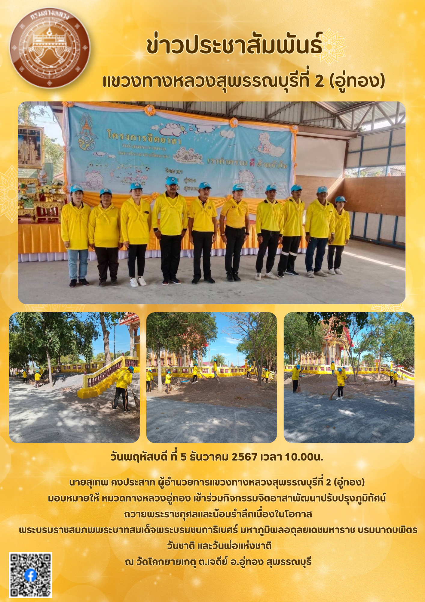 มอบหมายให้ หมวดทางหลวงอู่ทอง เข้าร่วมพิธีกิจกรรมจิตอาสาพัฒนาปรับปรุงภูมิทัศน์