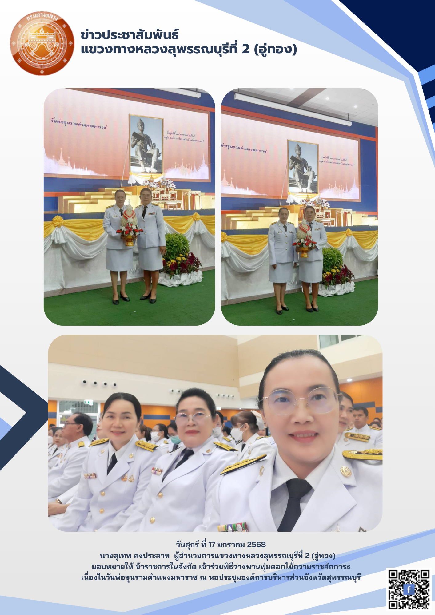 พิธีวางพานพุ่มดอกไม้ถวายราชสักการะ เนื่องในวันพ่อขุนรามคำแหงมหาราช