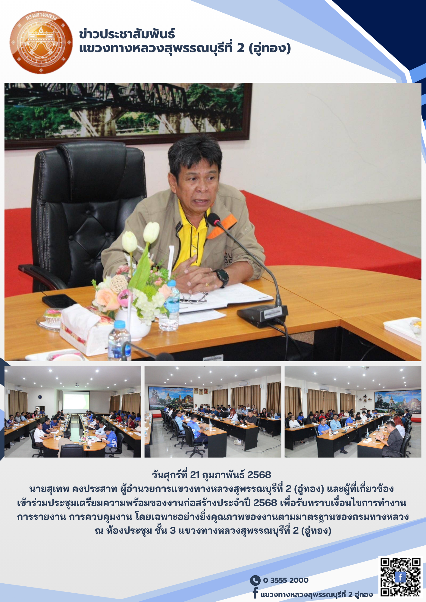 ณ ห้องประชุม ชั้น 3 แขวงทางหลวงสุพรรณบุรีที่ 2 (อู่ทอง)