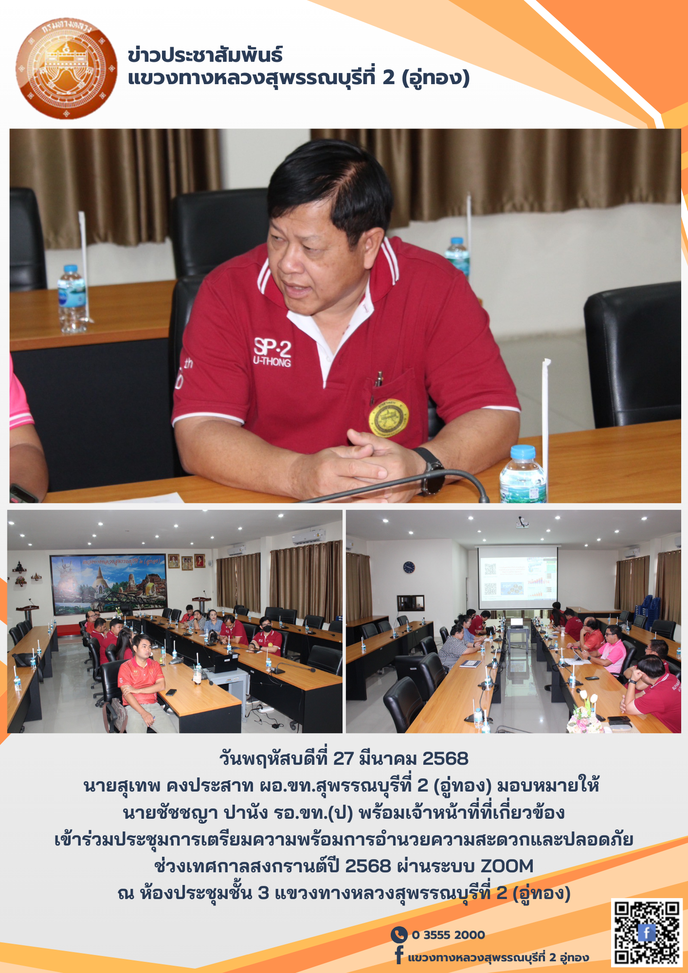 ประชุมการเตรียมความพร้อมการอำนวยความสะดวกและปลอดภัยช่วงเทศกาลสงกรานต์ปี 2568 ผ่านระบบ ZOOM
